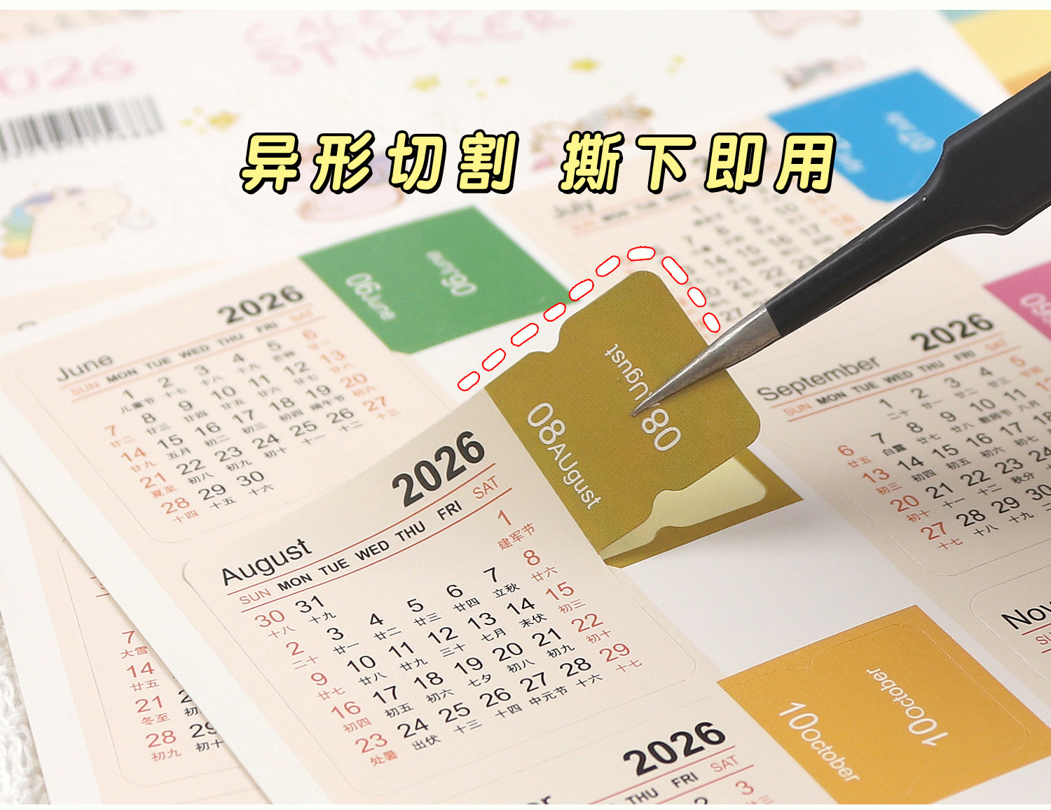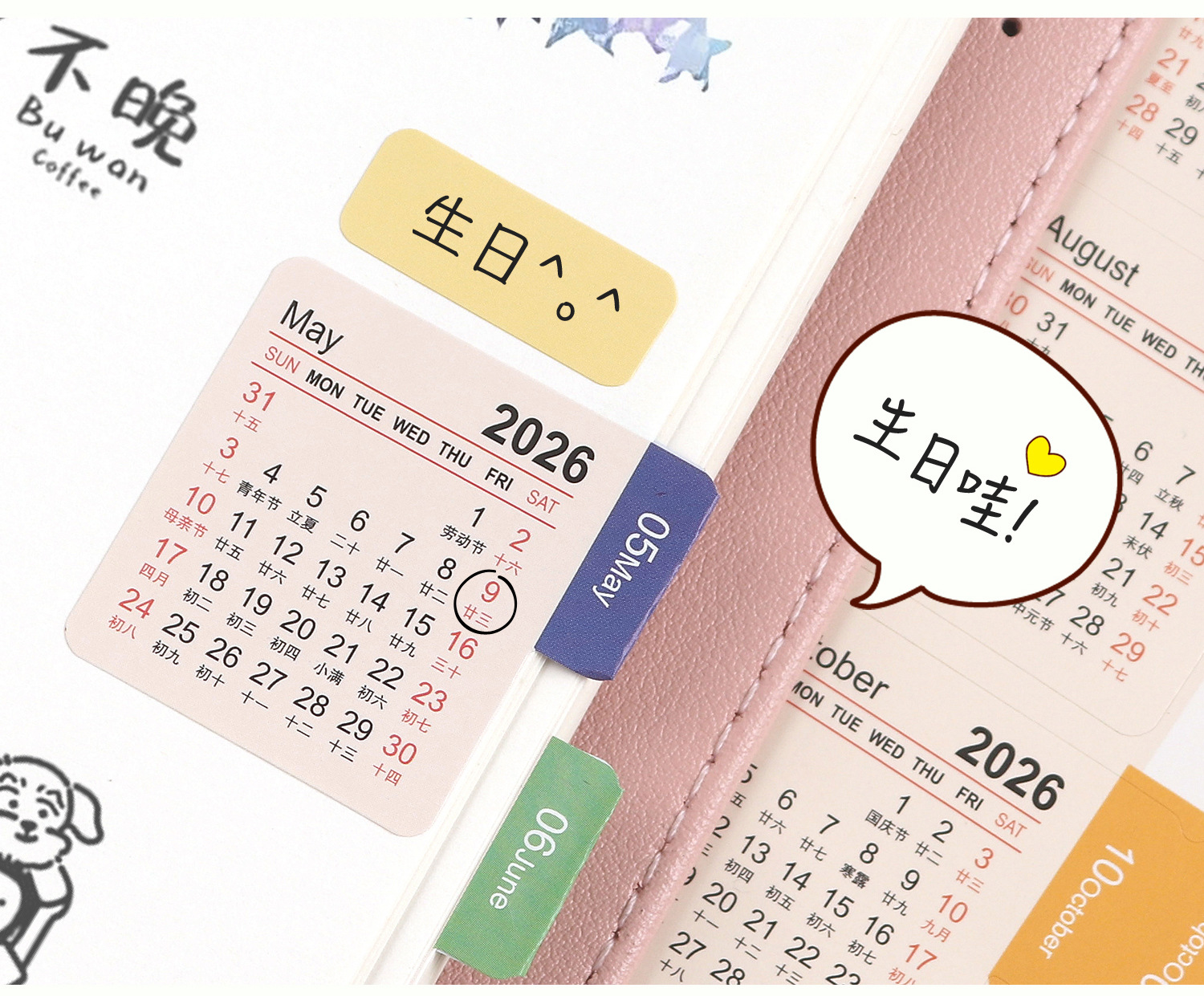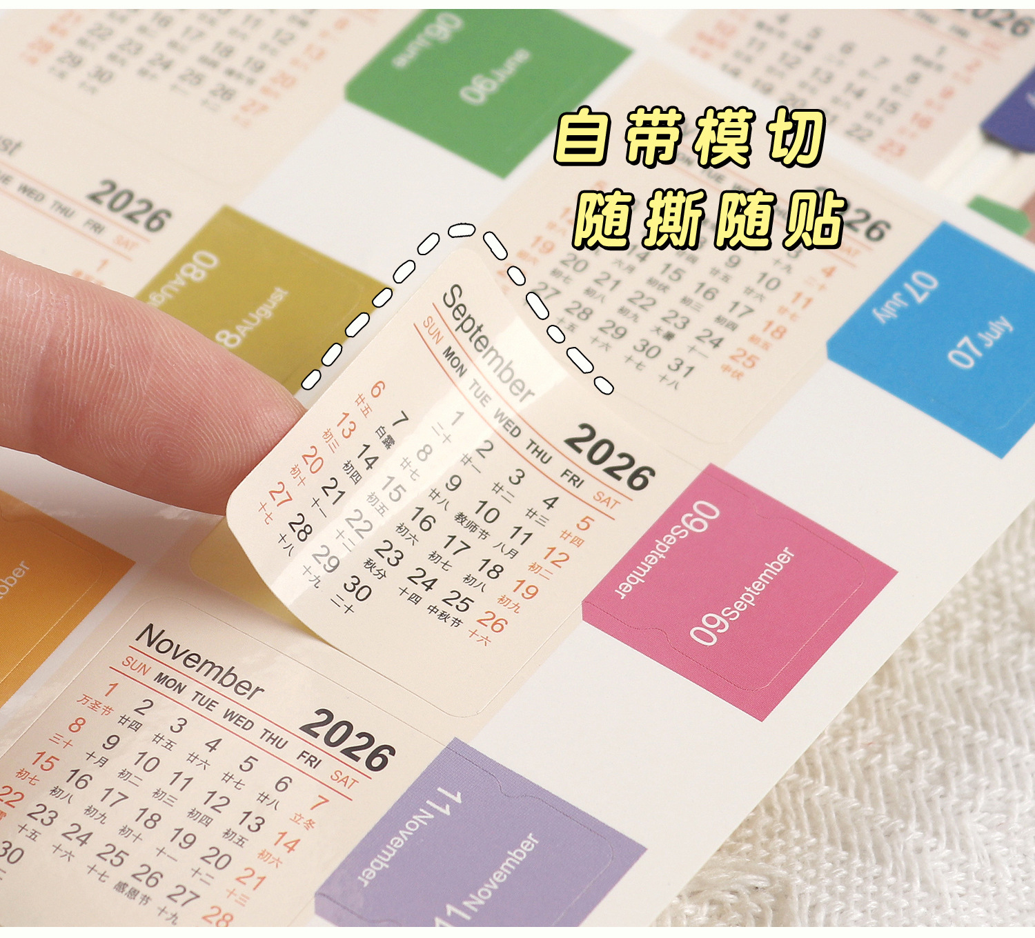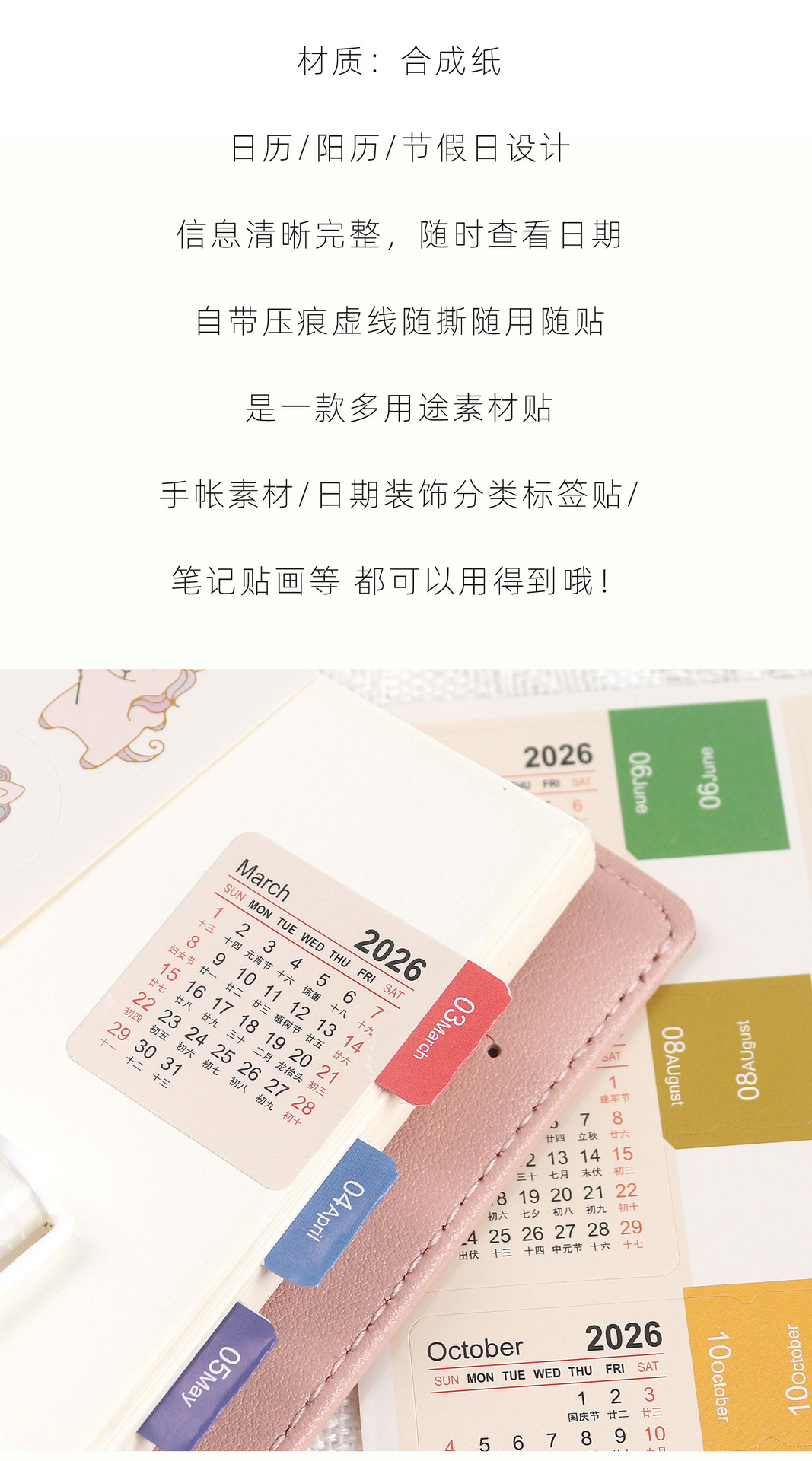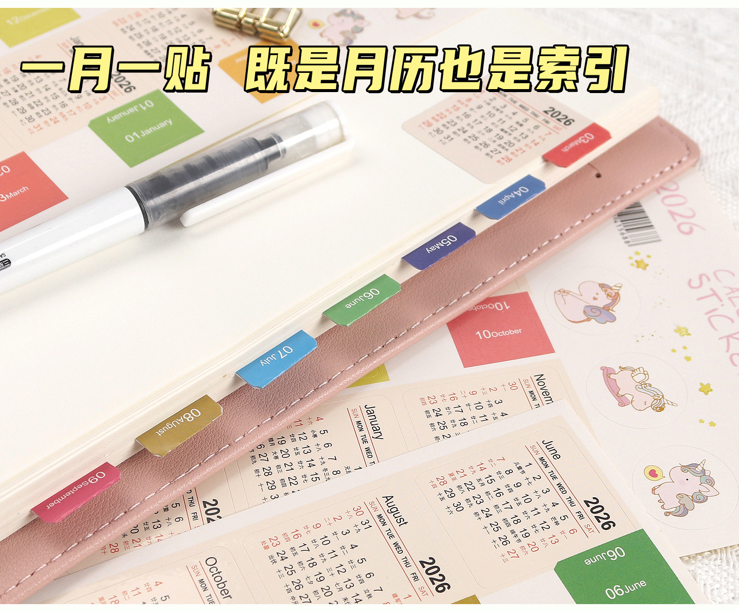 2026년 쓰기 가능한 달력 인덱스 스티커 핸드북 소재 날짜 장식 분류 라벨 스티커스토어 가기