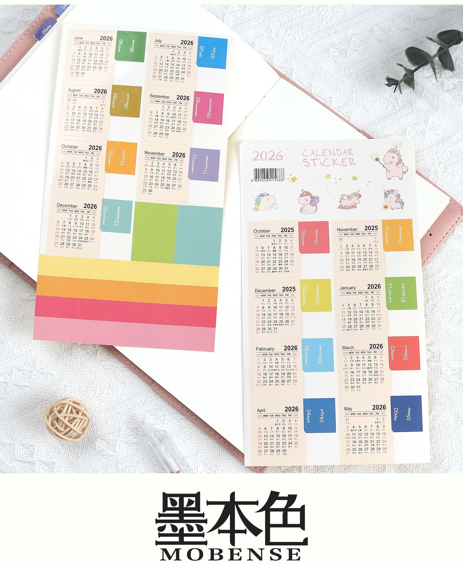 • 연간 달력 스티커 색상 2026.01-2026.12