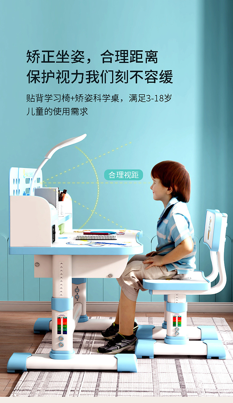 어린이 학습 책상 쓰기 책상 초등학생의 가정 업무 책상 리프팅 테이블 및 의자 세트 세트스토어 가기