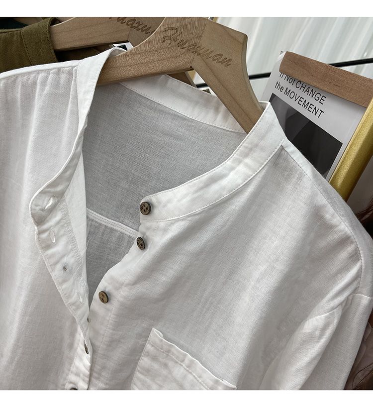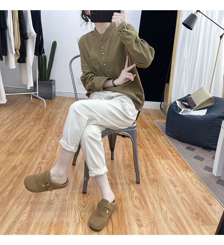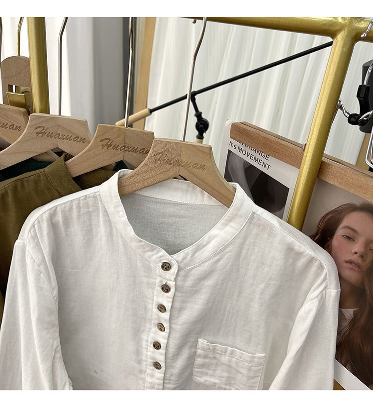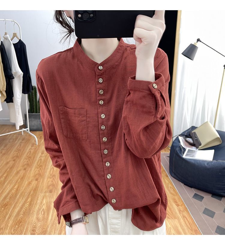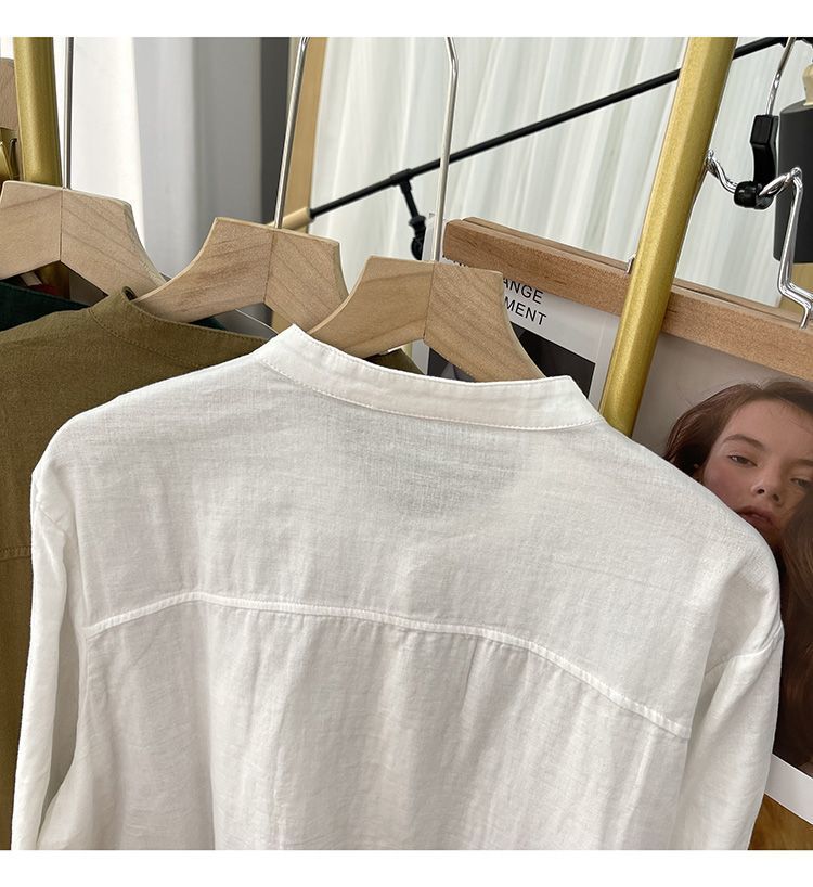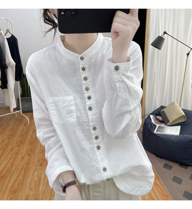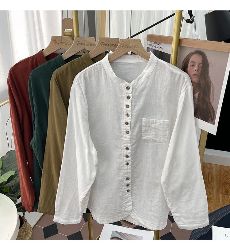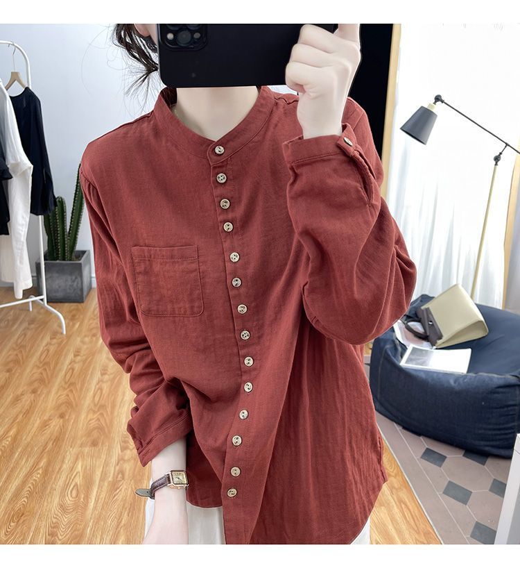 스탠드 칼라 면 긴팔 셔츠 여성용 2025 봄 한국 문학적 레트로 스타일 상의 출근용 기본 셔츠 루즈핏 셔츠스토어 가기