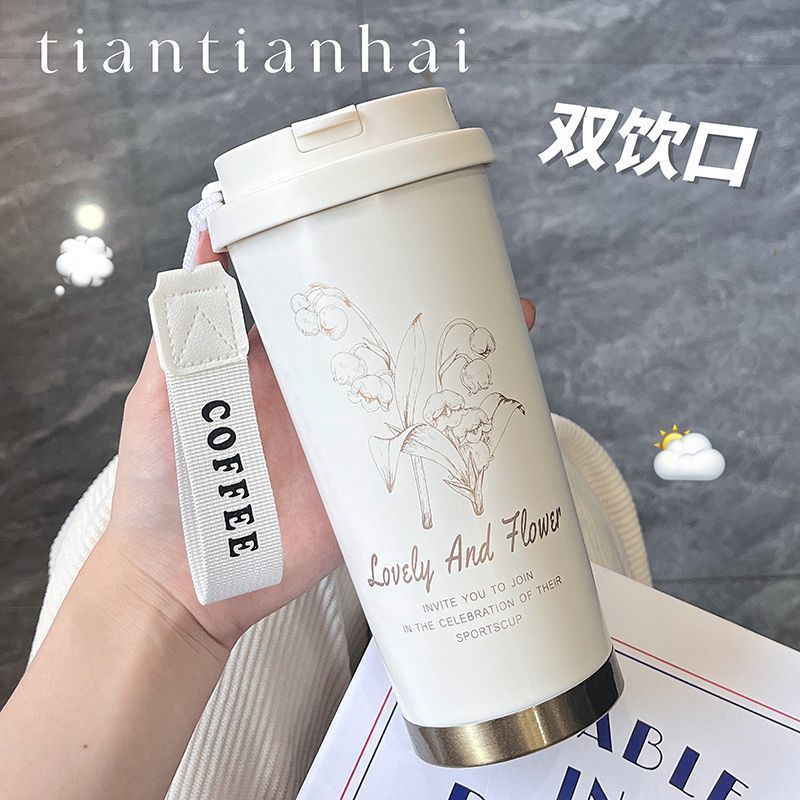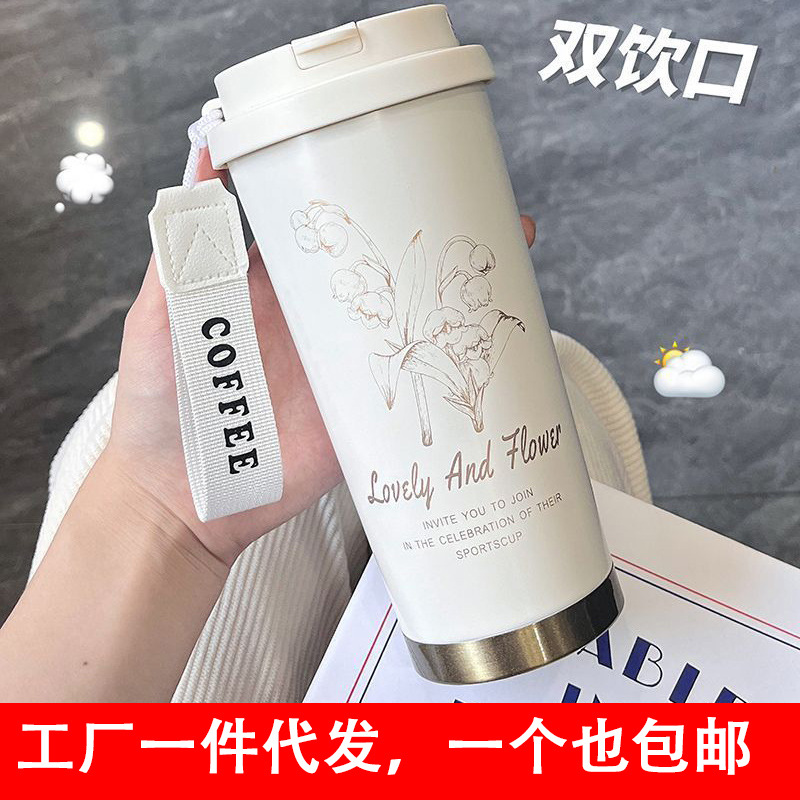 새로운 고가의 316 보온병 컵 릴리 밸리 커피 컵 커피 컵 로프 흡입 컵이있는 야외 휴대용 진공스토어 가기
