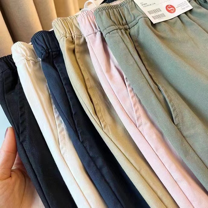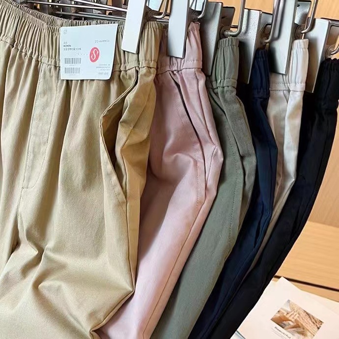 일본 싱글 여성용 Elelastics 자른 바지 바지 캐주얼 바지 무 바지 조정 가능한 허리 새 466026스토어 가기