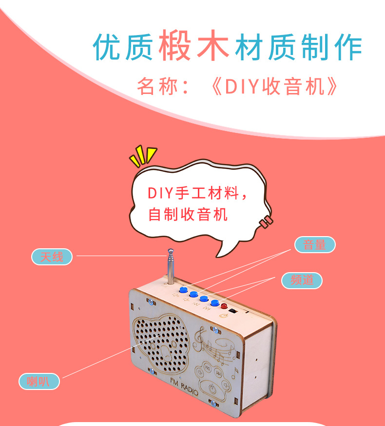 DIY 라디오 나무 어린이 조립 과학 실험 재료 과학 기술 작은 생산 학생 수제 FM 라디오스토어 가기