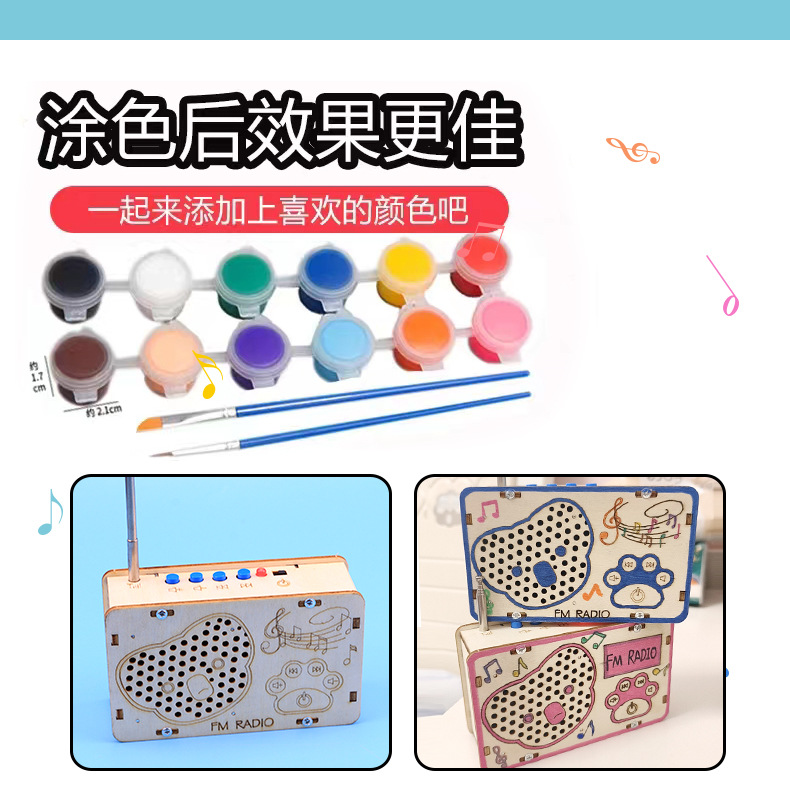 DIY 라디오 나무 어린이 조립 과학 실험 재료 과학 기술 작은 생산 학생 수제 FM 라디오