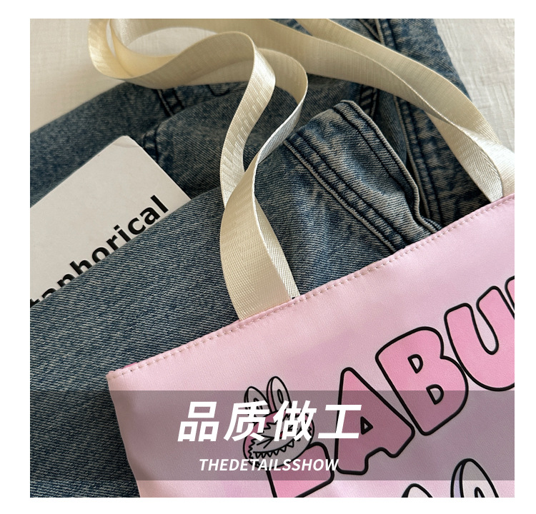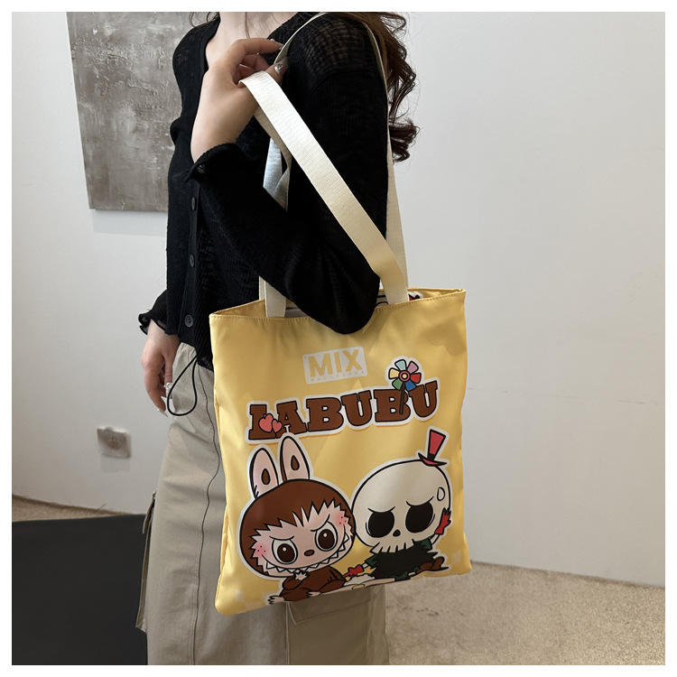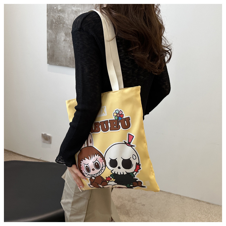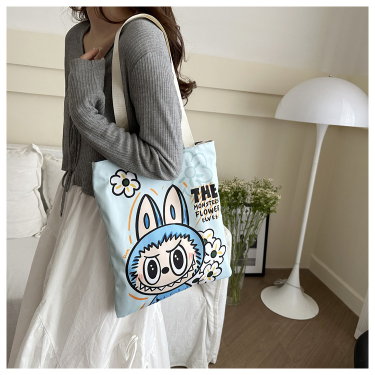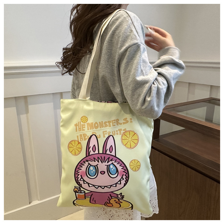 2025 새로운 Labubu 어깨 환경 친화적 인 가방 캔버스 가방 캐주얼 어깨 가방 쇼핑 가방 인터넷 연예인 가방 만화스토어 가기