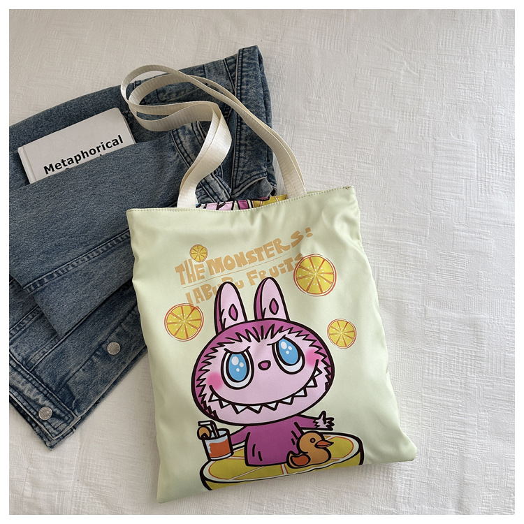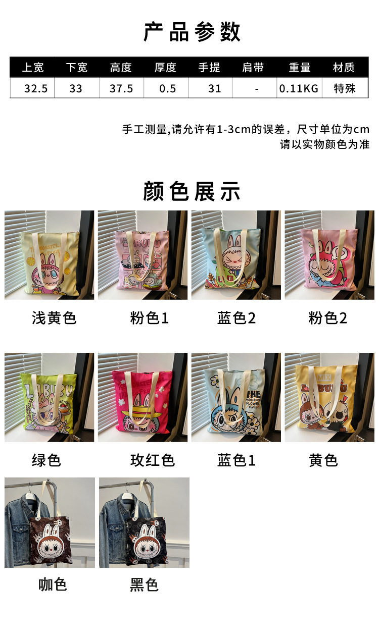 2025 새로운 Labubu 어깨 환경 친화적 인 가방 캔버스 가방 캐주얼 어깨 가방 쇼핑 가방 인터넷 연예인 가방 만화