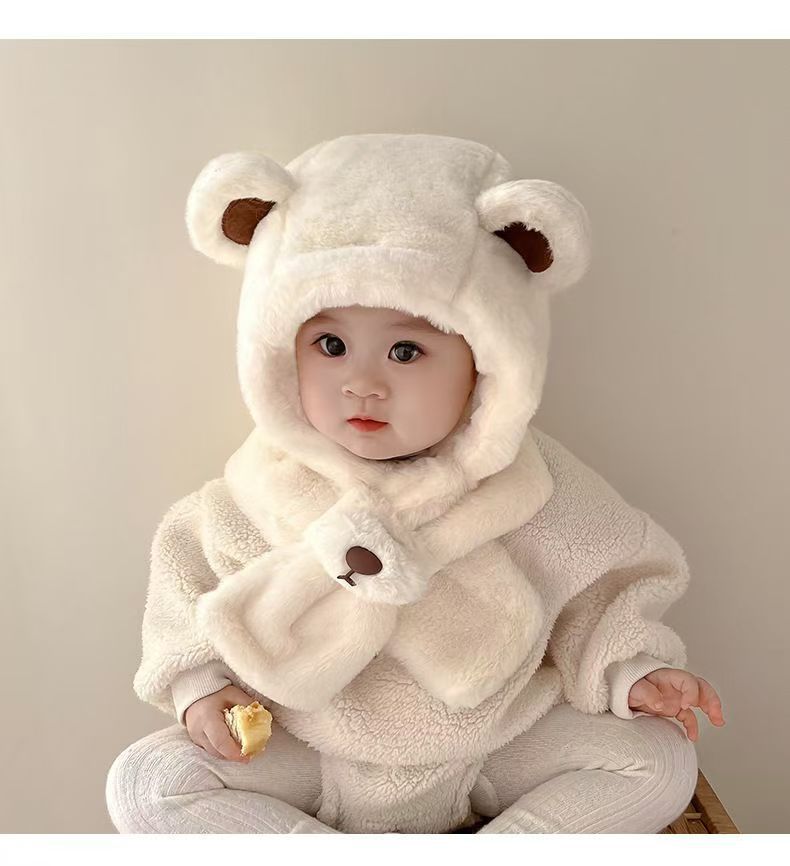 어린이 모자 스카프 통합 모자 겨울 기모 두꺼운 아기 귀 보호 모자 소년과 소녀 방풍 투피스 세트 패션