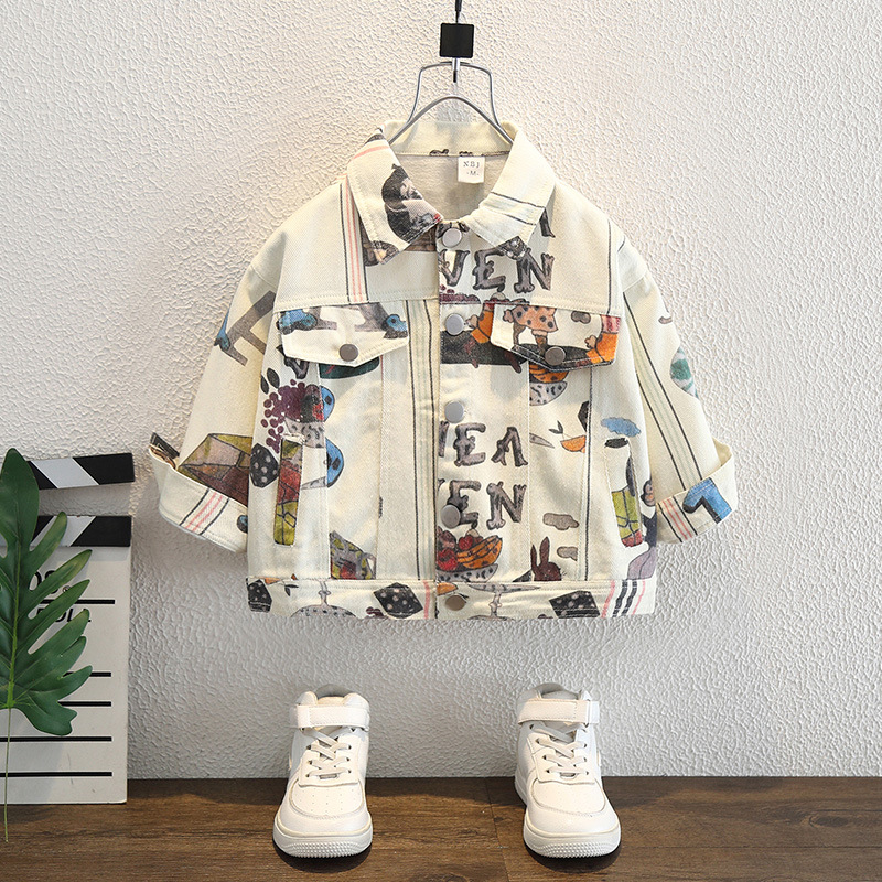 소년 코트 2025 가을 새로운 한국 스타일 어린이 아기 스타일 거리 낙서 랩 재킷 트렌디 쿨탑스토어 가기