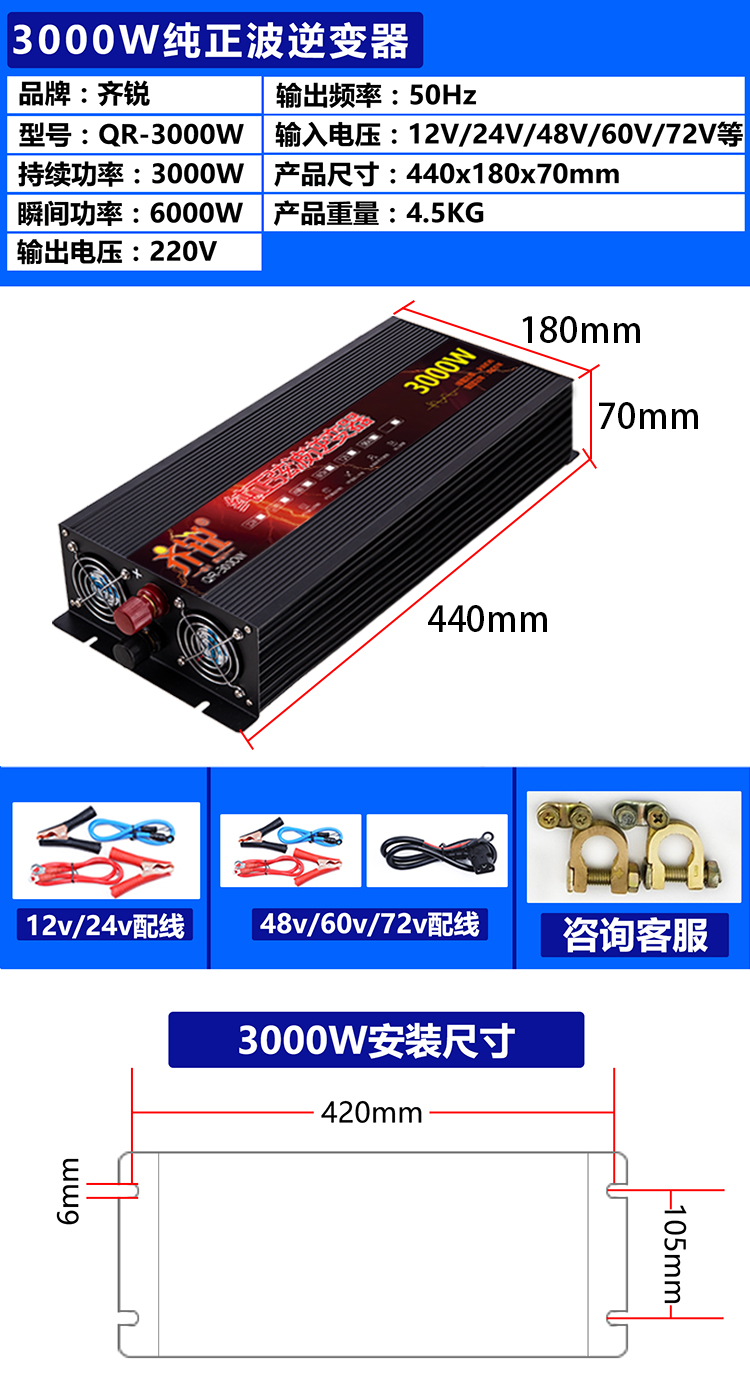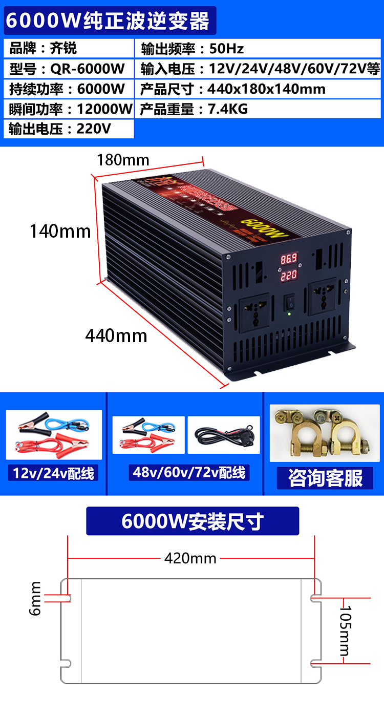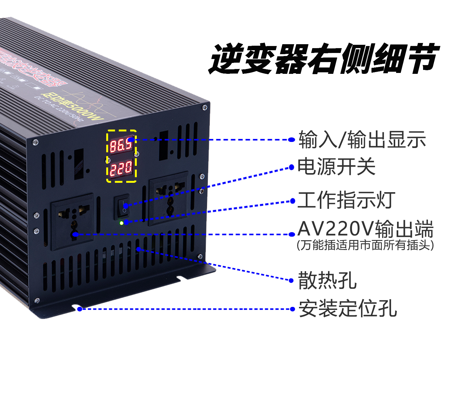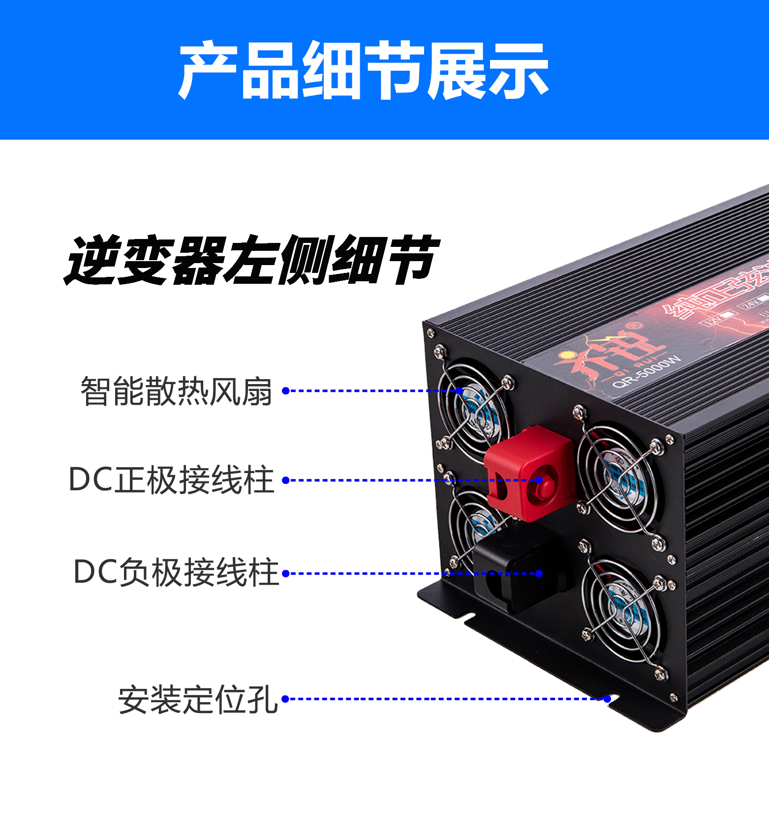 • 새로운 정격 기본 5000W 피크 10000W 포지티브 및 네거티브는 역방향으로 연결할 수 없습니다.