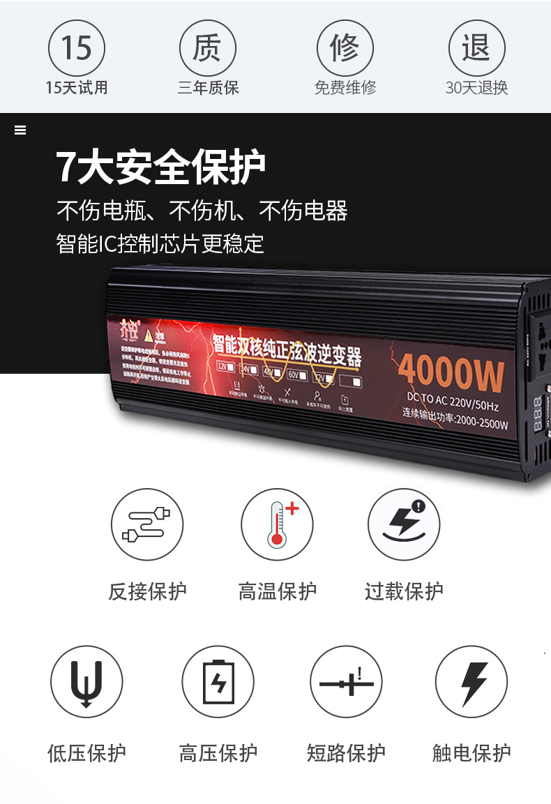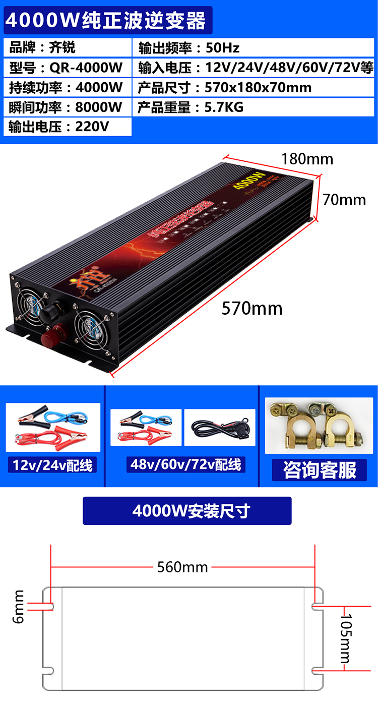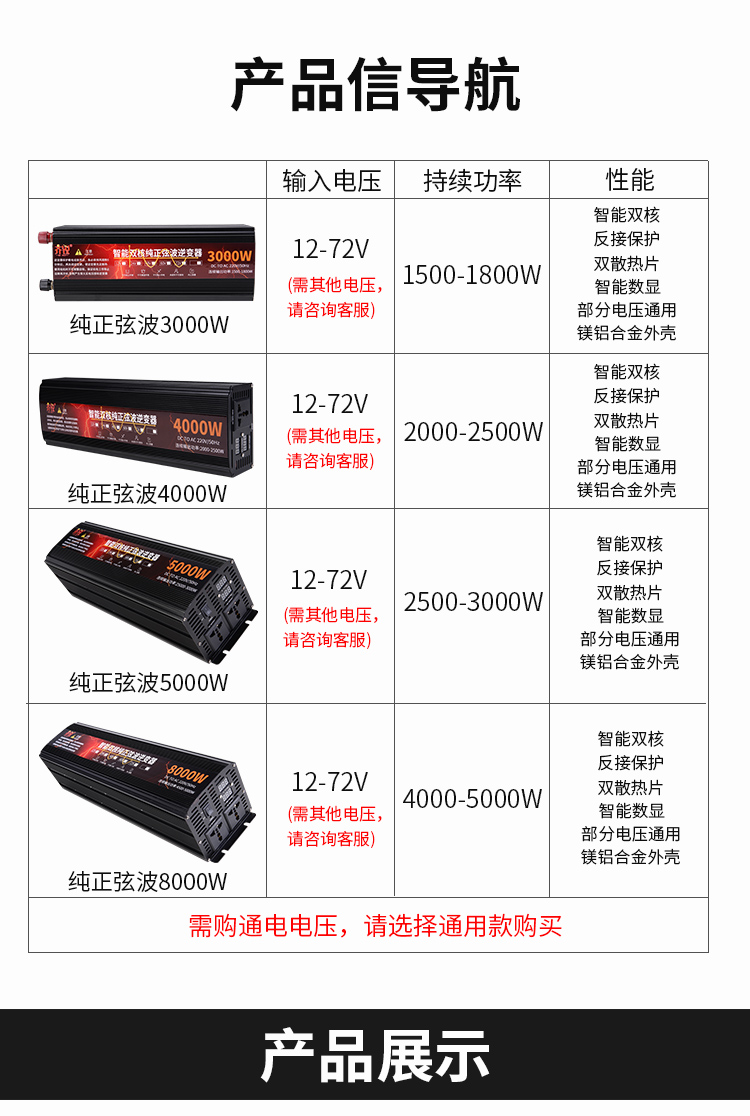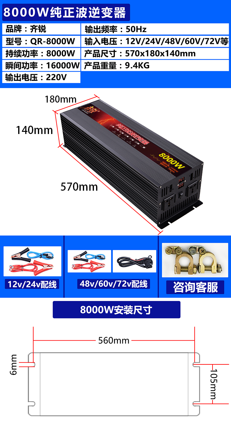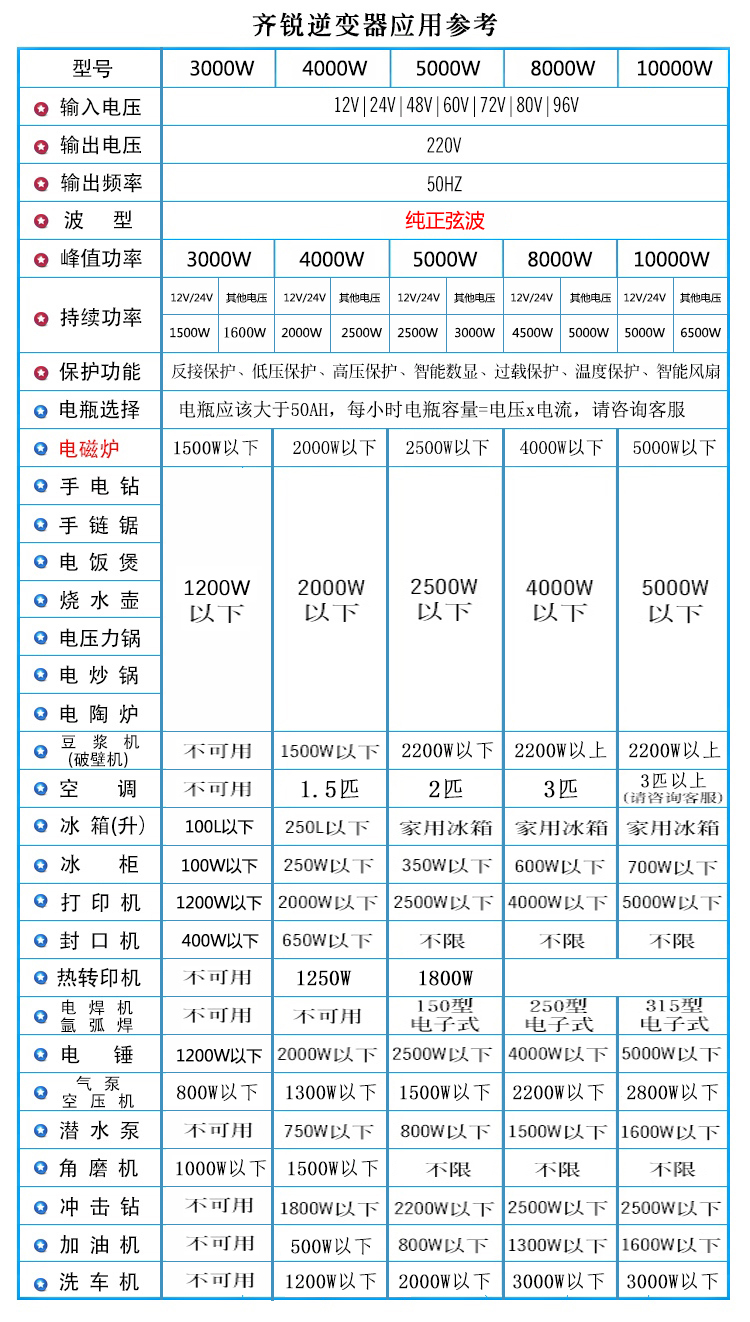 • 새로운 정격 기본 5000W 피크 10000W 포지티브 및 네거티브는 역방향으로 연결할 수 없습니다.