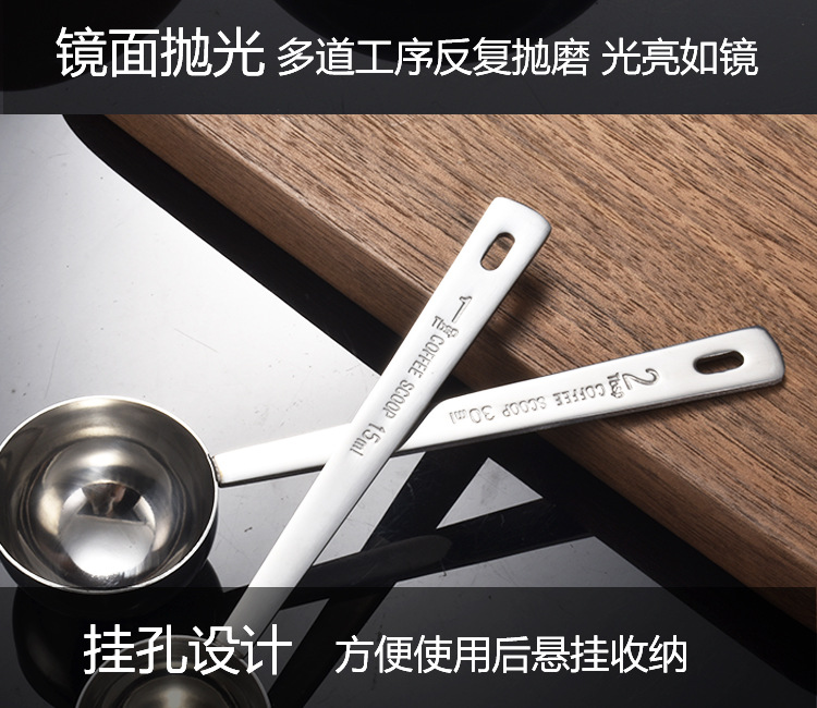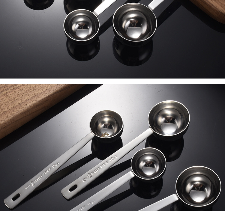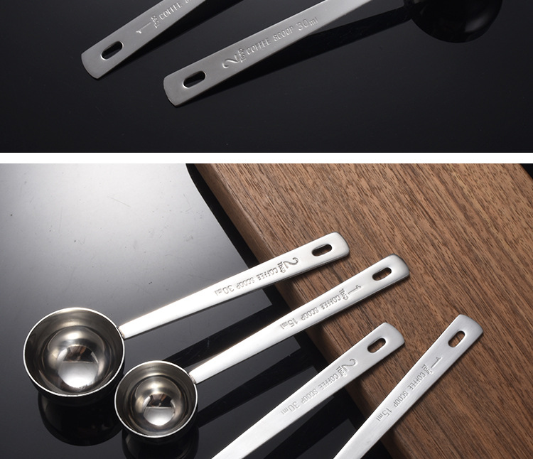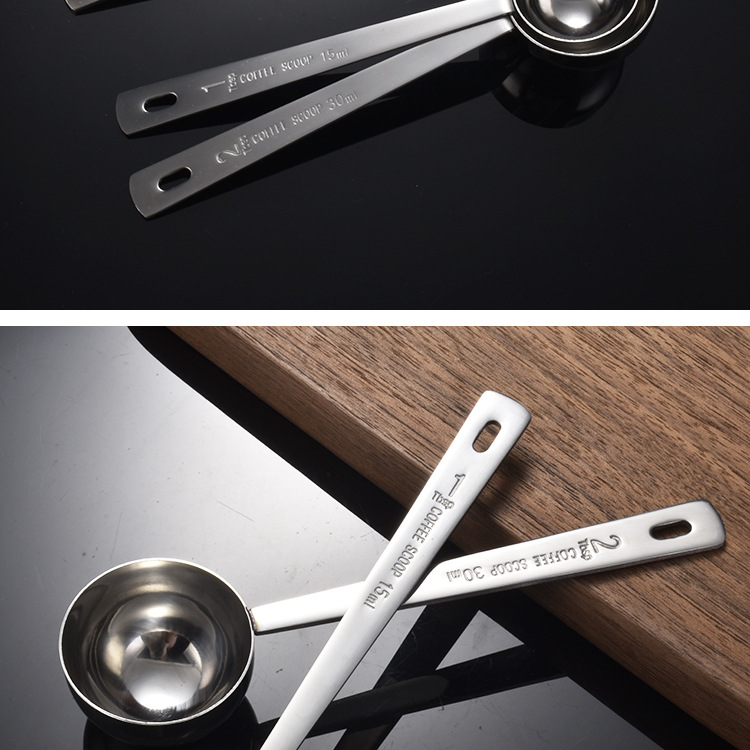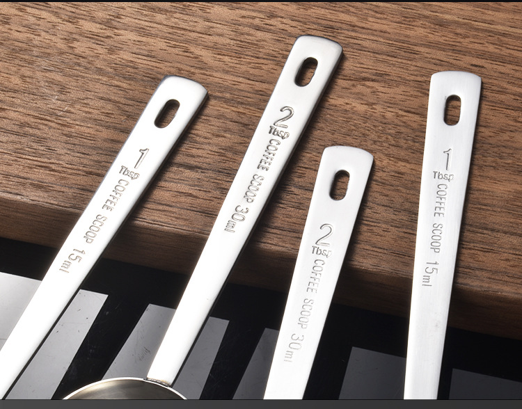 교수형 구멍이 두꺼운 304 스테인레스 스틸 측정 숟가락 15ml 측정 숟가락 구운 커피 콩 분유 측정 숟가락 30ml스토어 가기