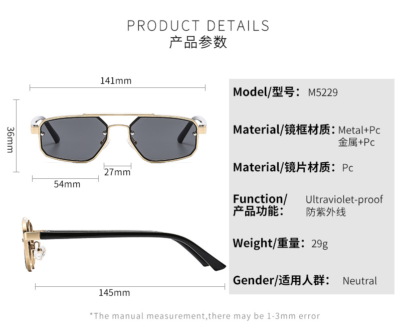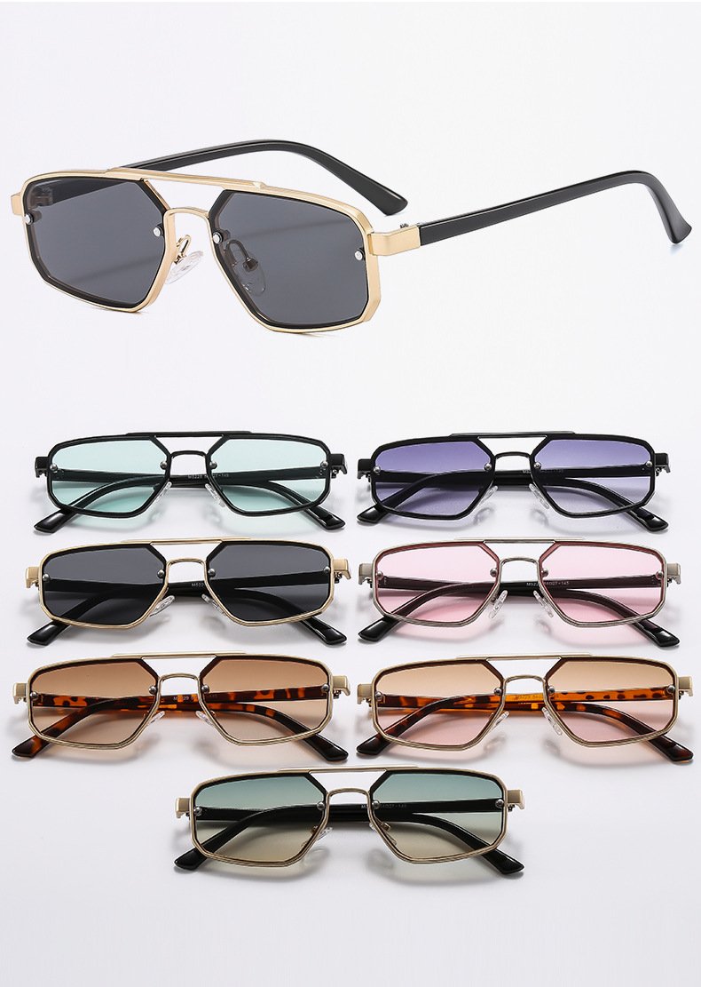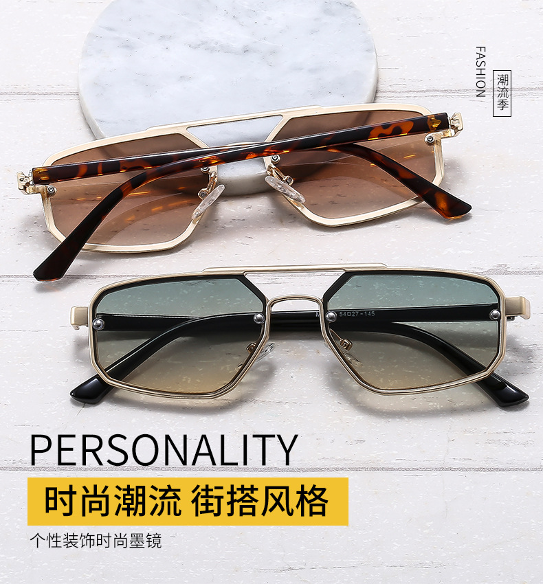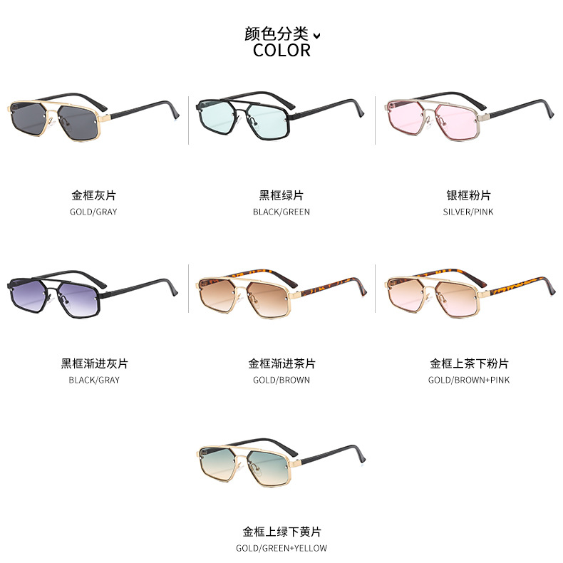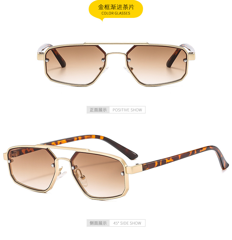 국경 간 레트로 작은 프레임 금속 선글라스 인터넷 인기 패션 간단한 운전 선글라스 유행 남성과 여성의 더블 빔 안경