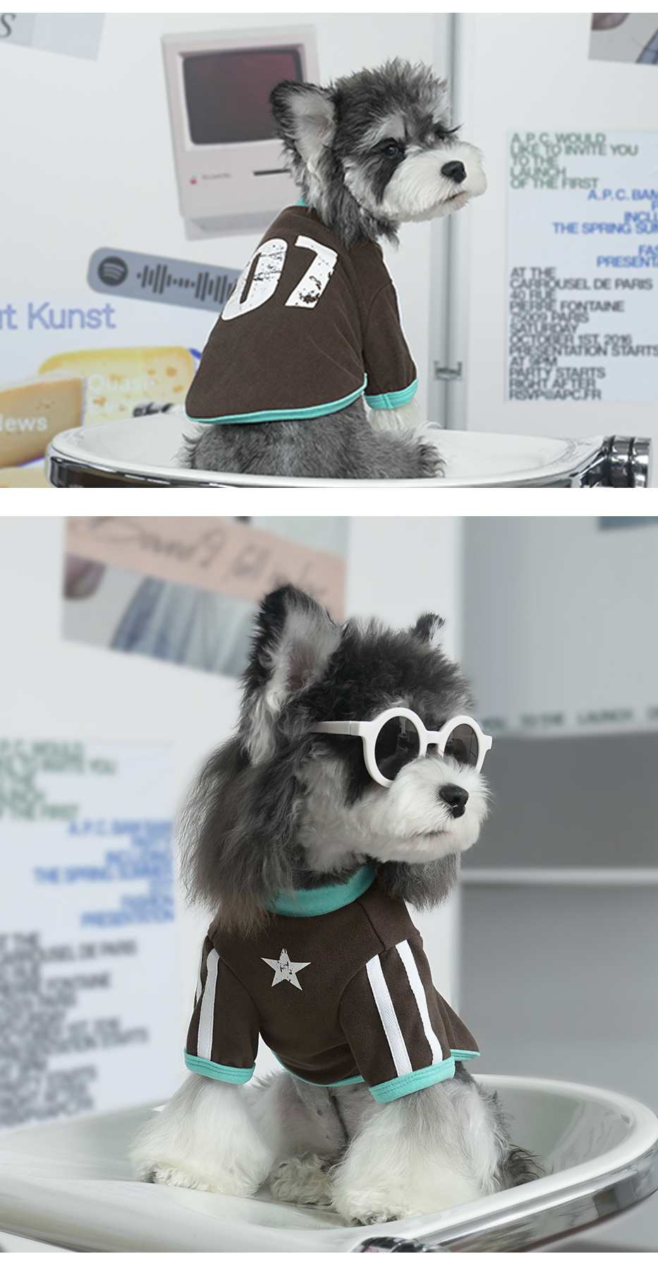 가을과 겨울 미국 레트로 트렌디 멋진 개베이스 2 다리베이스 셔츠 드 롱 따뜻한 개 걷는 옷스토어 가기