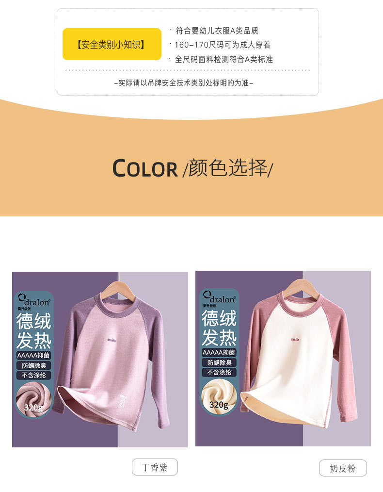 어린이 열 속옷 클래스 A Zhende Velvet Girls 중 및 큰 어린이 양면 기모 두꺼운 가을 옷베이스 겨울 난방스토어 가기