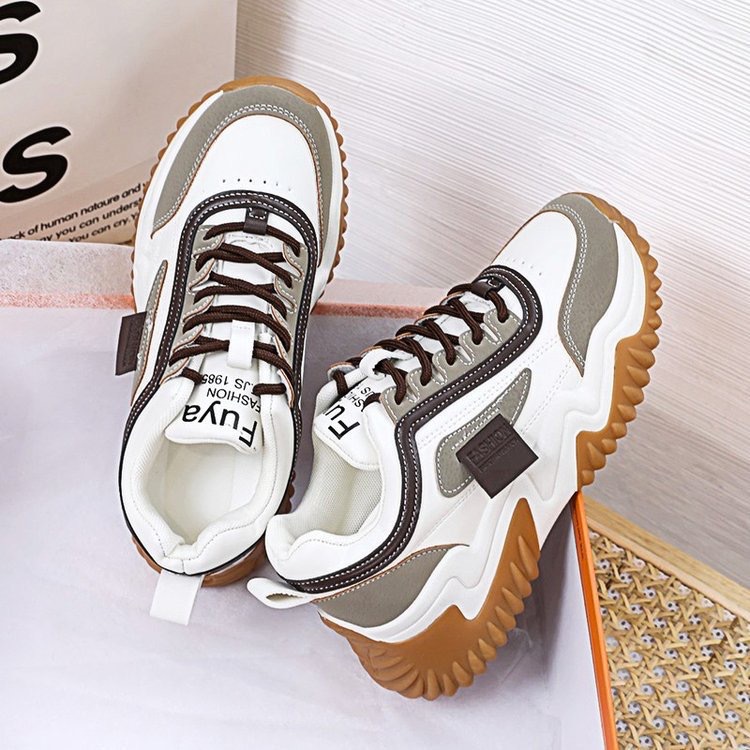 Ins 트렌디 한 한국 스타일 토레 신발 여성 2024 봄 신학기 두꺼운 밑창 운동화 여성 명암 레이스 업 캐주얼 여성 신발스토어 가기