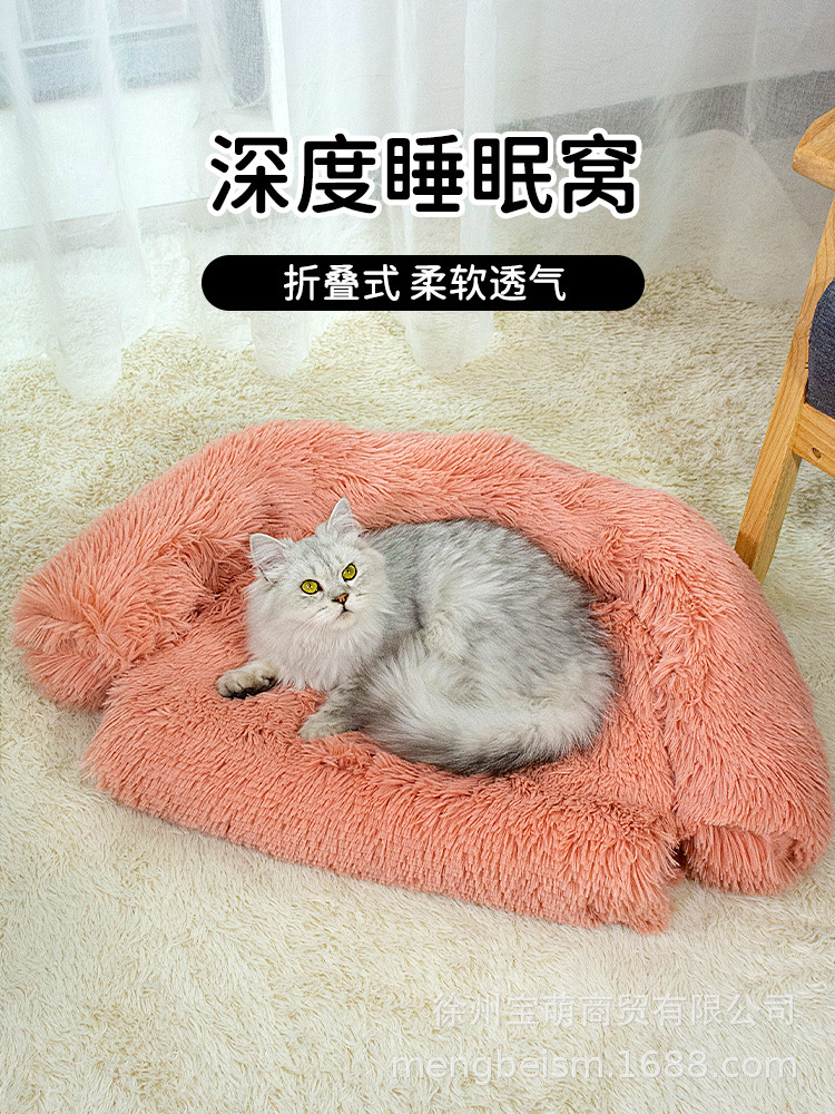 국경을 넘어 인기 있는 긴털 소파형 고양이/강아지 집, 애완동물 담요, 대형견 침대, 고양이/강아지 수면 매트, 겨울철 보온용