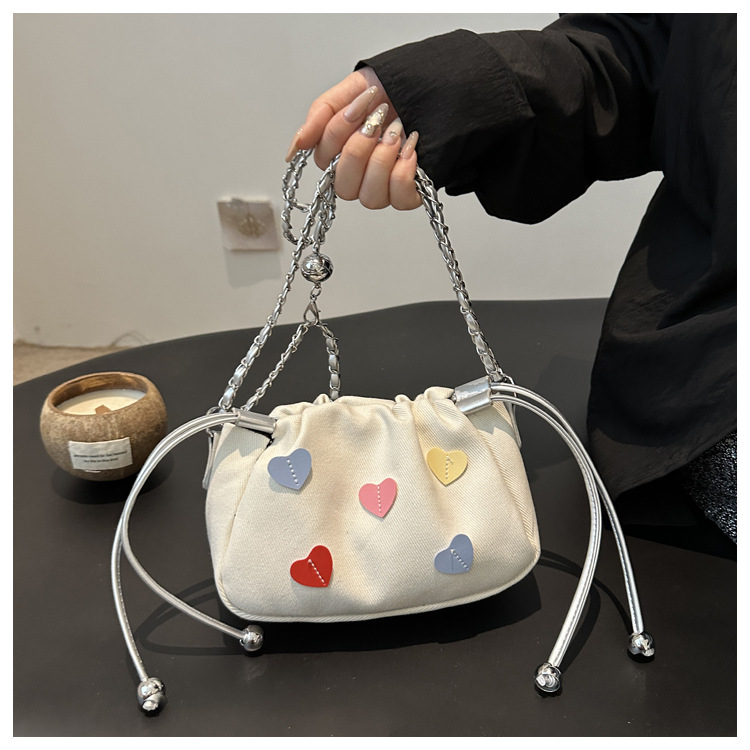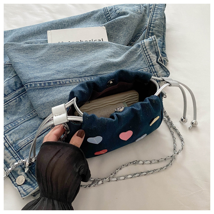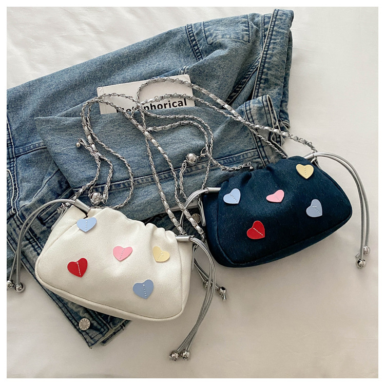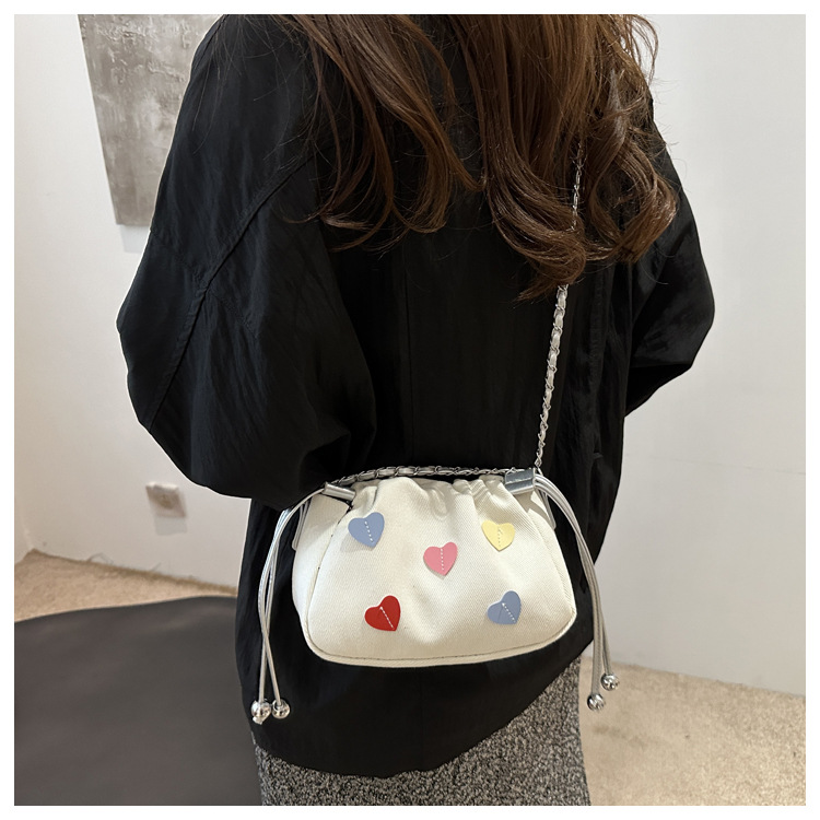 귀여운 사랑 하이 엔드 센스 백 여성의 새로운 패션 체인 크로스 바디 백 올해 인기있는 작은 주름 버킷 백스토어 가기