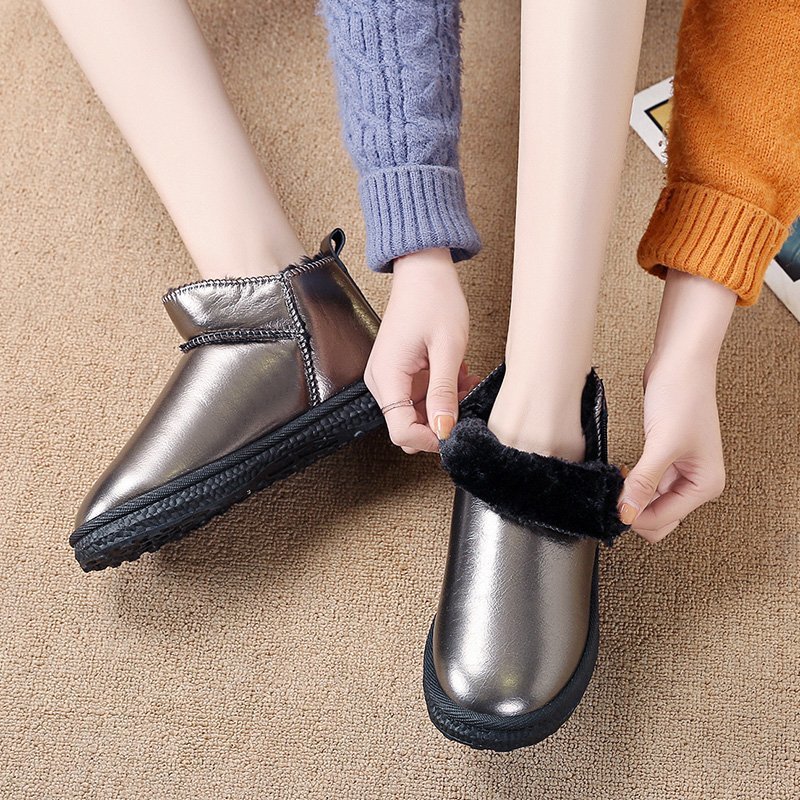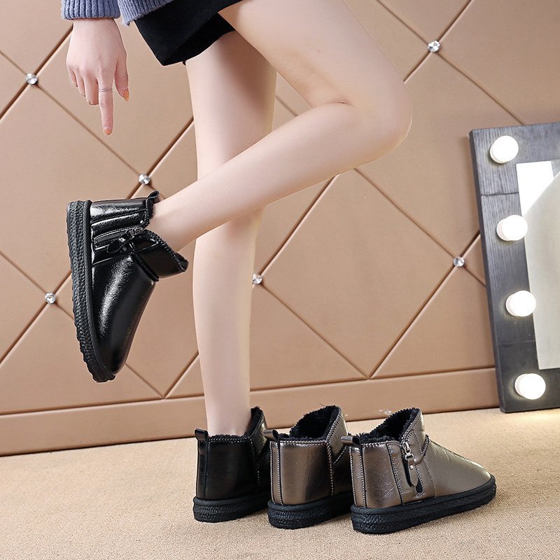 스노우 부츠 여성의 짧은 튜브 2023 겨울 새로운 두꺼운 기모 빵면 신발 밝은 방수 페달 부츠스토어 가기