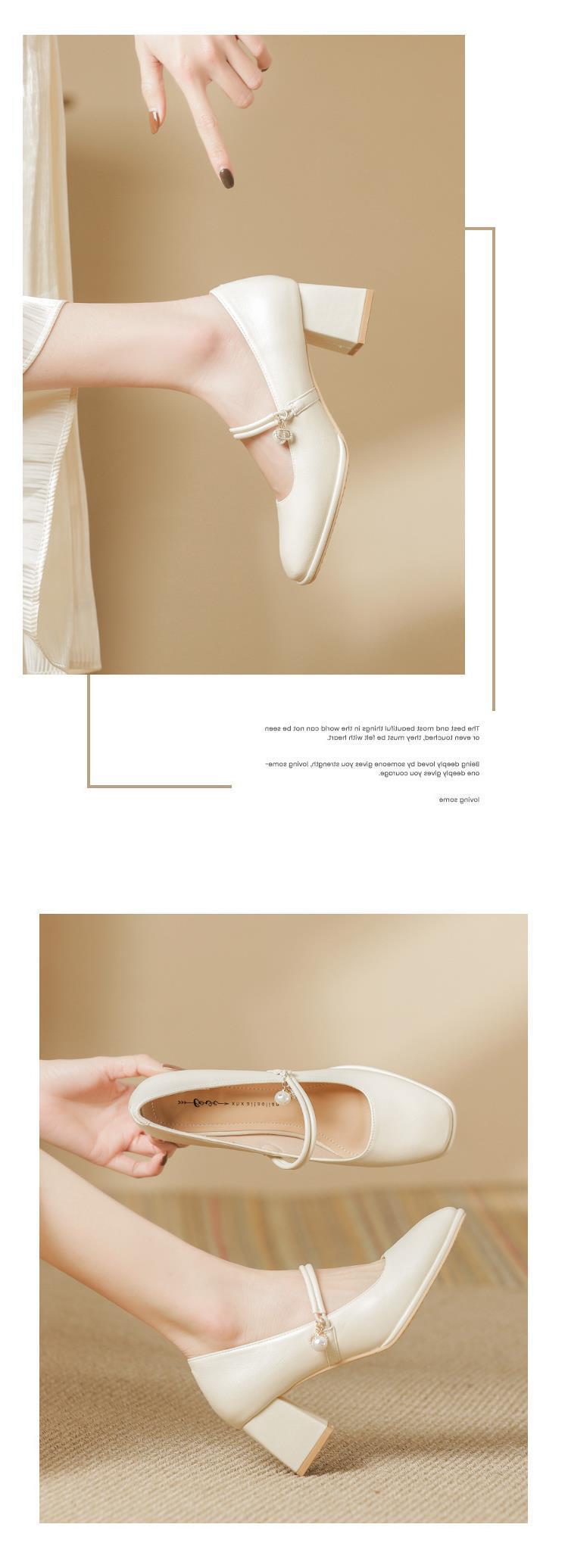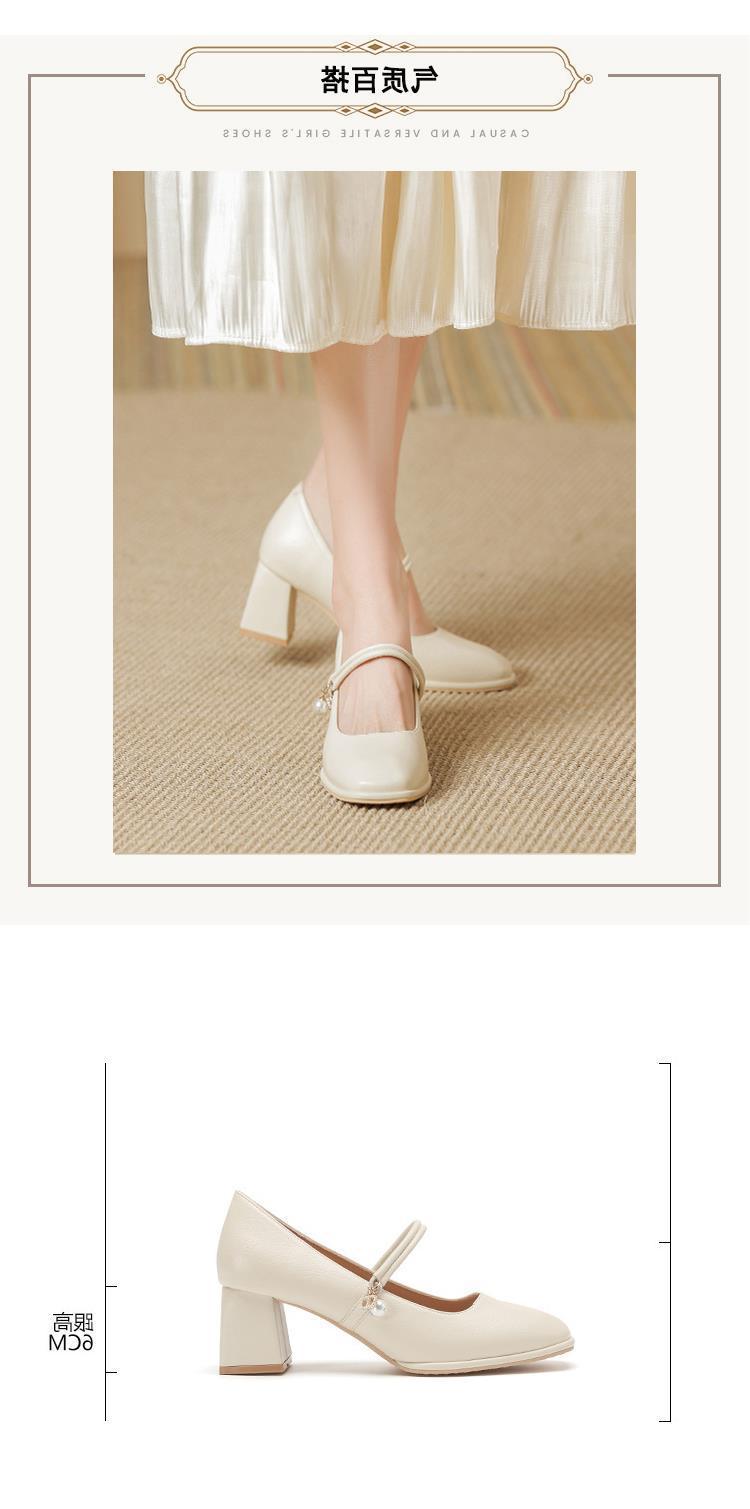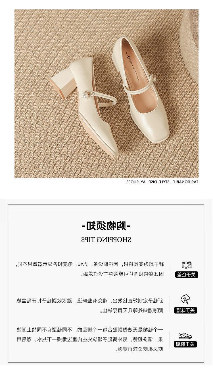 얕은 입 여성용 신발 슬립 온 가죽 소프트, 작은 샤넬 스타일 센터 미터 하이 힐 펄 스퀘어 헤드 메리 제인 신발 5 두께스토어 가기