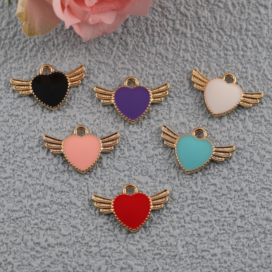 컬러 날개 천사 사랑 드롭 오일 합금 DIY 수제 팔찌 목걸이 펜던트 보석 소재 액세서리