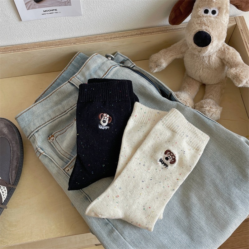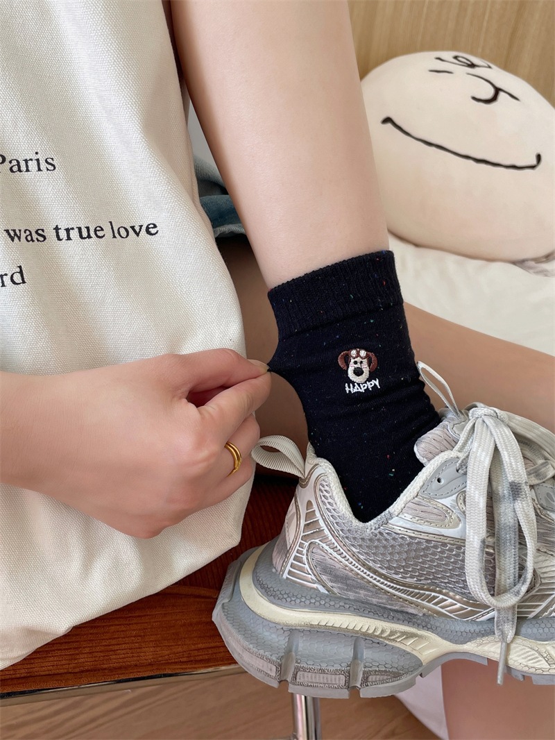 한국 나는 포인트 원사 강아지 자수 귀여운 양말 남자와 여자 만화 항공기 개 면화 양말은 양말 여자를 쌓아