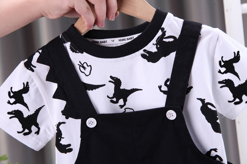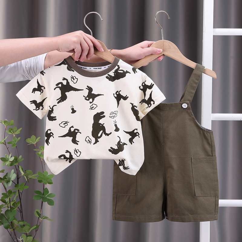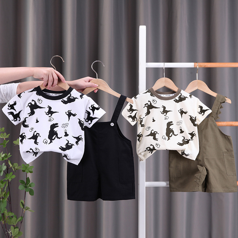 국경 간 아동복 여름 새 소년 아기 아기 어린이 세트 만화 멜빵 반팔 세트 투피스 세트