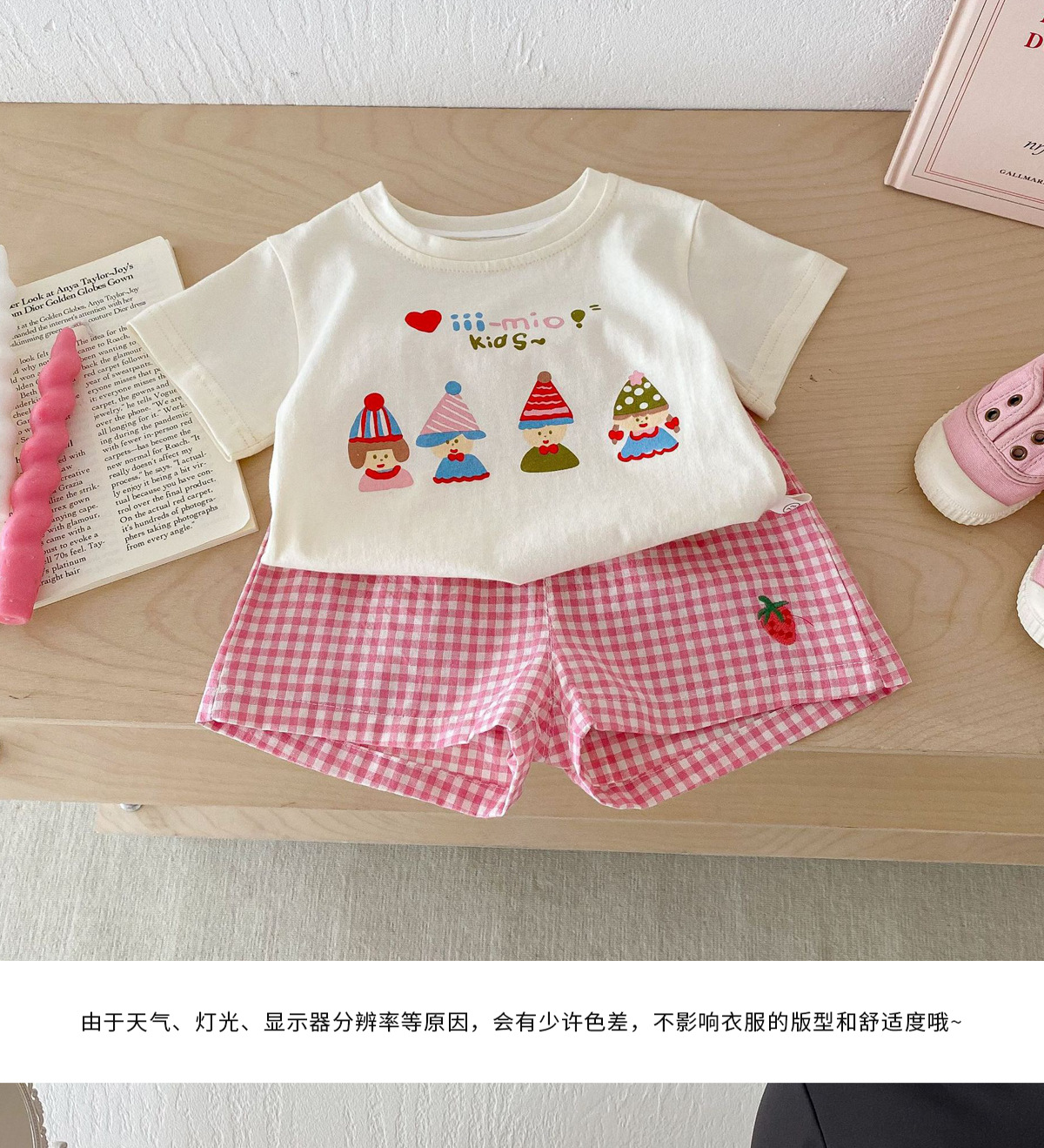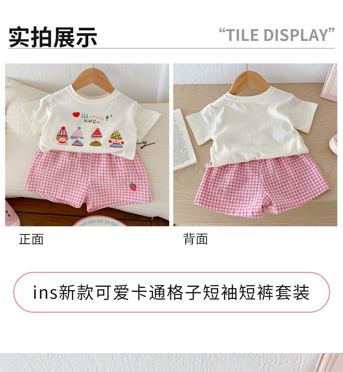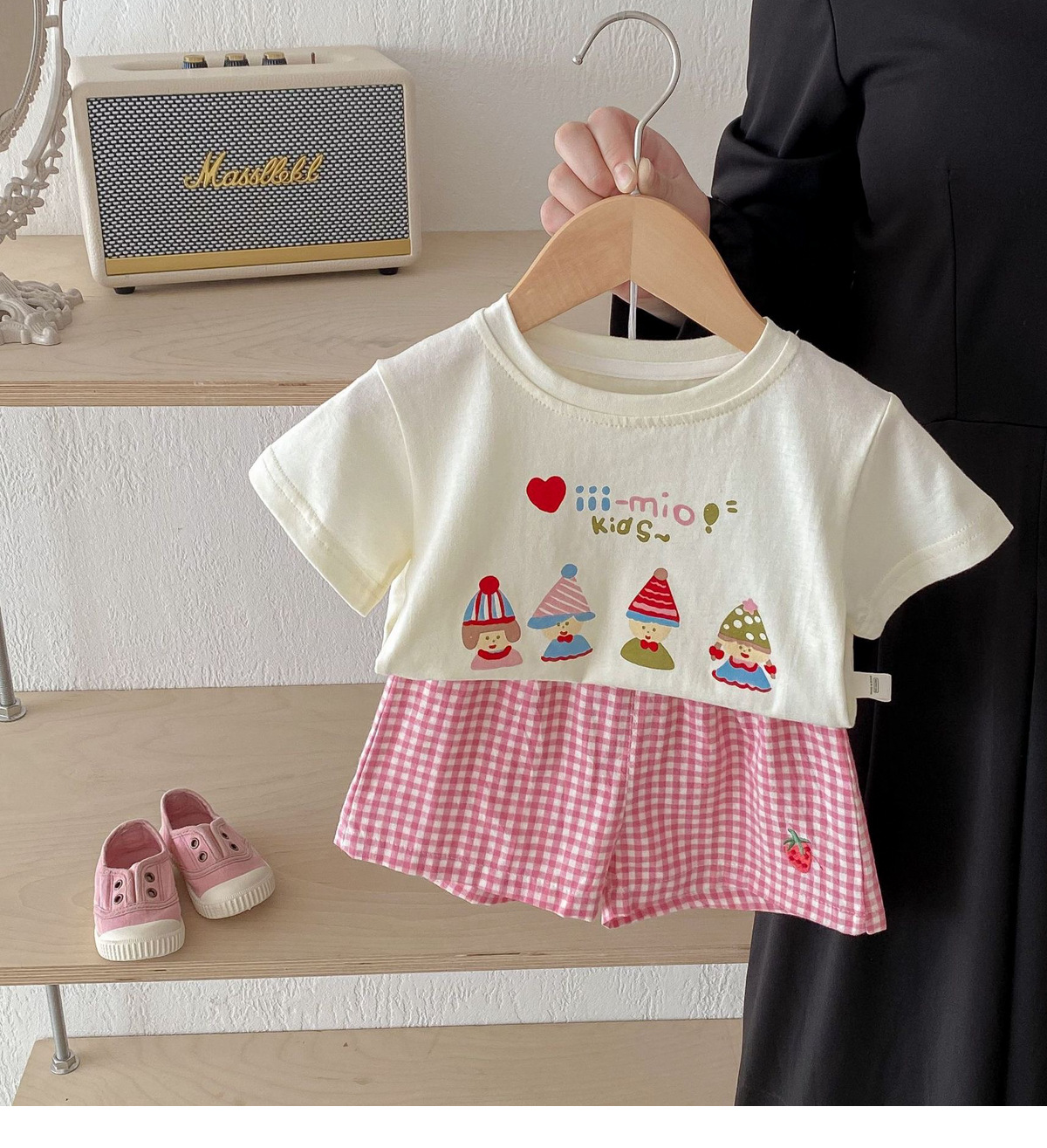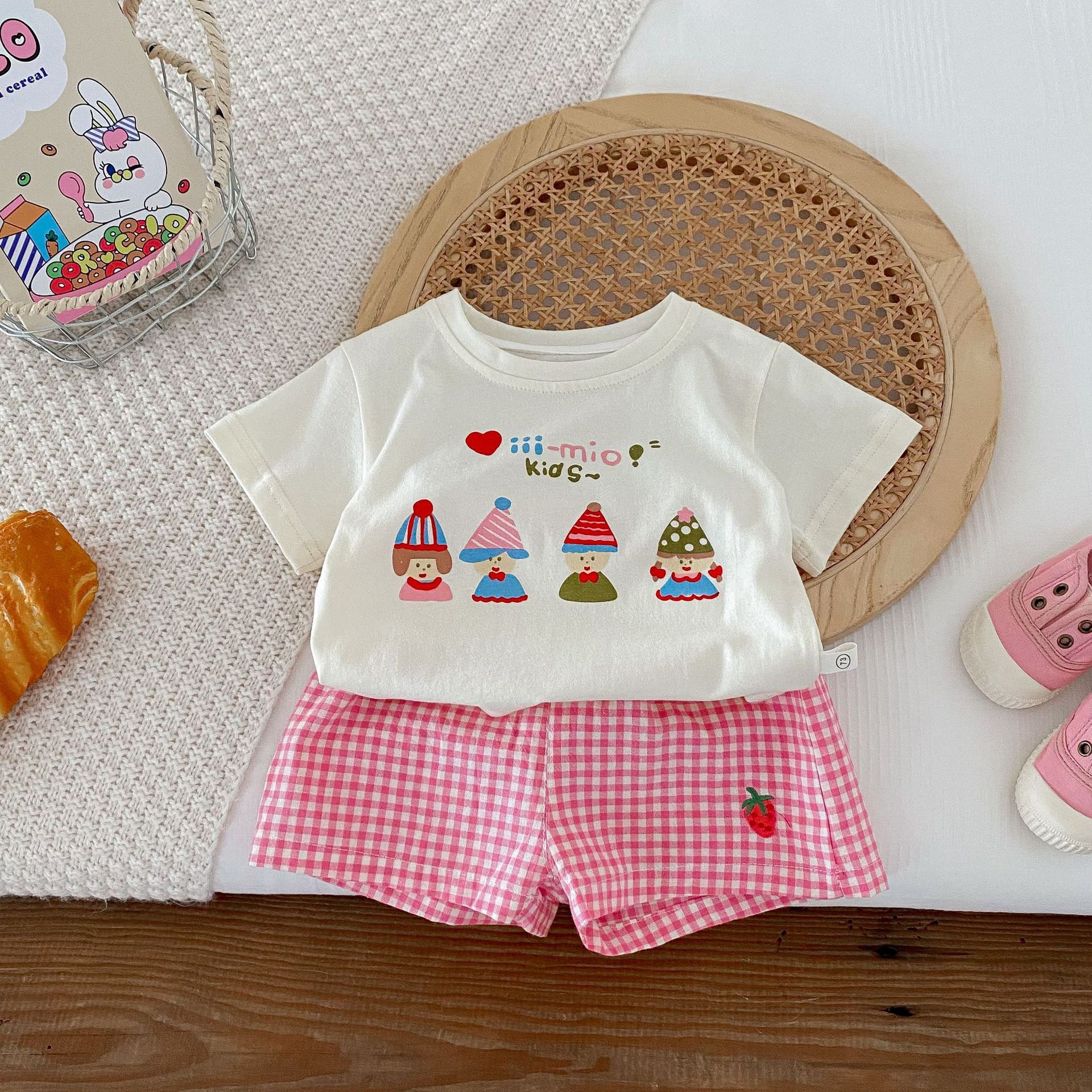 여자 만화 세트 0-5 세 여름 한국 아동복 아기 슈퍼 귀여운 티셔츠 체크 무늬 반바지 투피스 귀여운스토어 가기
