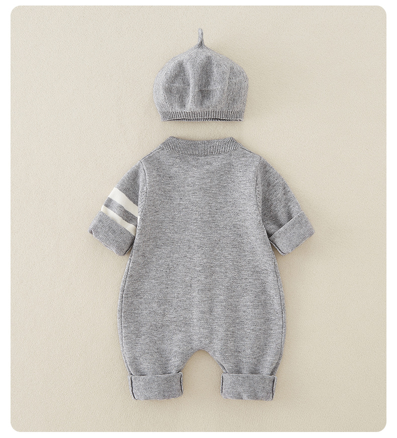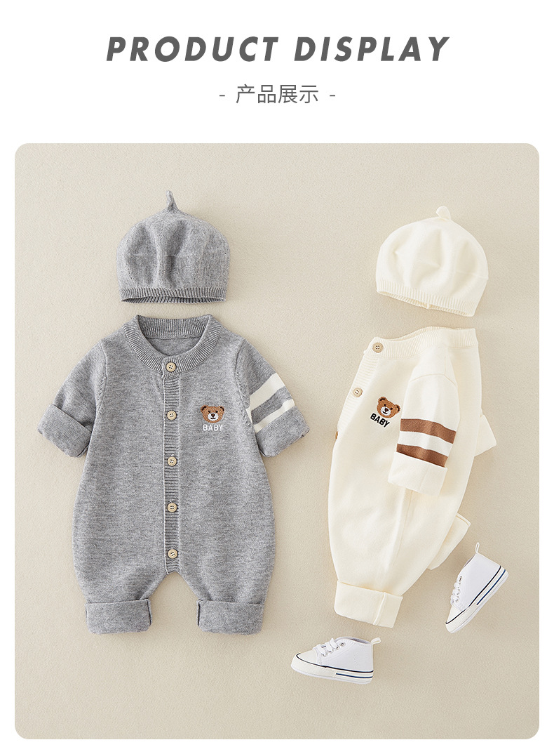 婴幼儿童衣服连体衣春秋装毛衣新生婴儿爬服套装纯色宝宝针织衫