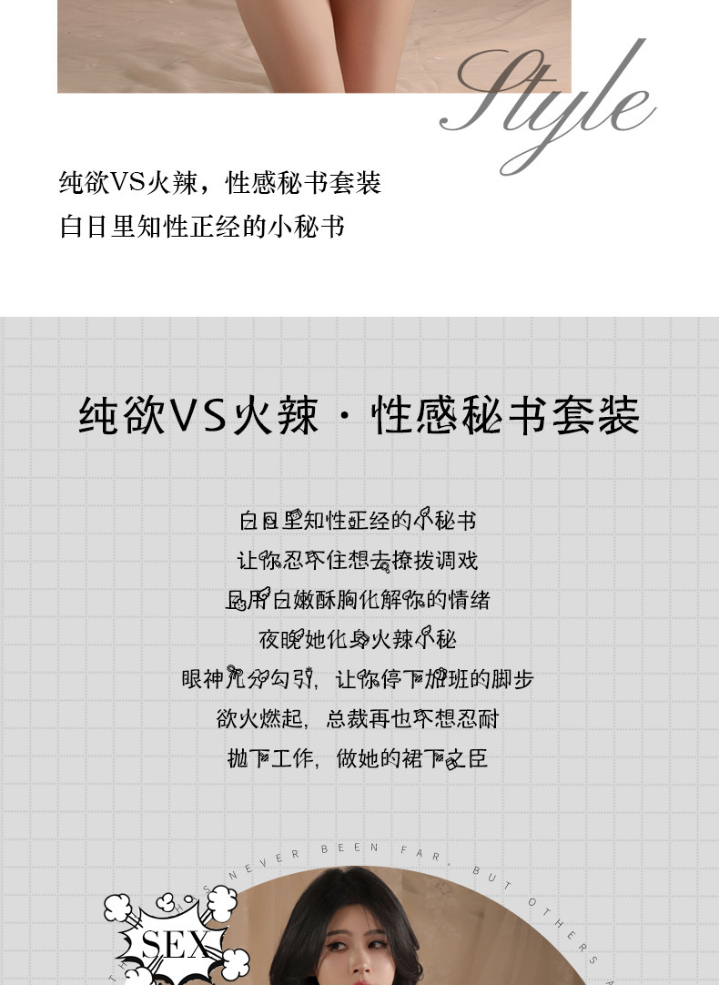 섹시한 란제리 여성 비서 스트랩 유혹 나이트 클럽 롤 플레잉 원피스 등받이 없는 열정 시스템