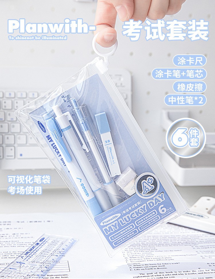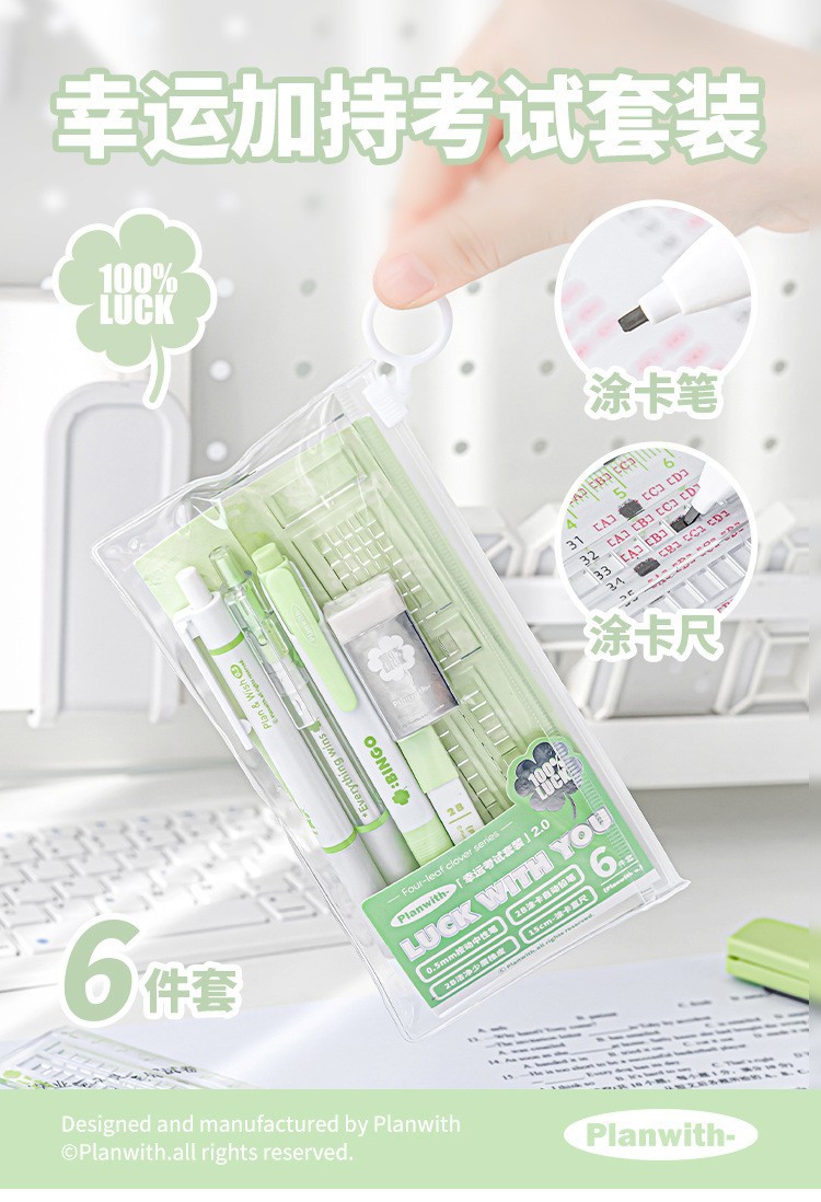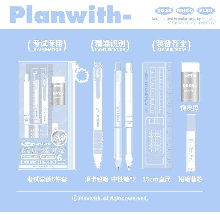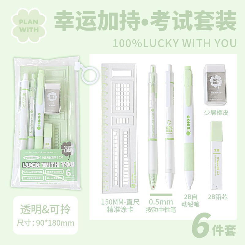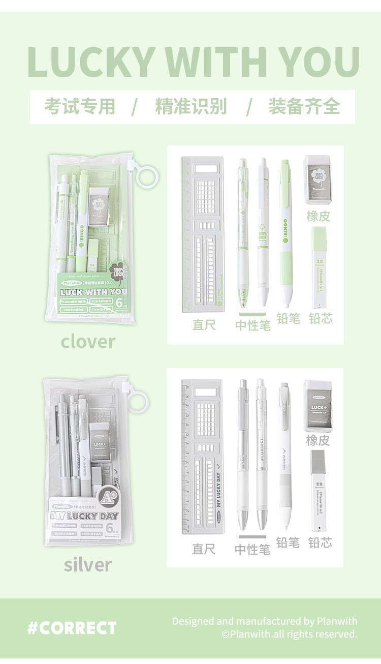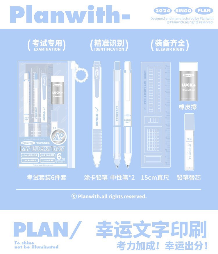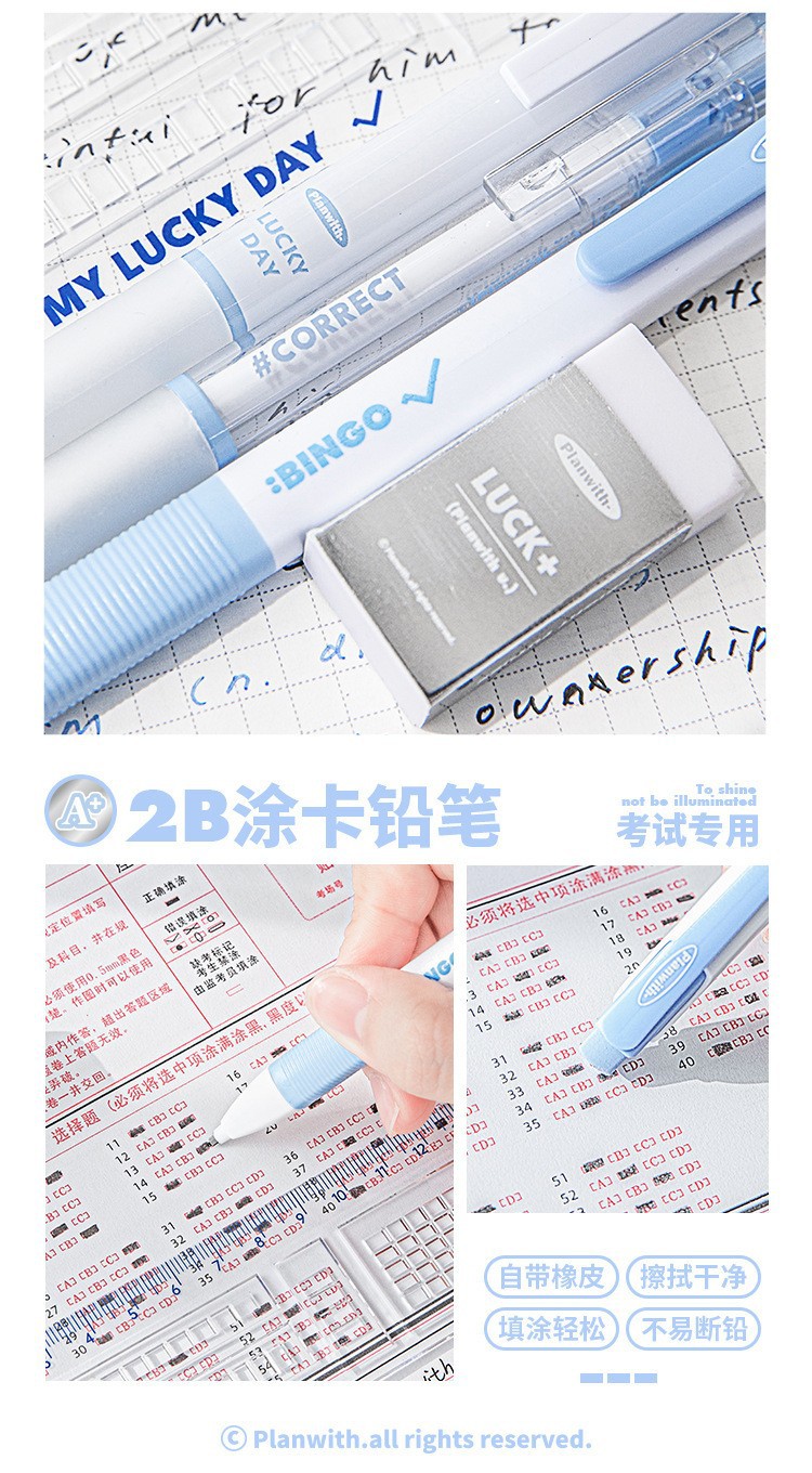 Planwith 럭키 테스트 세트 프레스 젤 펜 2B 기계 연필 지우개 학생 6 문구스토어 가기