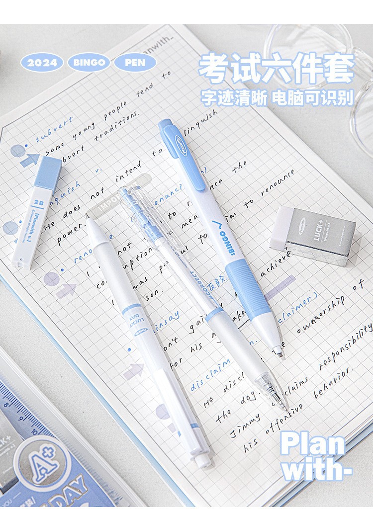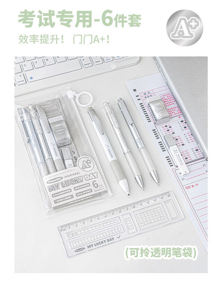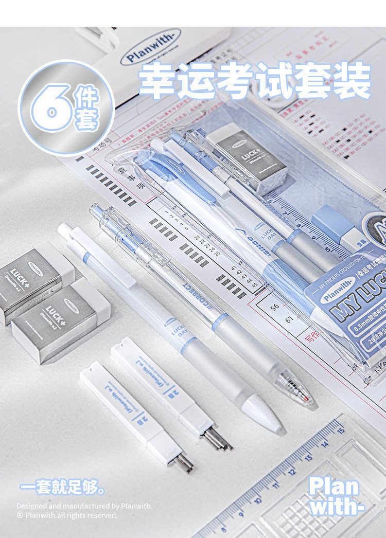 Planwith 럭키 테스트 세트 프레스 젤 펜 2B 기계 연필 지우개 학생 6 문구