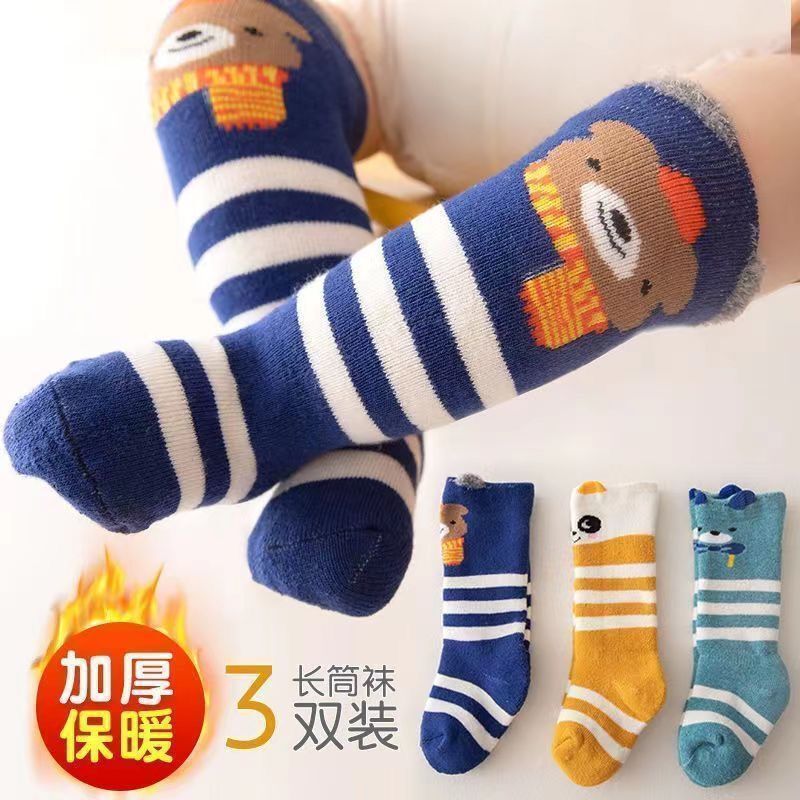 신생아 양말 가을과 겨울 두꺼운 테리 따뜻한 소년과 소녀 아기 면화 0-3 월 6 일 튜브스토어 가기