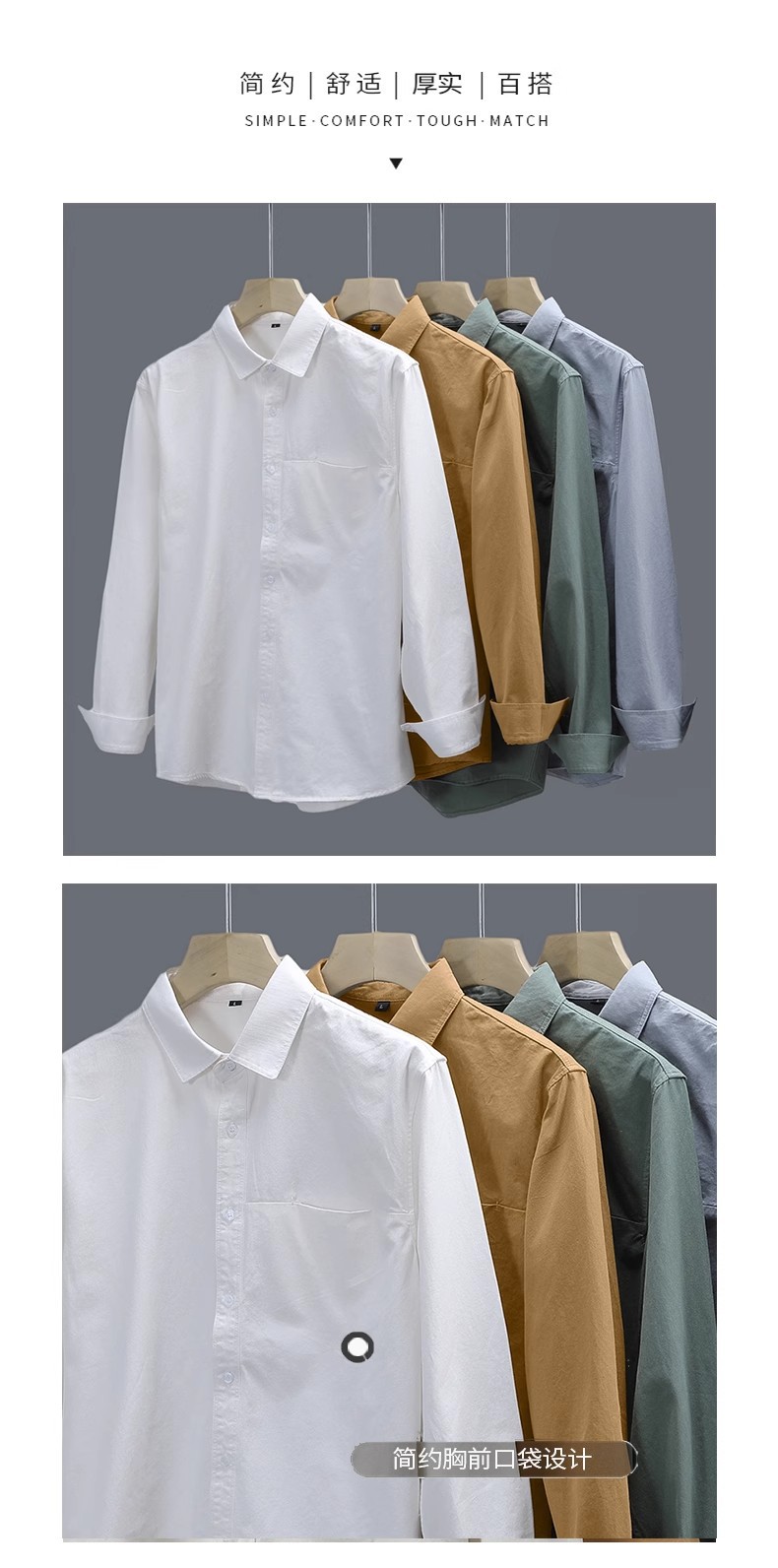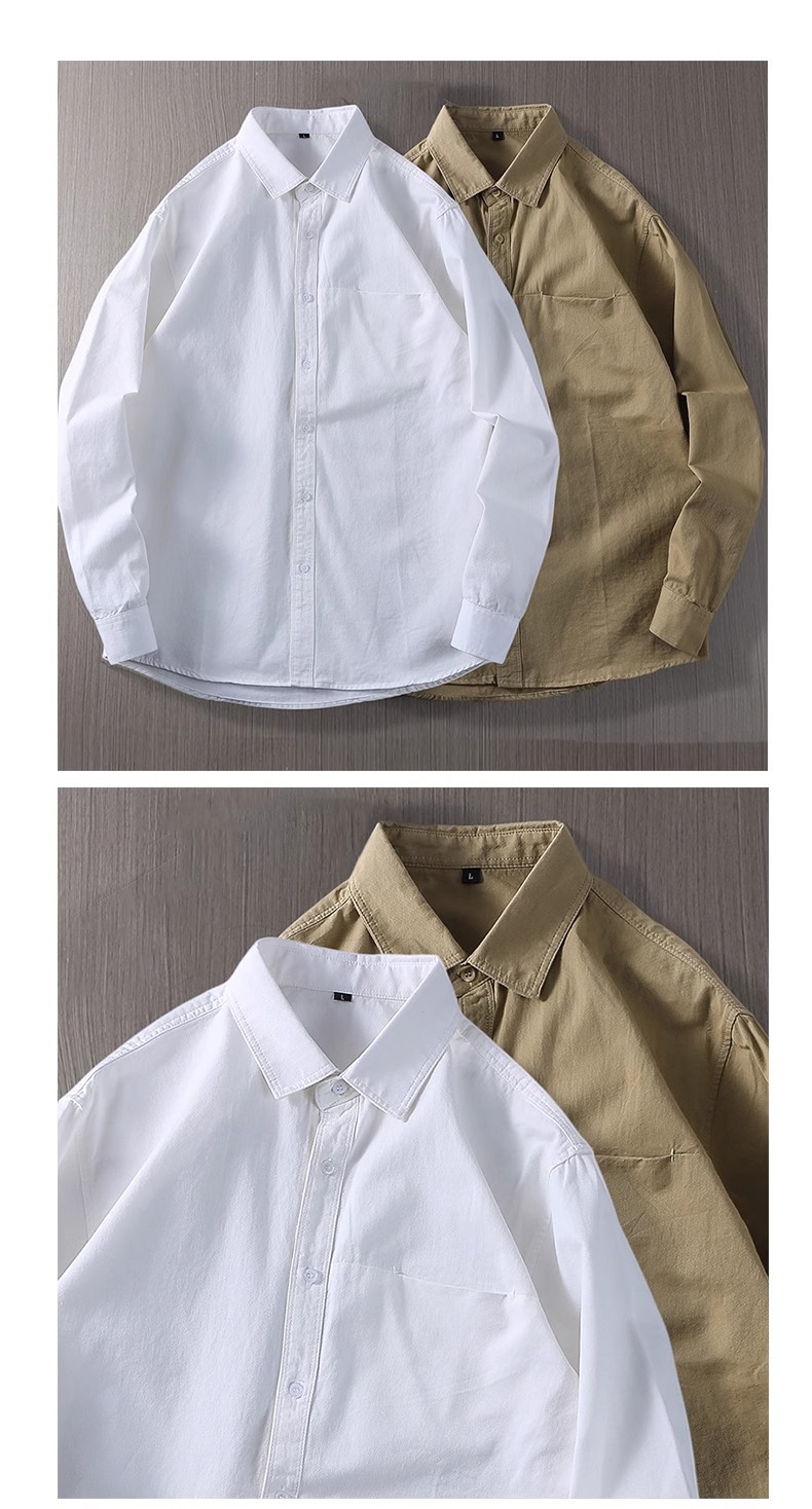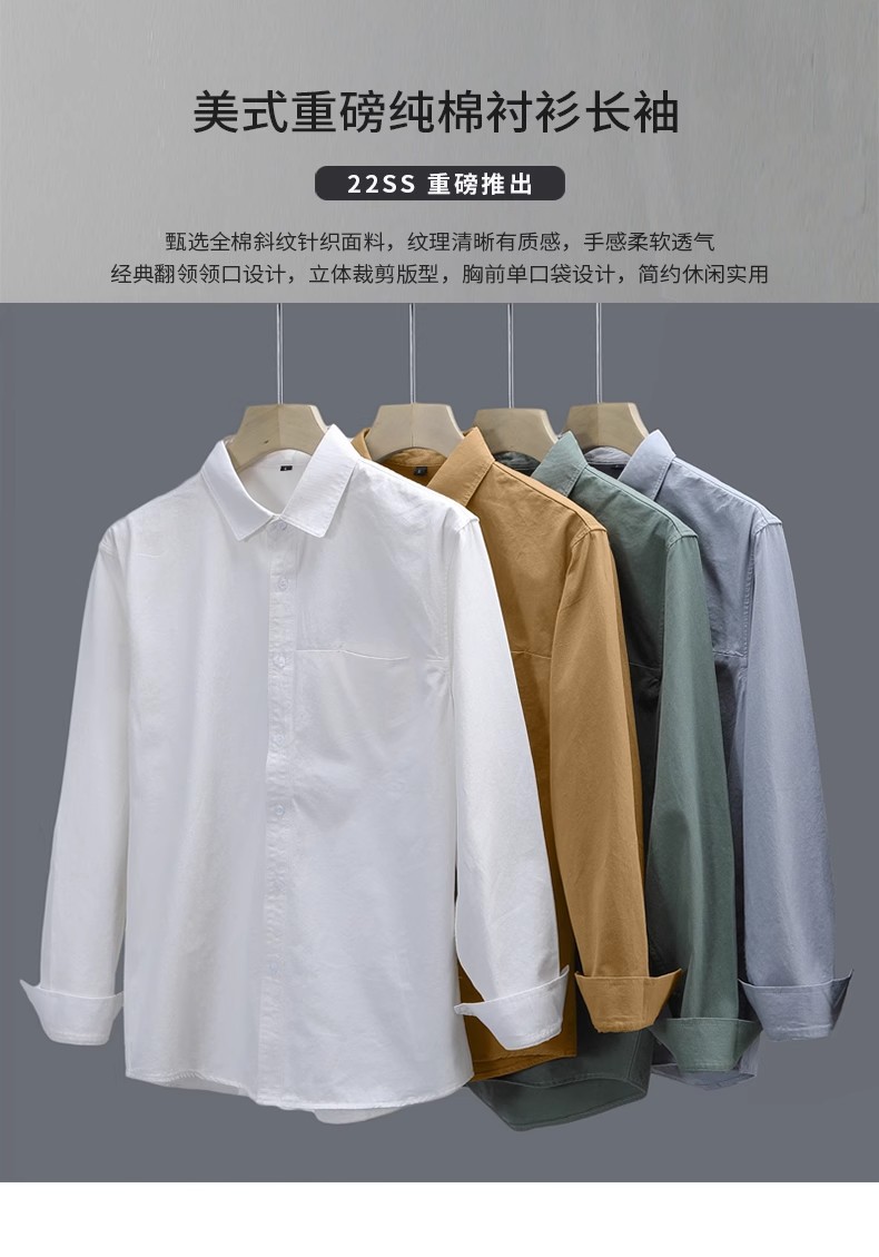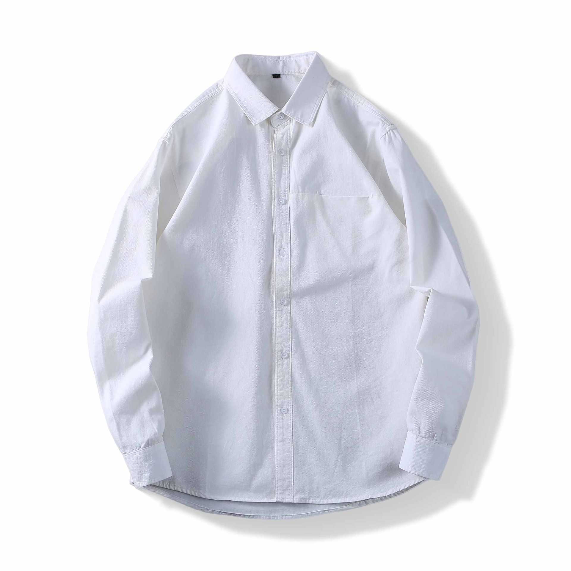 헤비 코튼 아메리칸 스타일 긴팔 셔츠 남자 사계절 하이 엔드 센스 캐주얼 솔리드 컬러 화이트 옷깃 셔츠 최고 트렌디스토어 가기