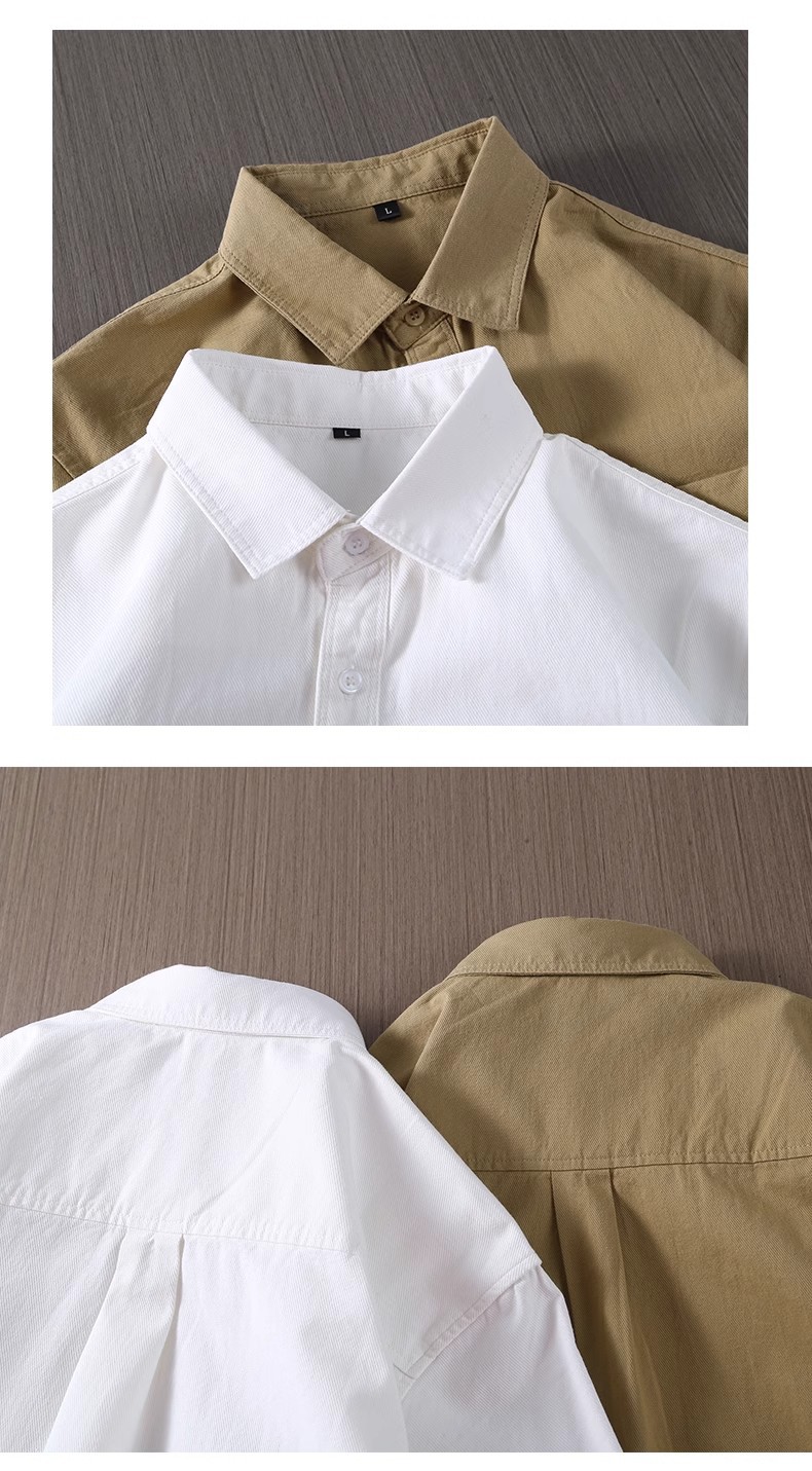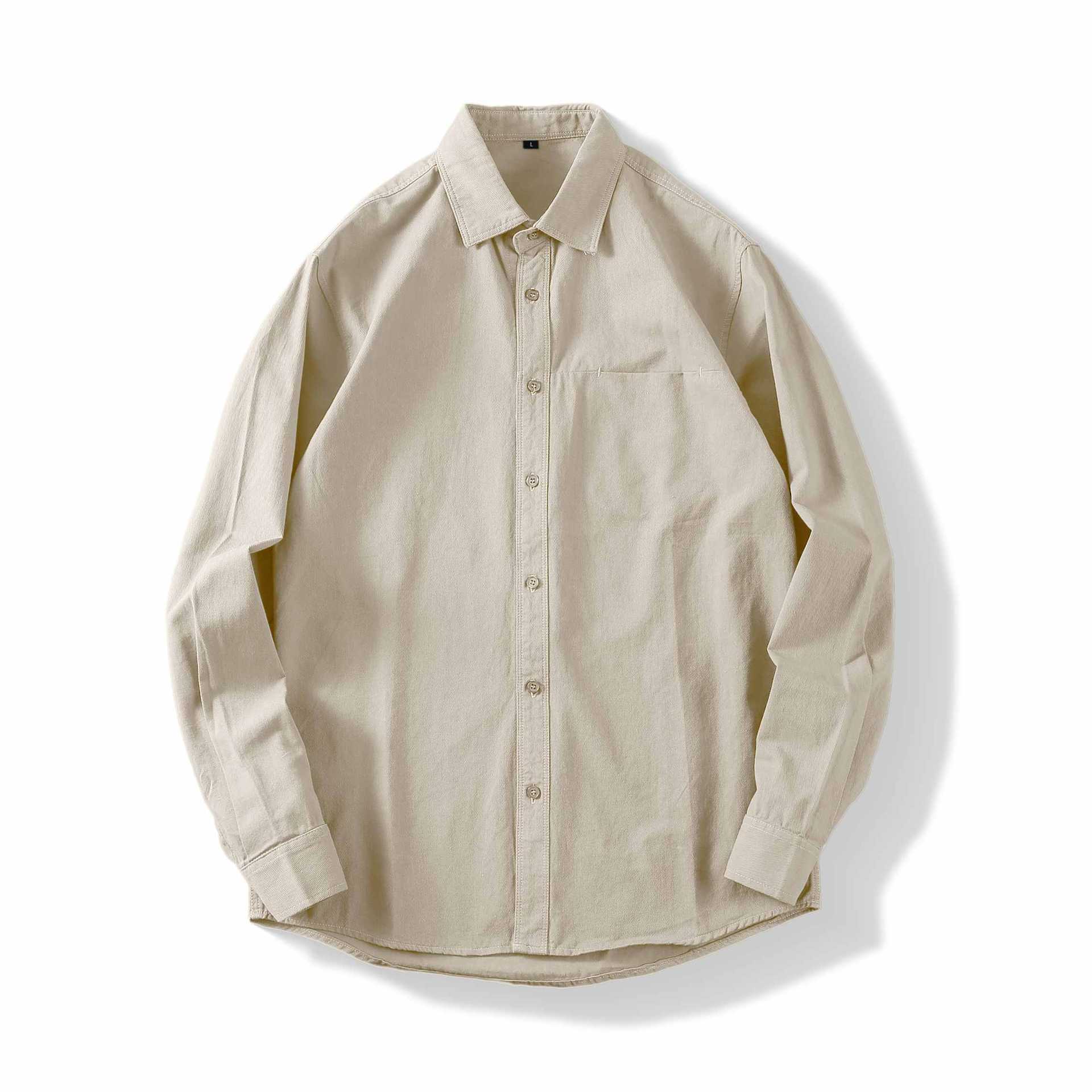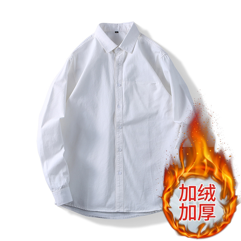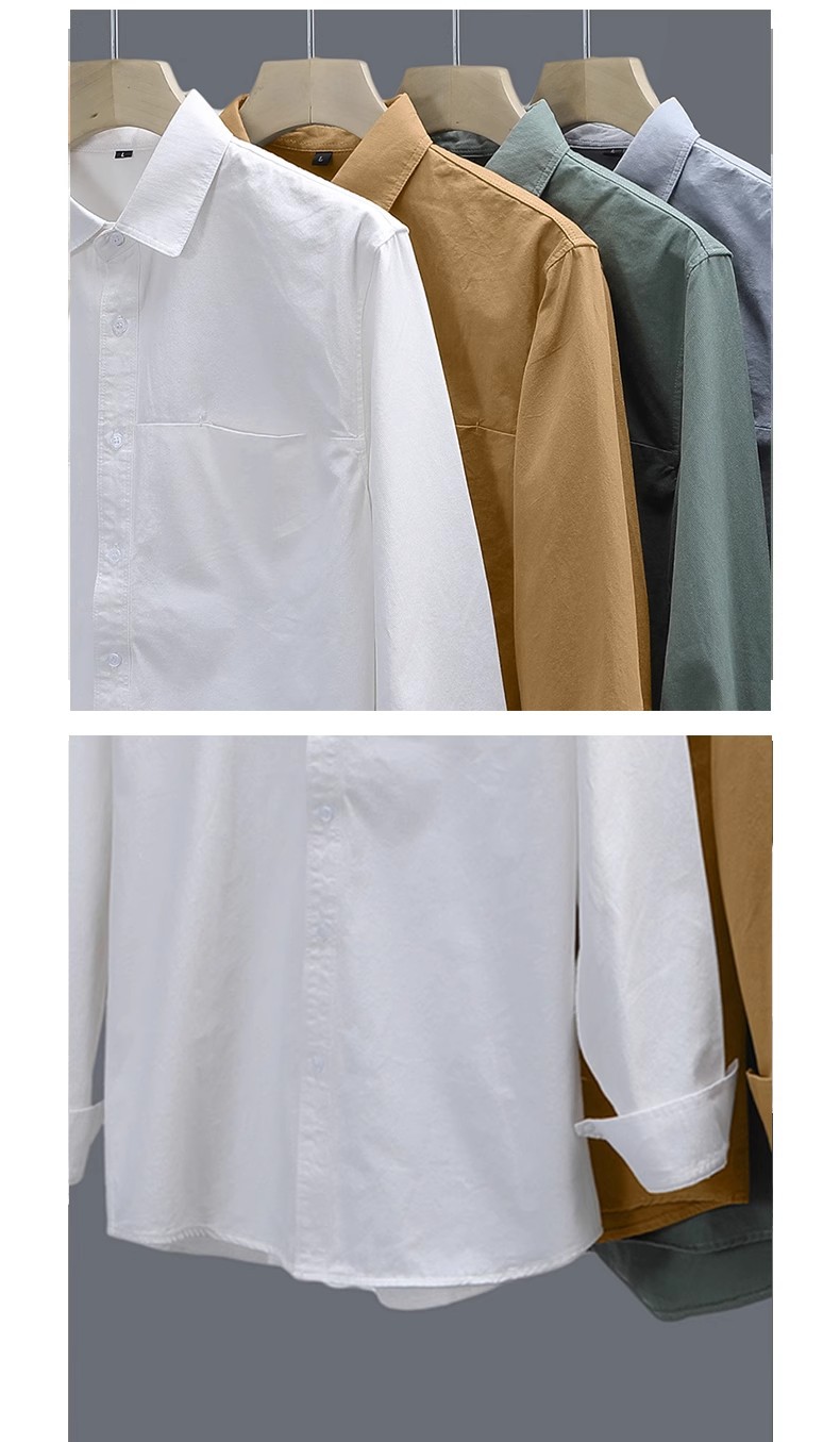 헤비 코튼 아메리칸 스타일 긴팔 셔츠 남자 사계절 하이 엔드 센스 캐주얼 솔리드 컬러 화이트 옷깃 셔츠 최고 트렌디스토어 가기