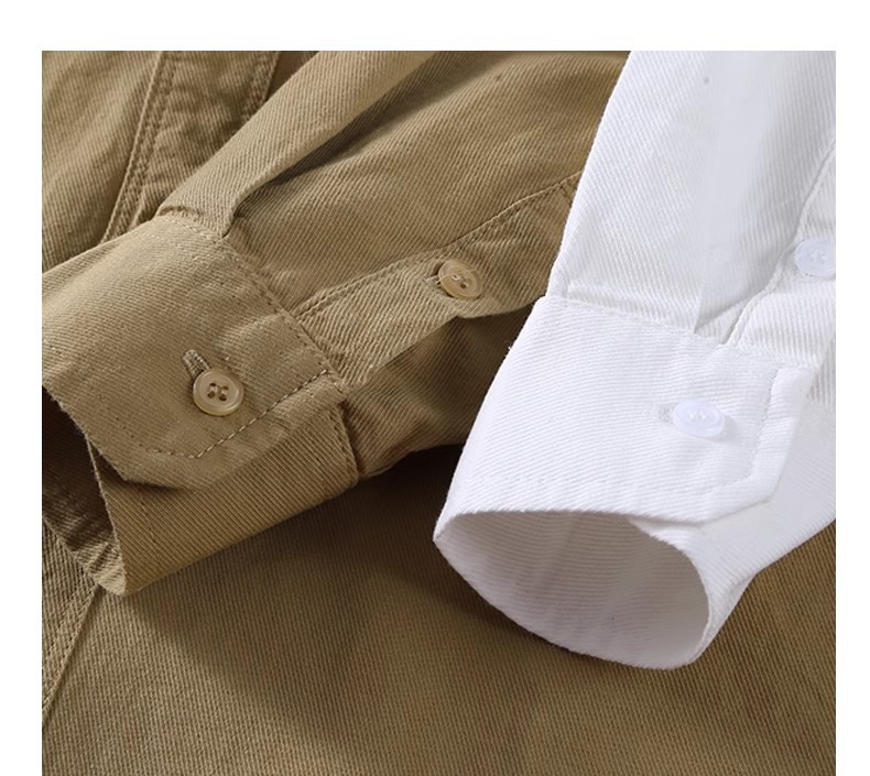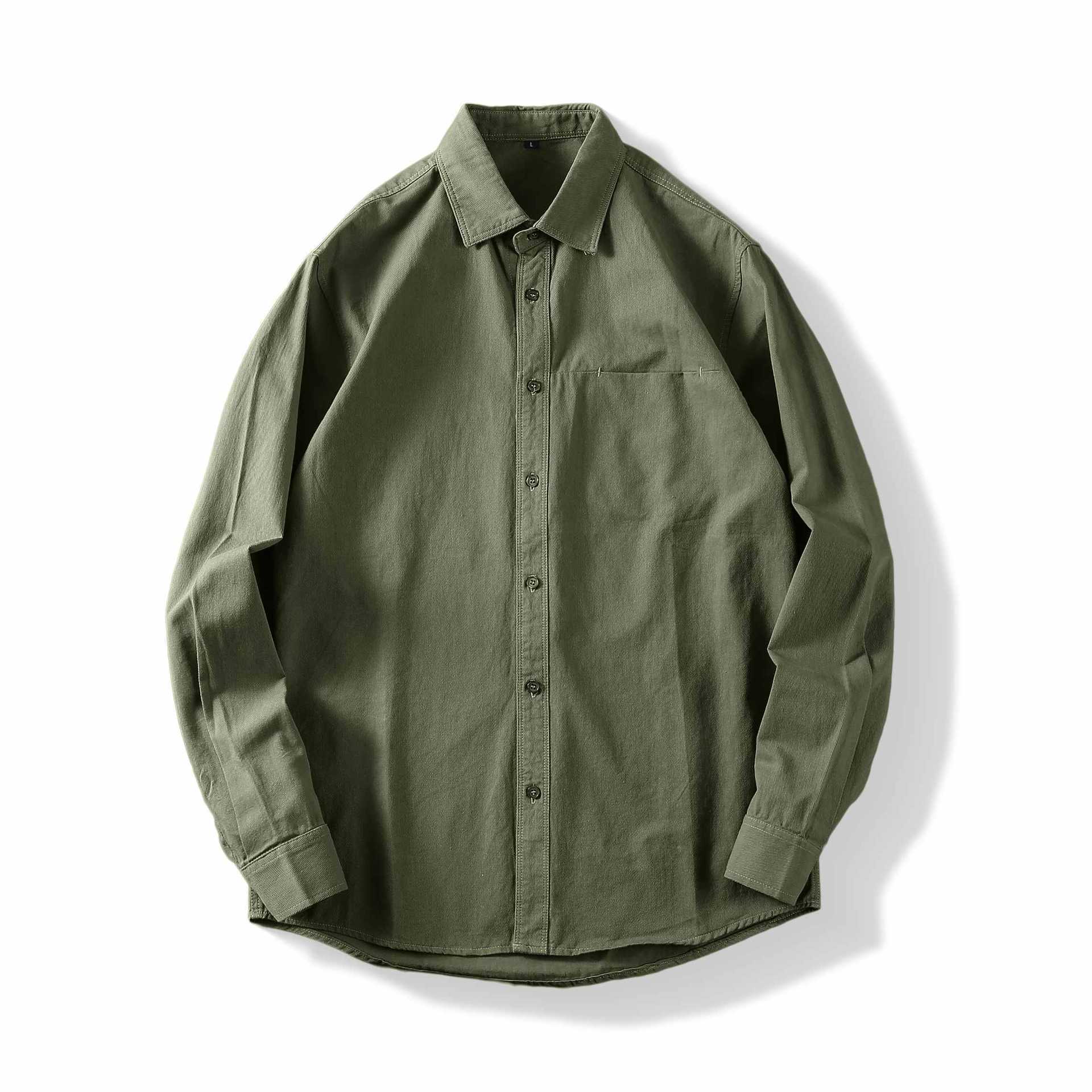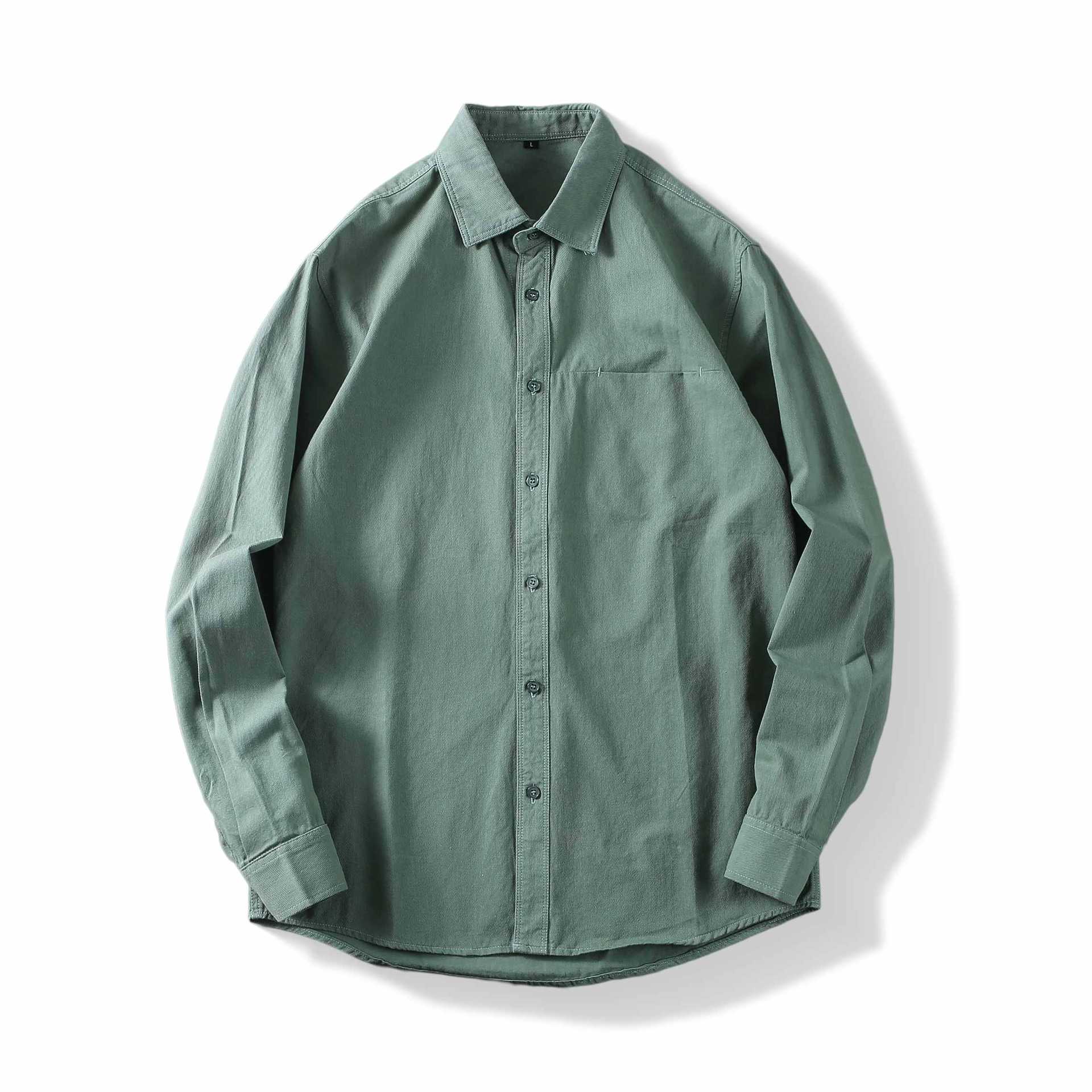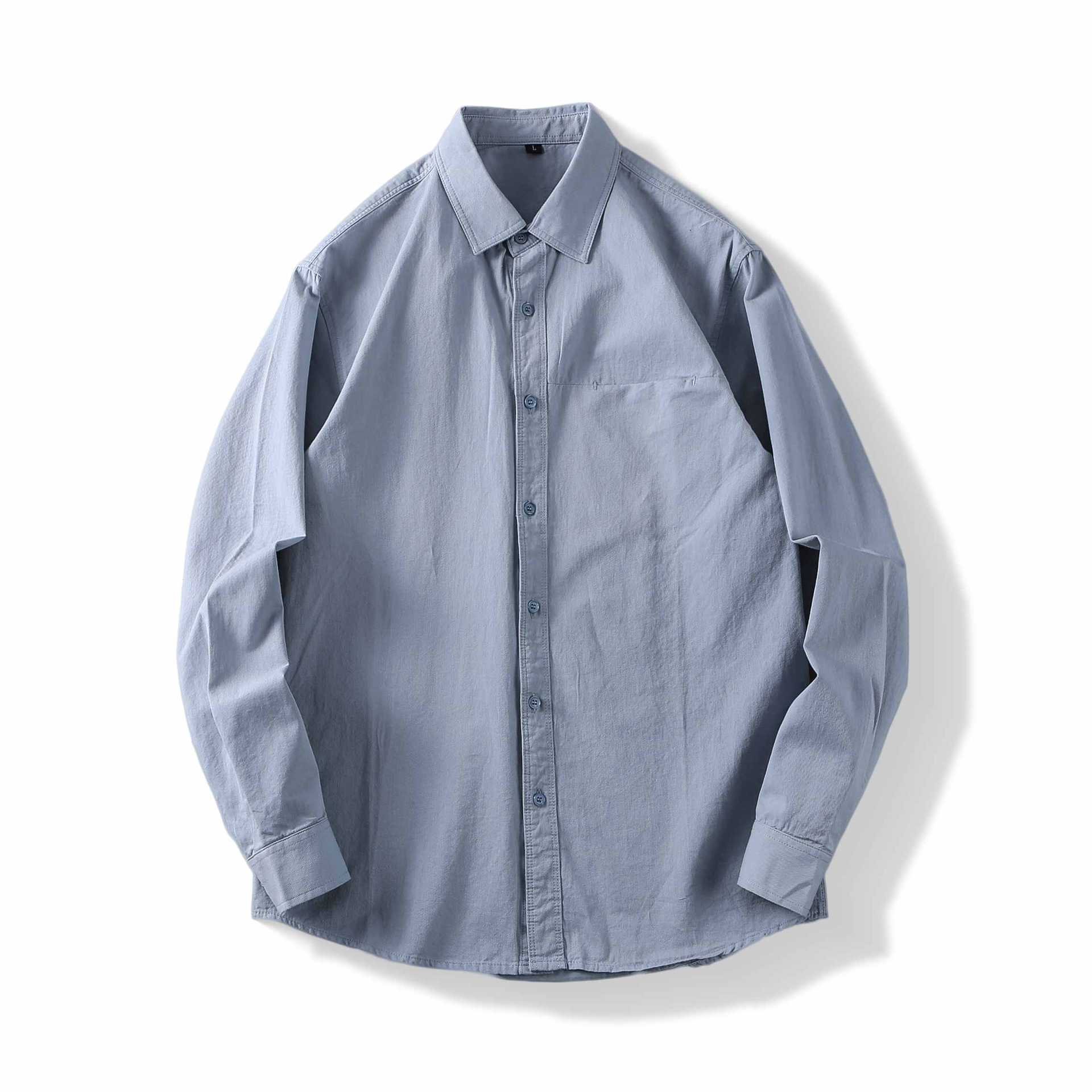 헤비 코튼 아메리칸 스타일 긴팔 셔츠 남자 사계절 하이 엔드 센스 캐주얼 솔리드 컬러 화이트 옷깃 셔츠 최고 트렌디스토어 가기