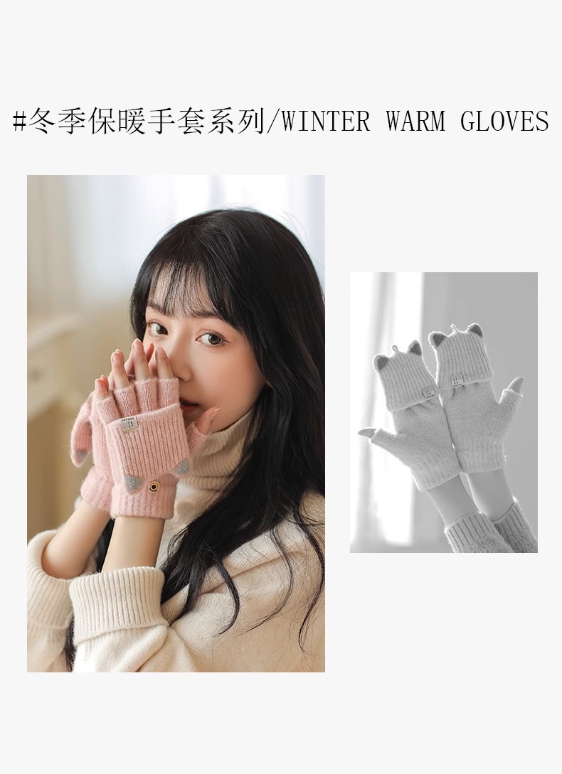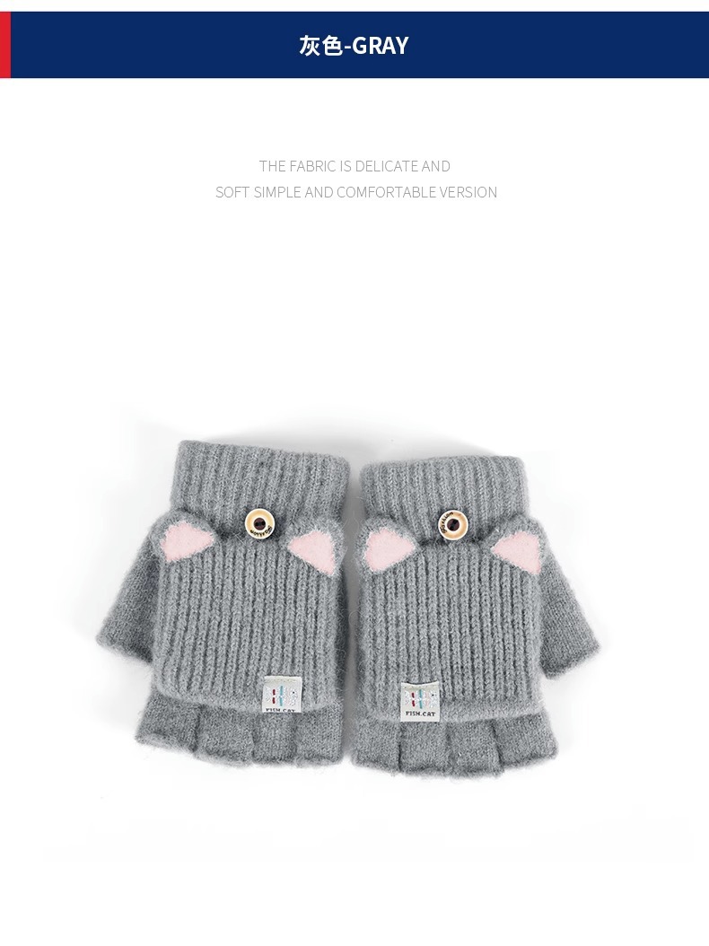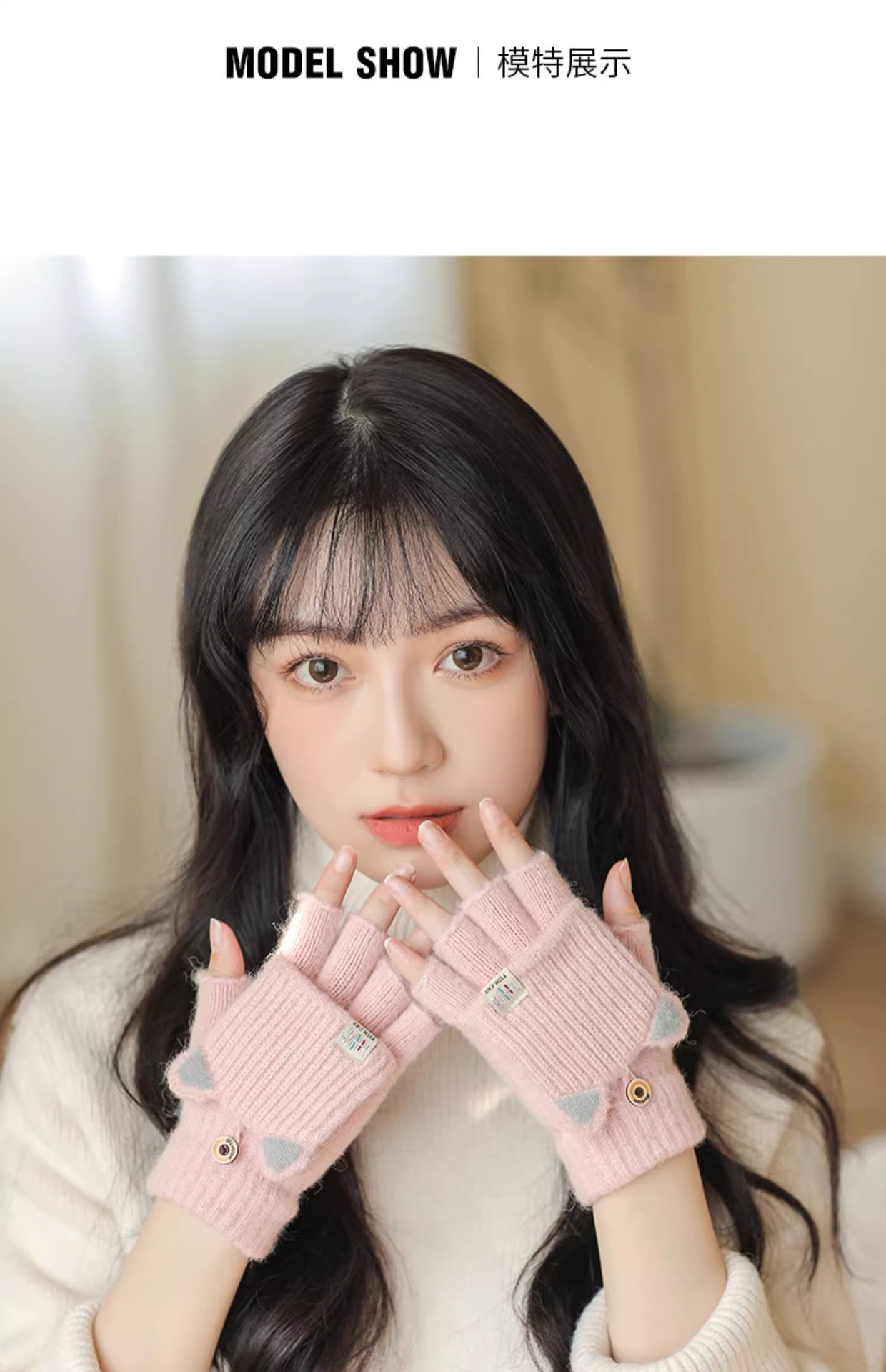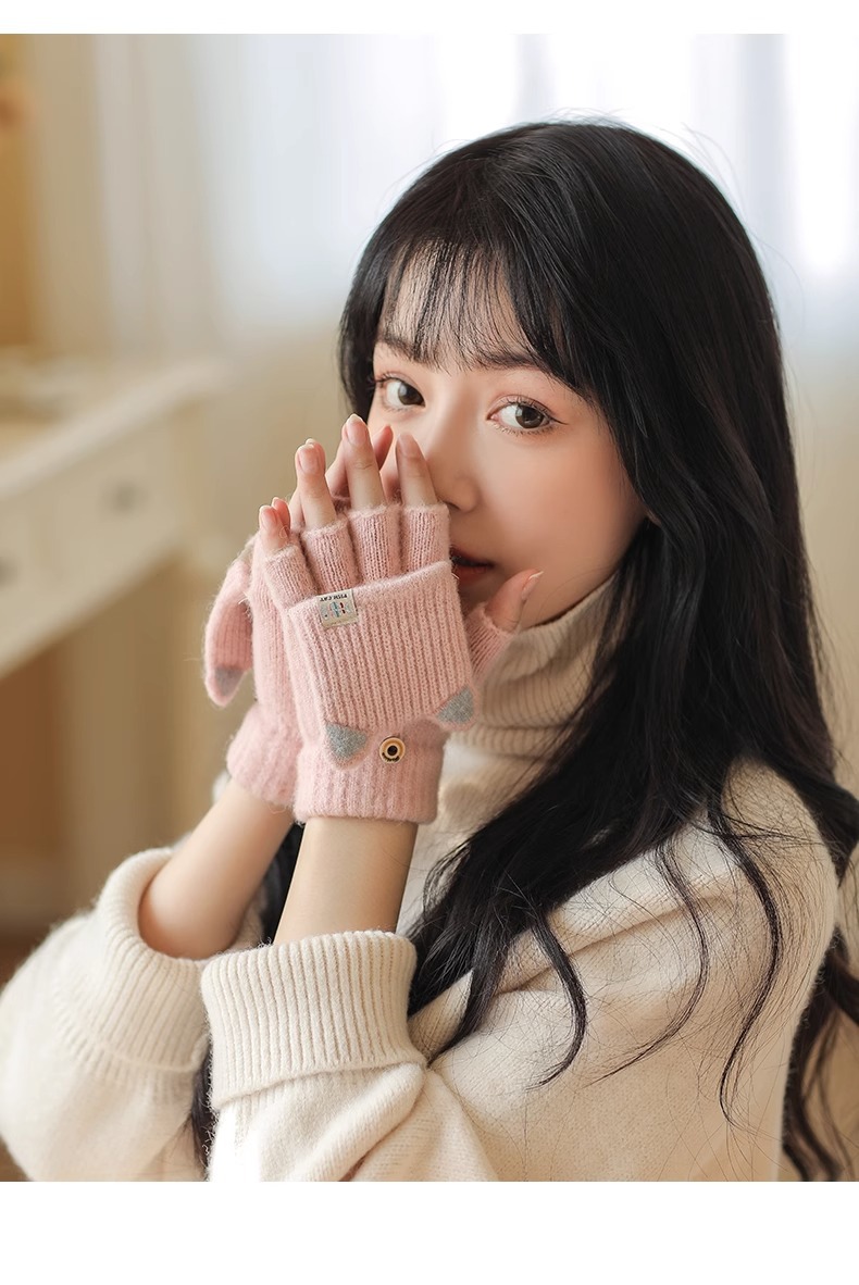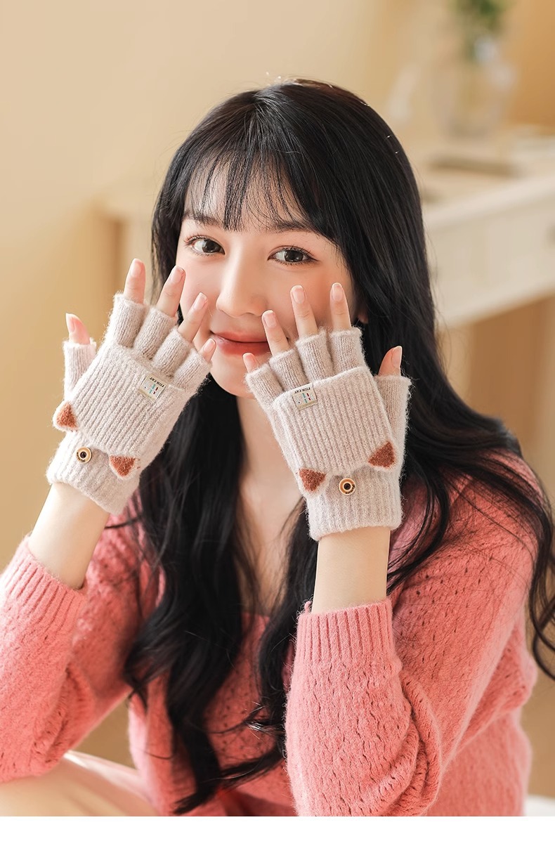 양모 장갑 여성의 가을과 겨울 학생 쓰기 니트 따뜻한 플립 커버 반 손가락 장갑 겨울 야외 여성
