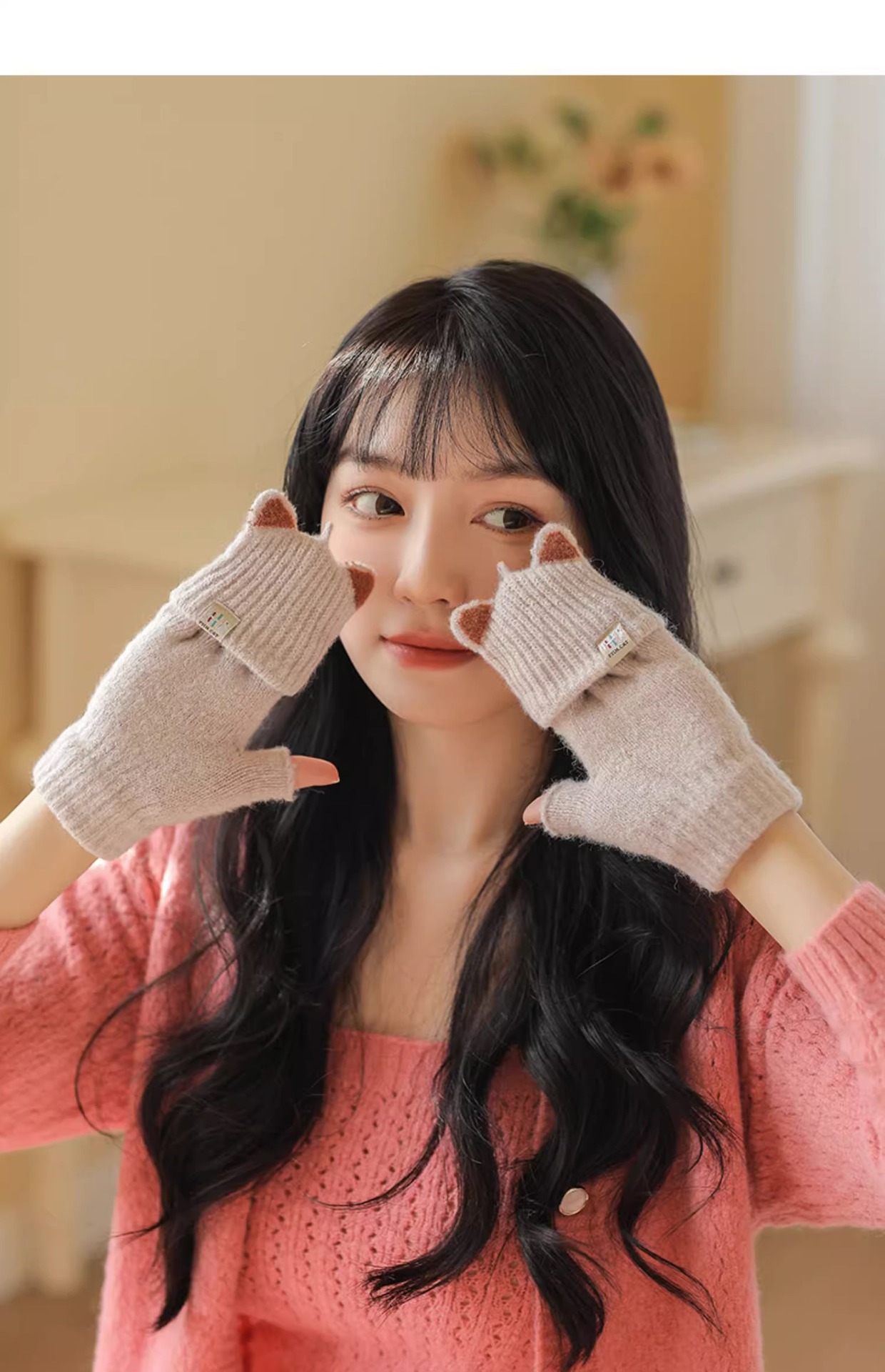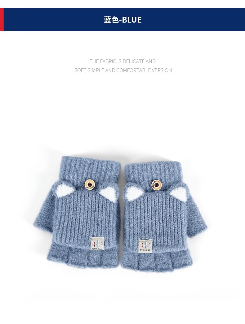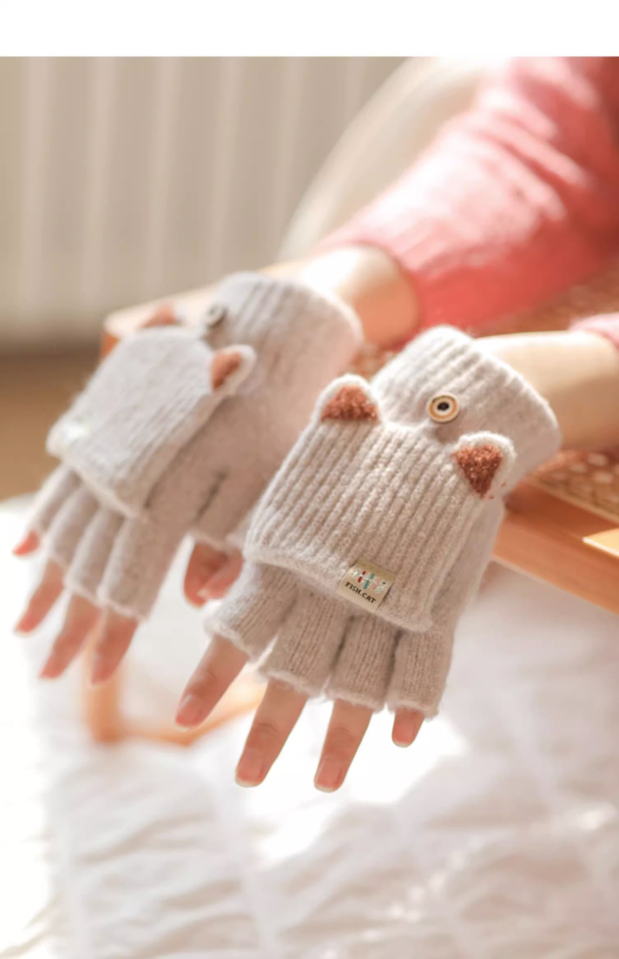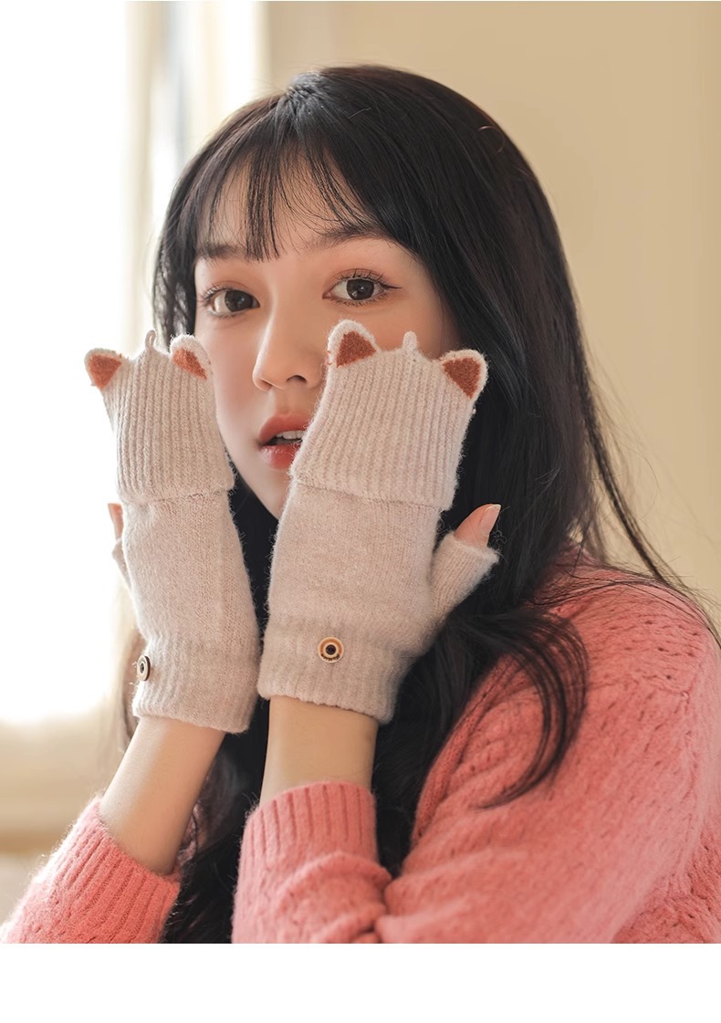 양모 장갑 여성의 가을과 겨울 학생 쓰기 니트 따뜻한 플립 커버 반 손가락 장갑 겨울 야외 여성