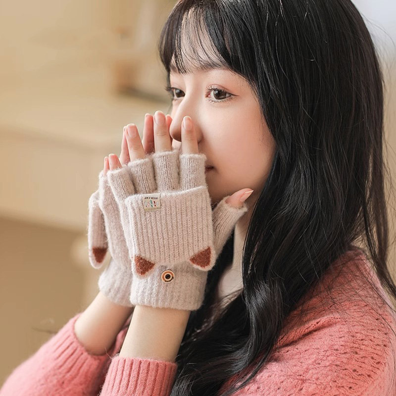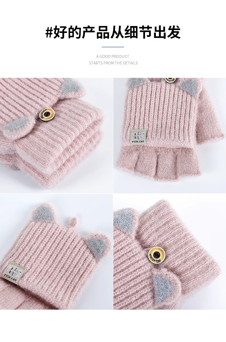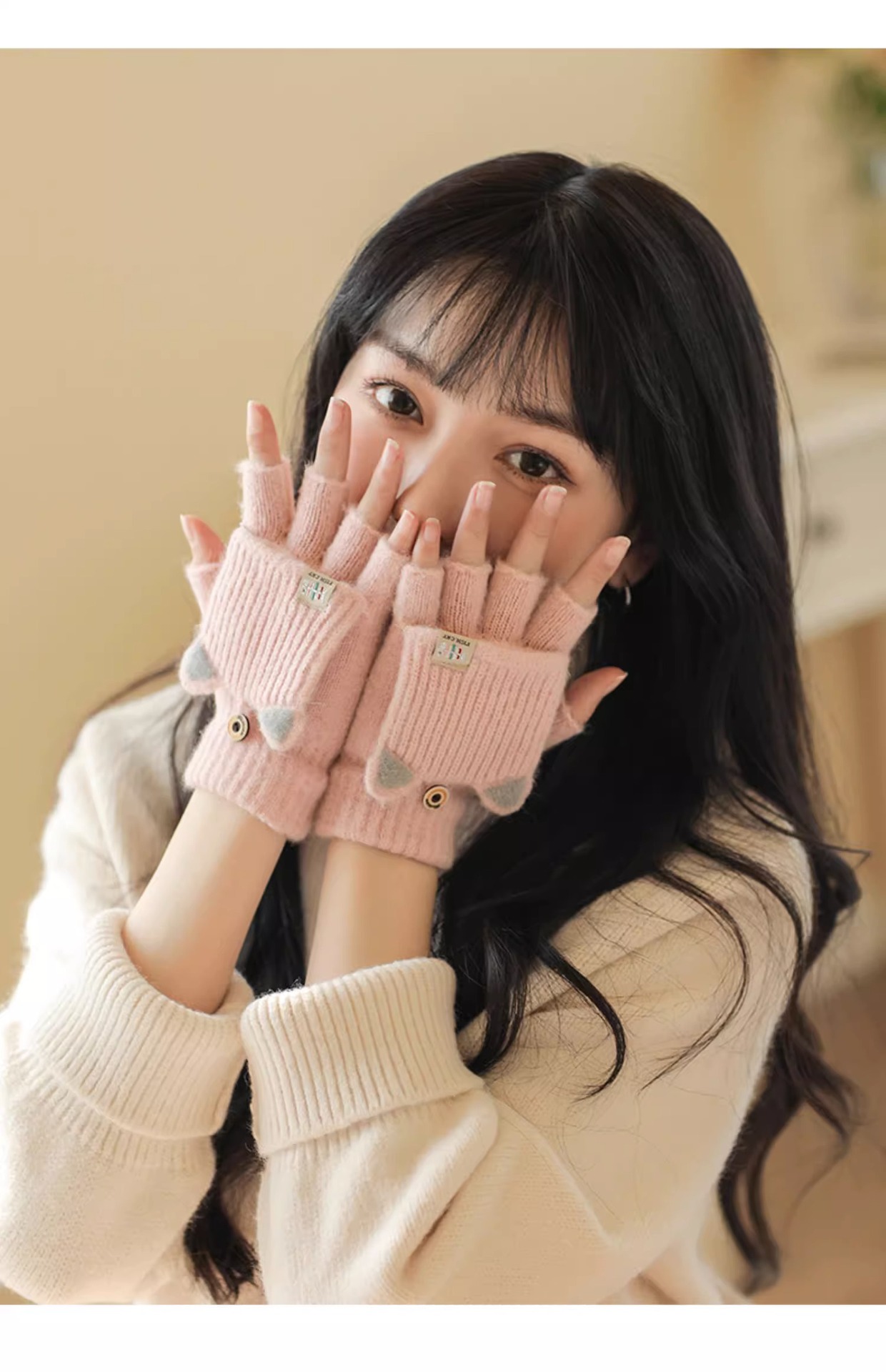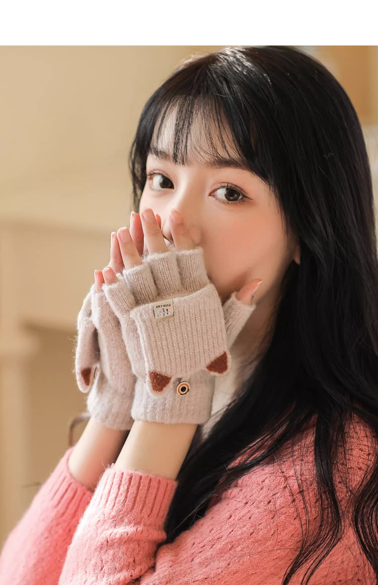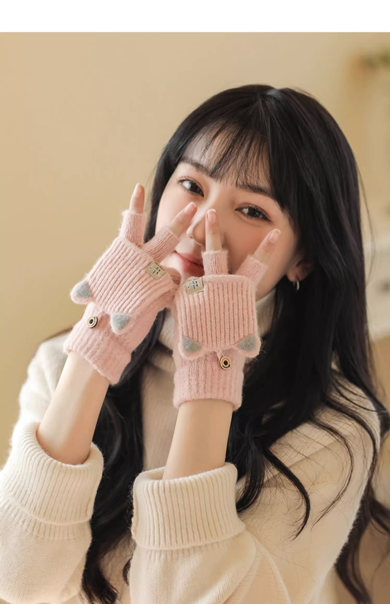 양모 장갑 여성의 가을과 겨울 학생 쓰기 니트 따뜻한 플립 커버 반 손가락 장갑 겨울 야외 여성