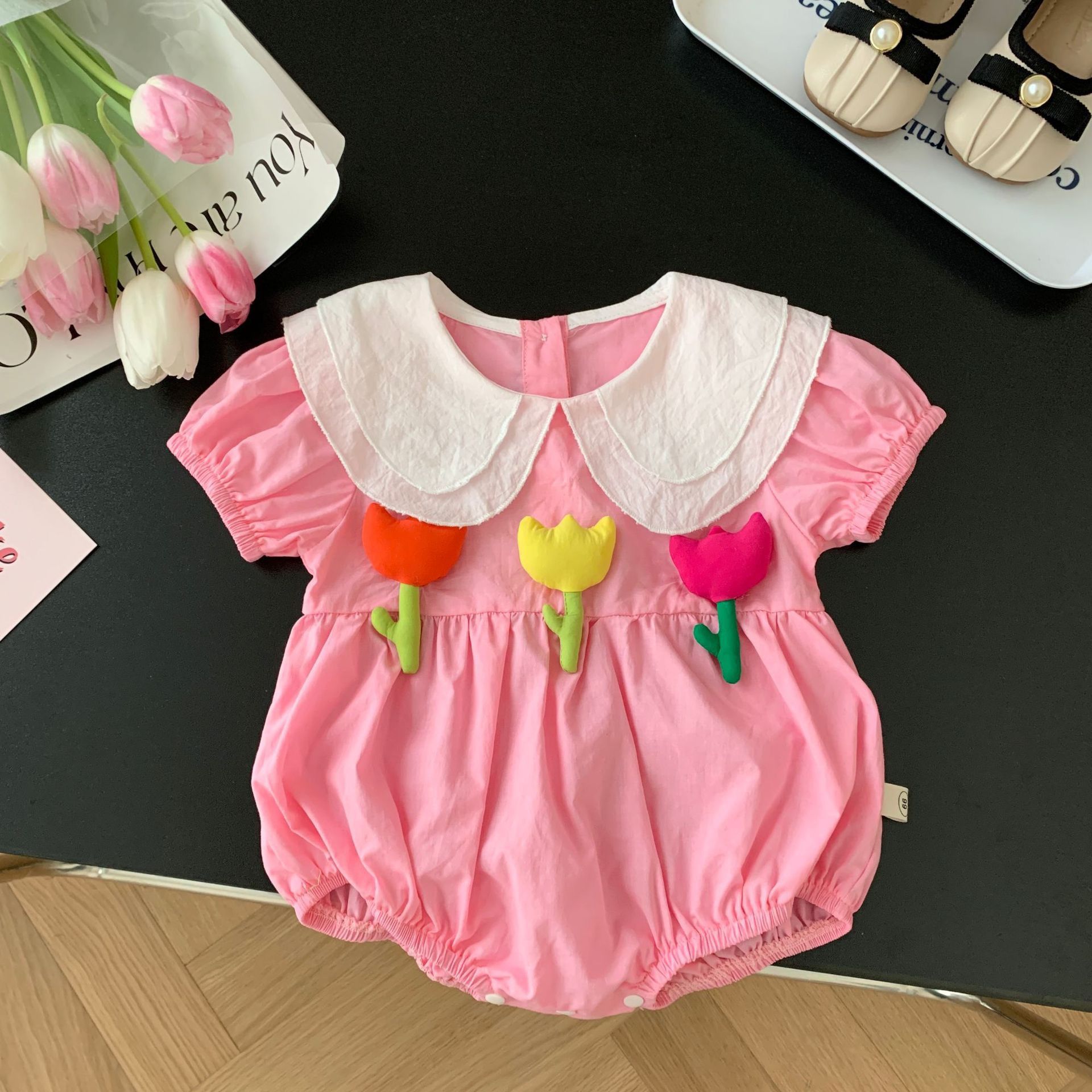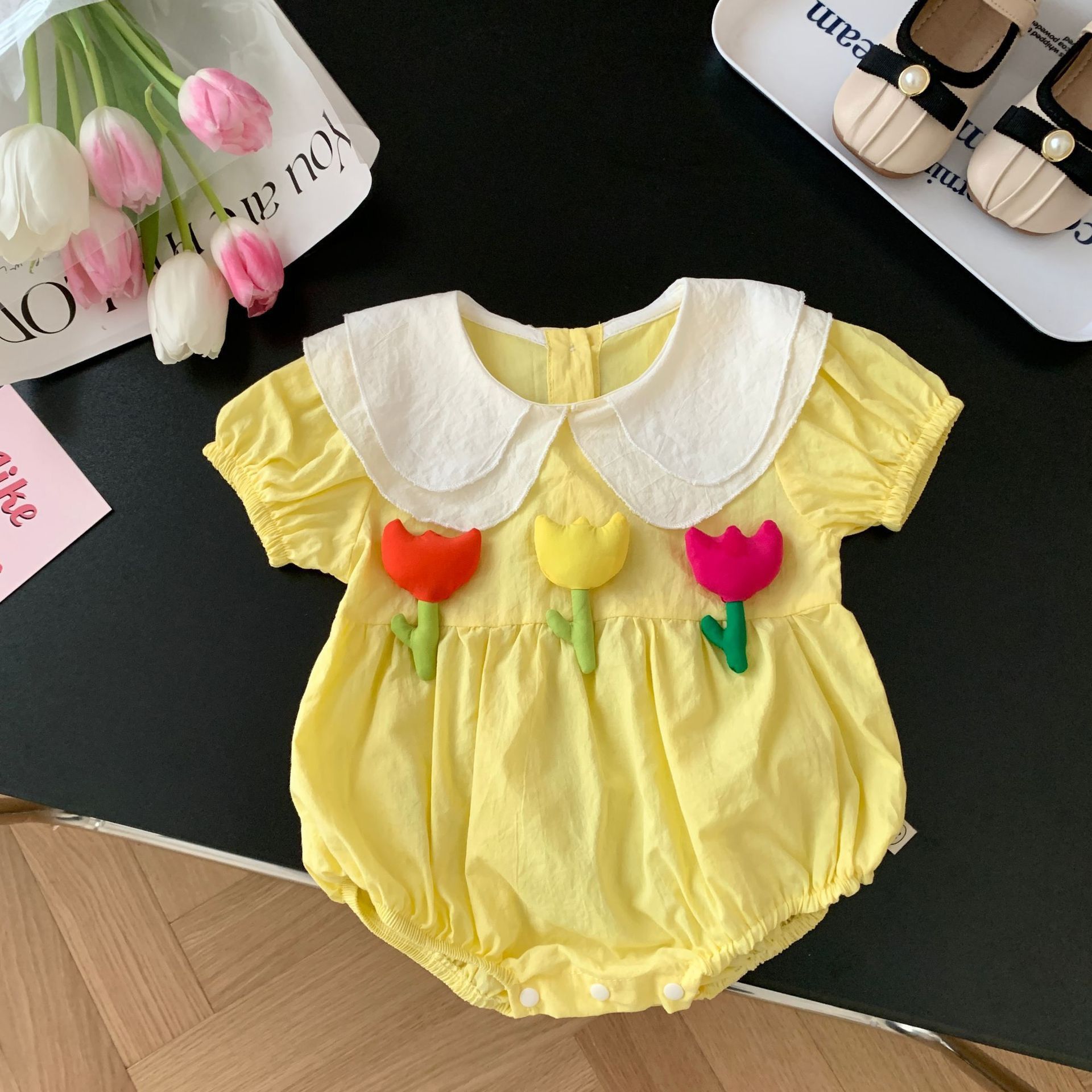 아기 꽃 랩 방귀 옷 0-2 세 여름 아기 소녀 인형 목걸이 한국 명암 등반 원피스 1 년 된 새 원피스스토어 가기