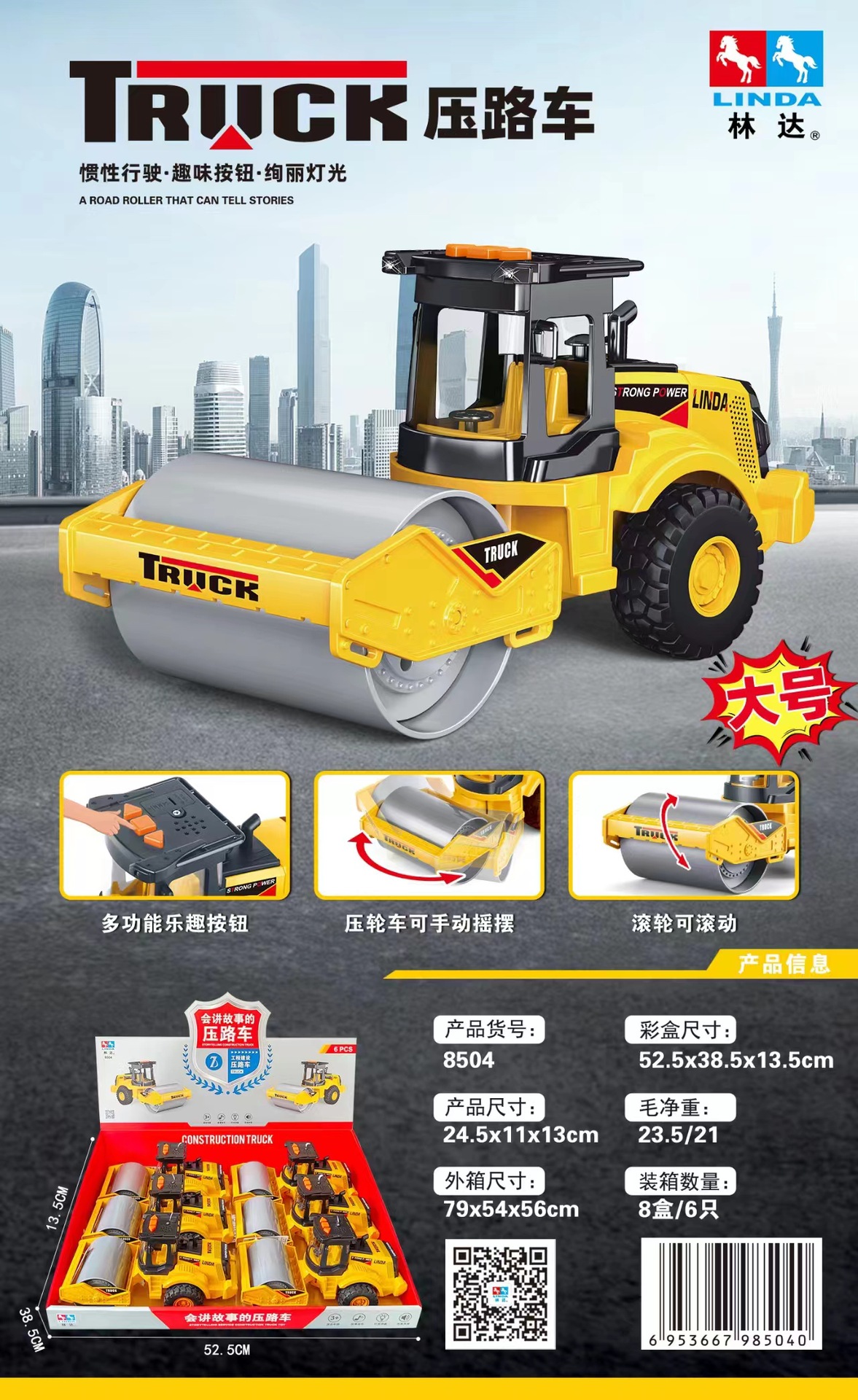 린다 신제품 디스플레이 박스 관성 엔지니어링 차량 비행 차량 롤러 시뮬레이션 서비스 차량 모델 어린이 놀이스토어 가기