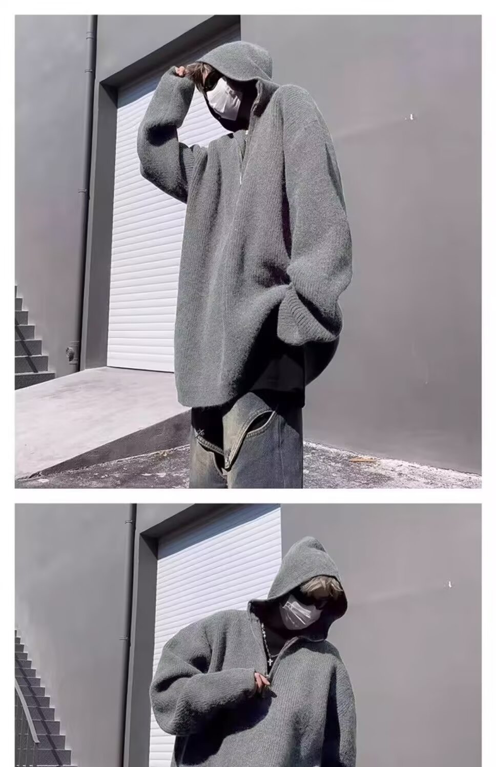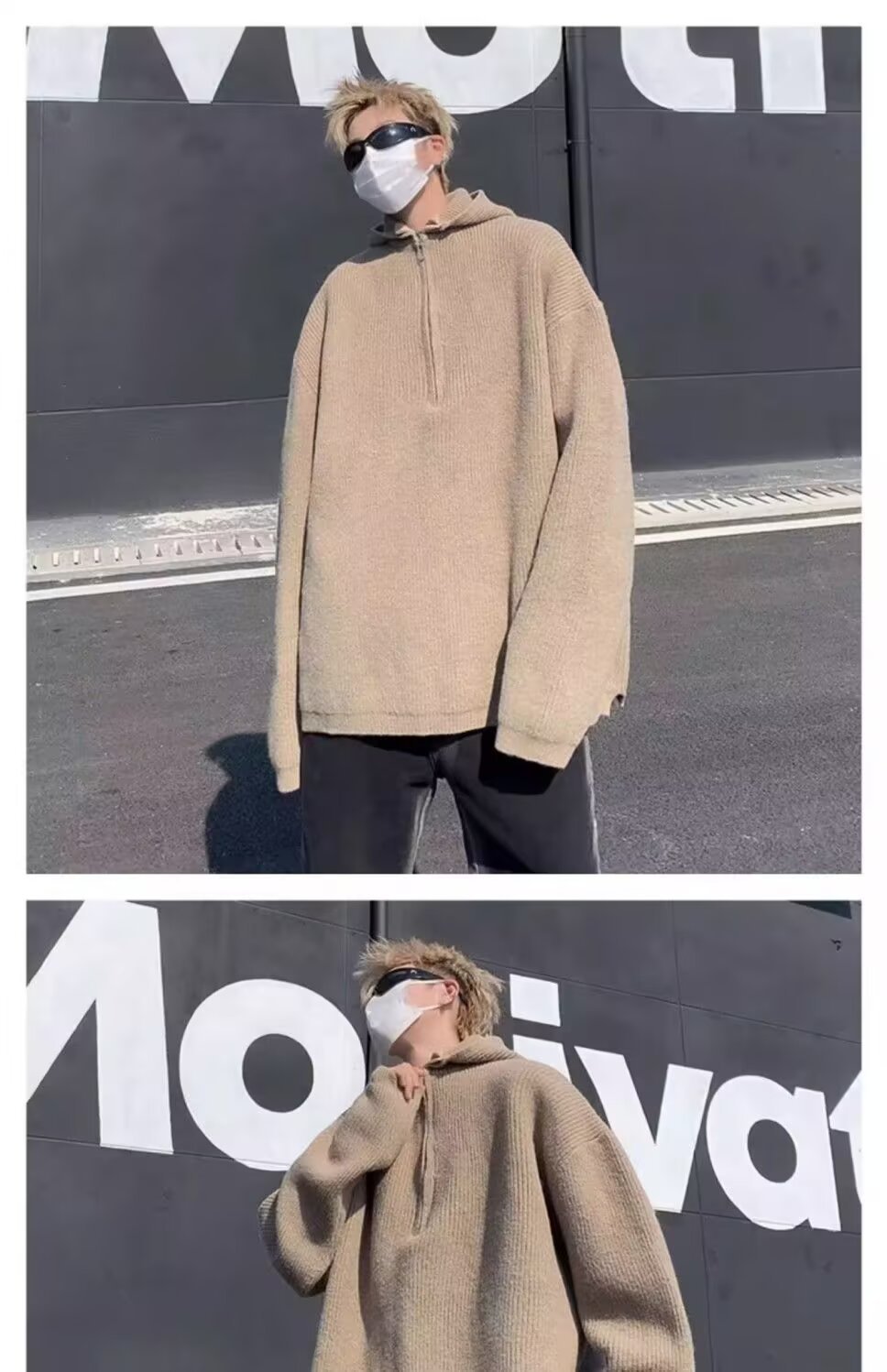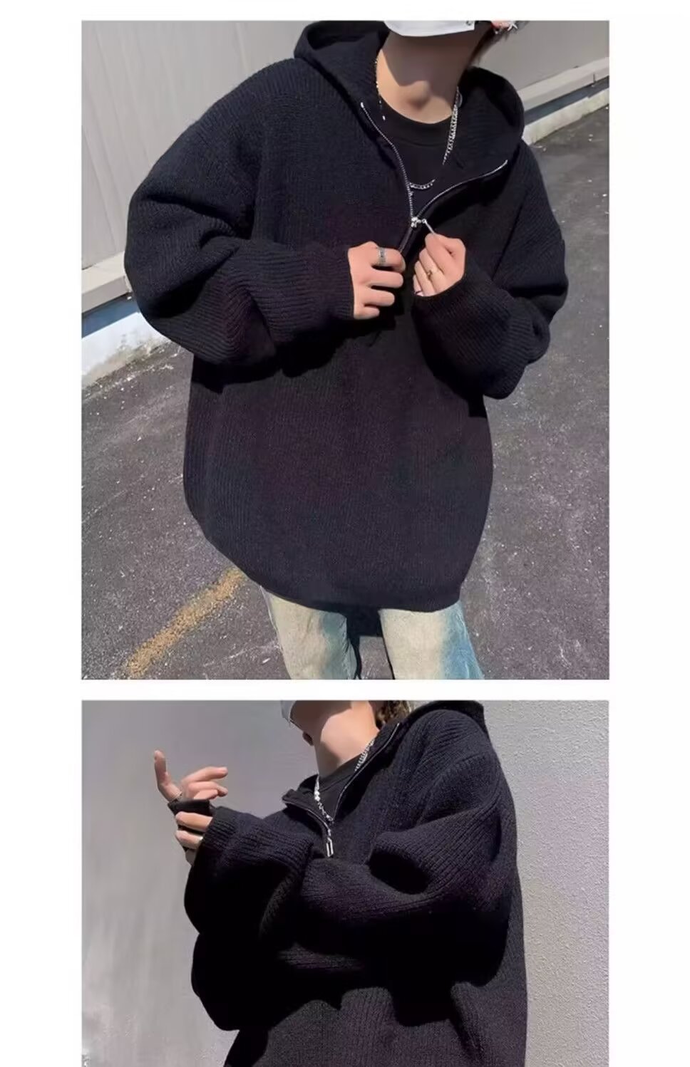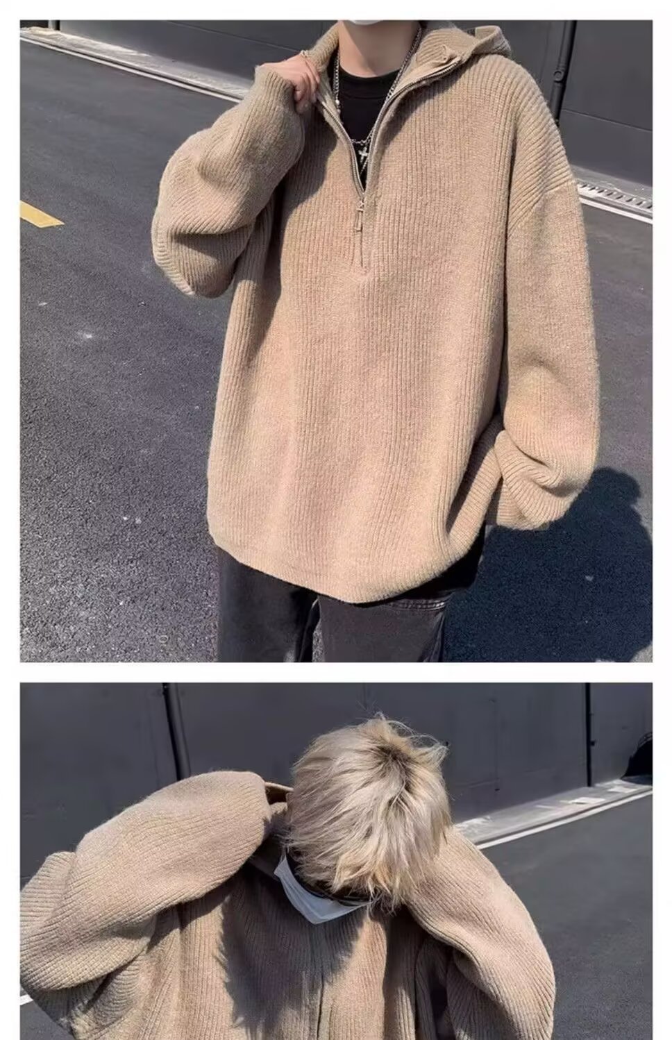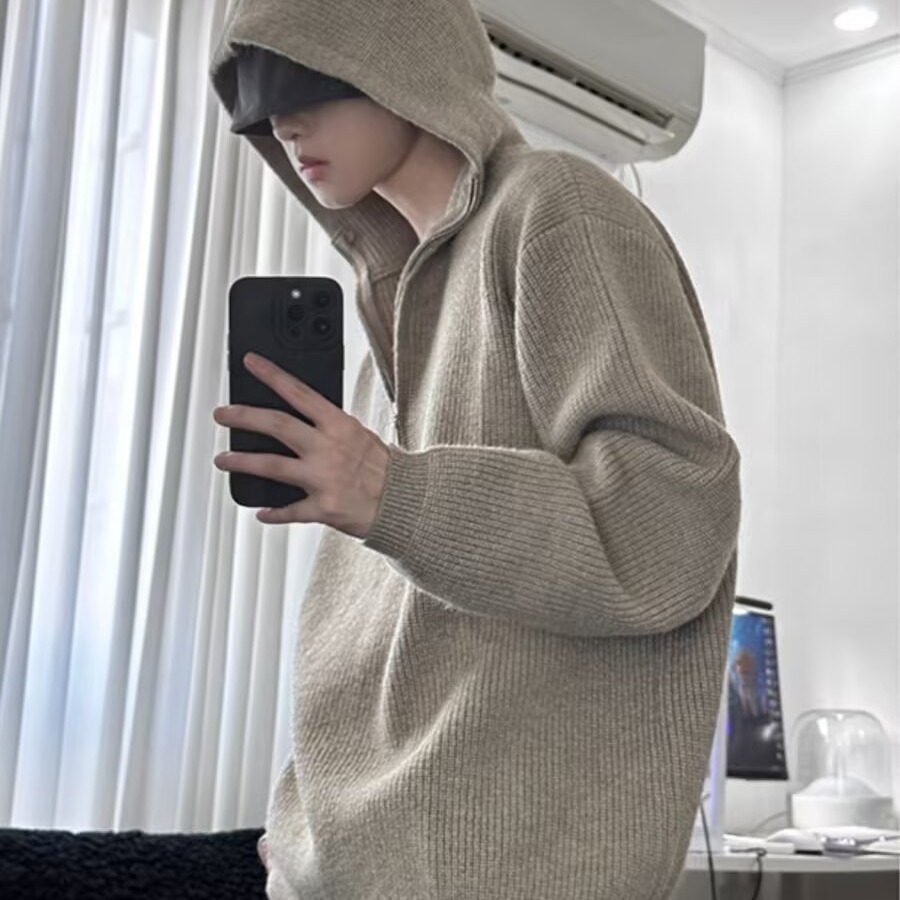 하프 지퍼 후드 스웨터 남자의 가을과 겨울 트렌디 브랜드 느슨한 게으른 스타일 니트웨어 아메리칸 스타일 레트로 캐주얼 재킷스토어 가기