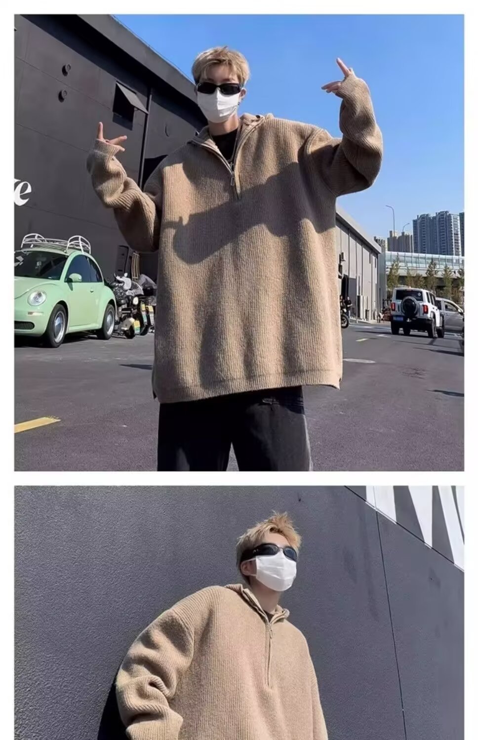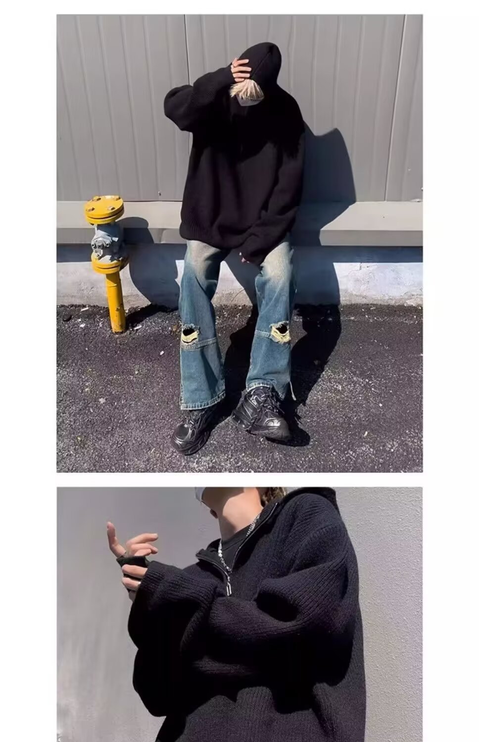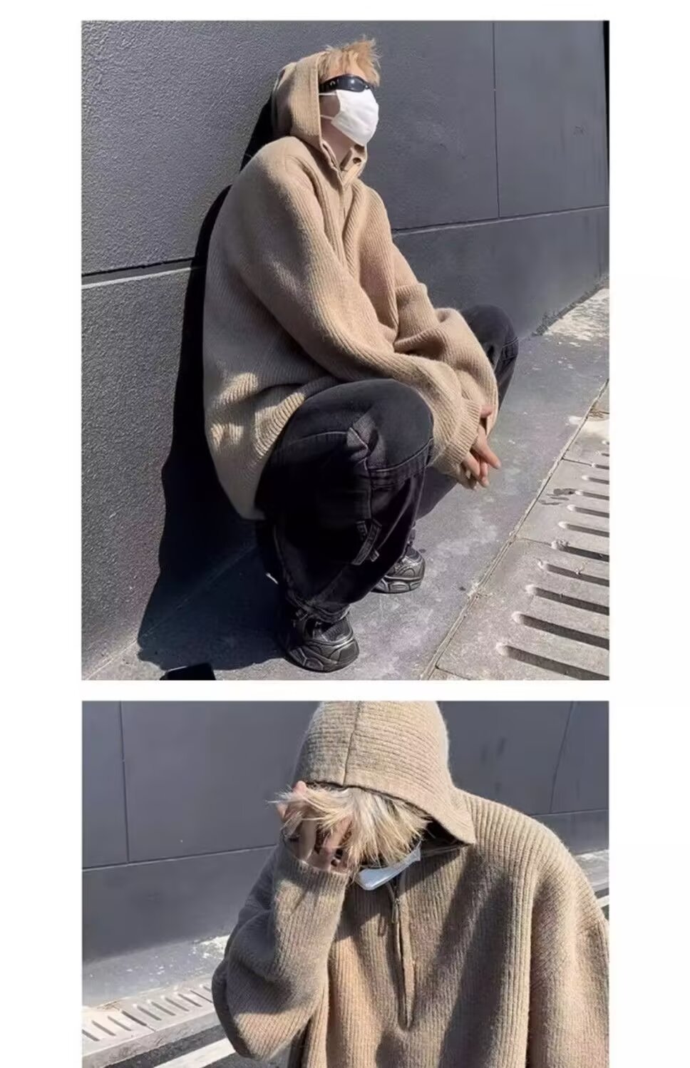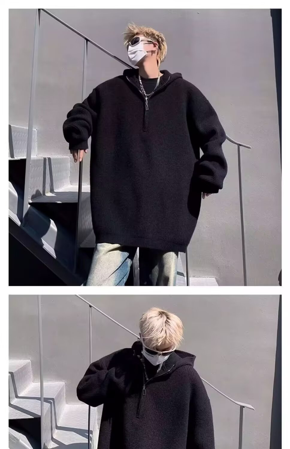 하프 지퍼 후드 스웨터 남자의 가을과 겨울 트렌디 브랜드 느슨한 게으른 스타일 니트웨어 아메리칸 스타일 레트로 캐주얼 재킷스토어 가기