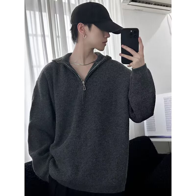 하프 지퍼 후드 스웨터 남자의 가을과 겨울 트렌디 브랜드 느슨한 게으른 스타일 니트웨어 아메리칸 스타일 레트로 캐주얼 재킷