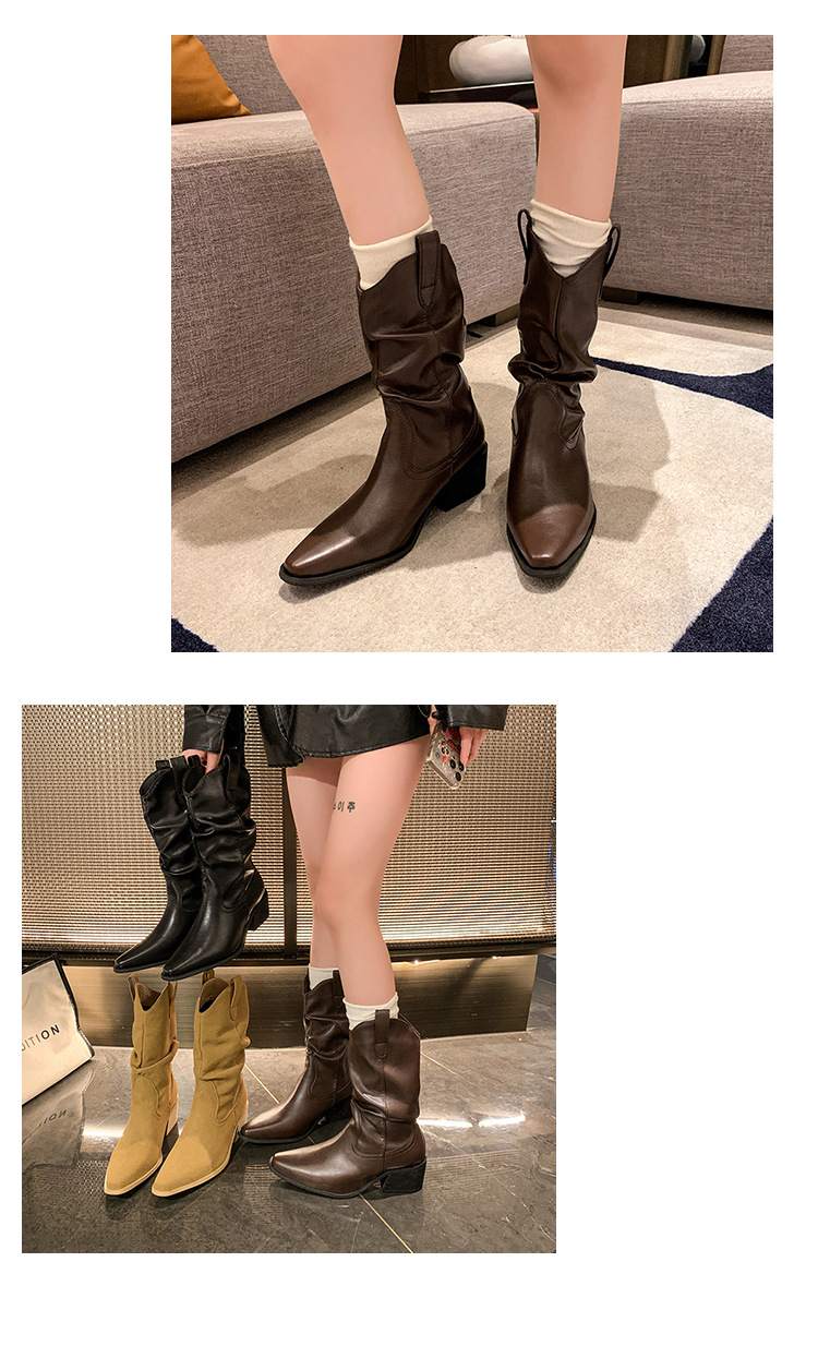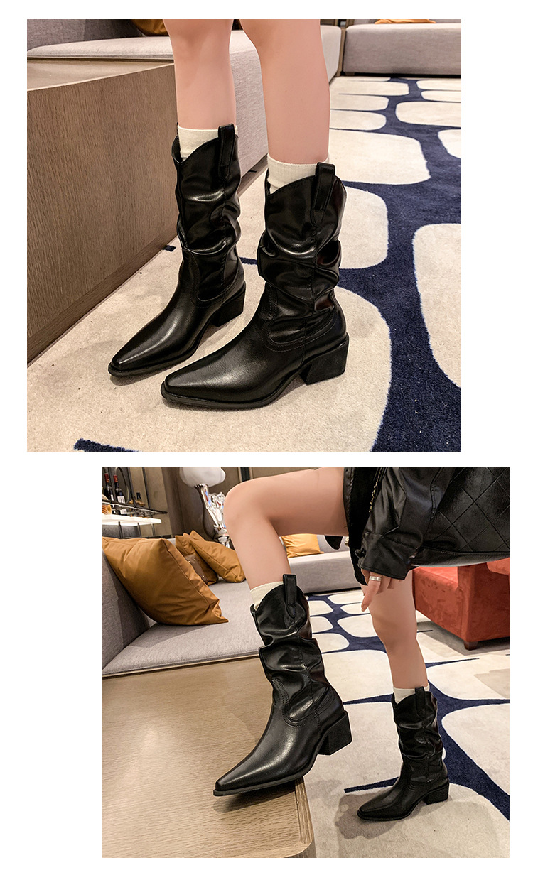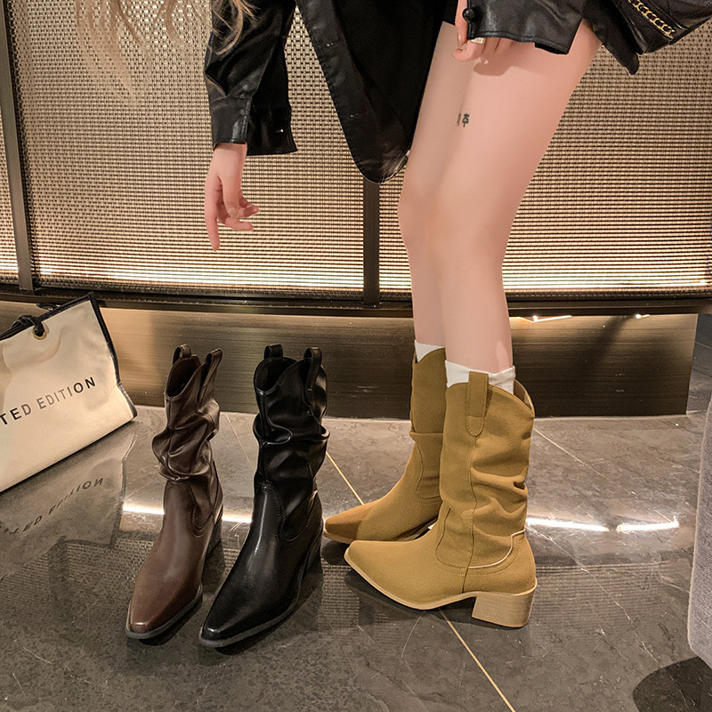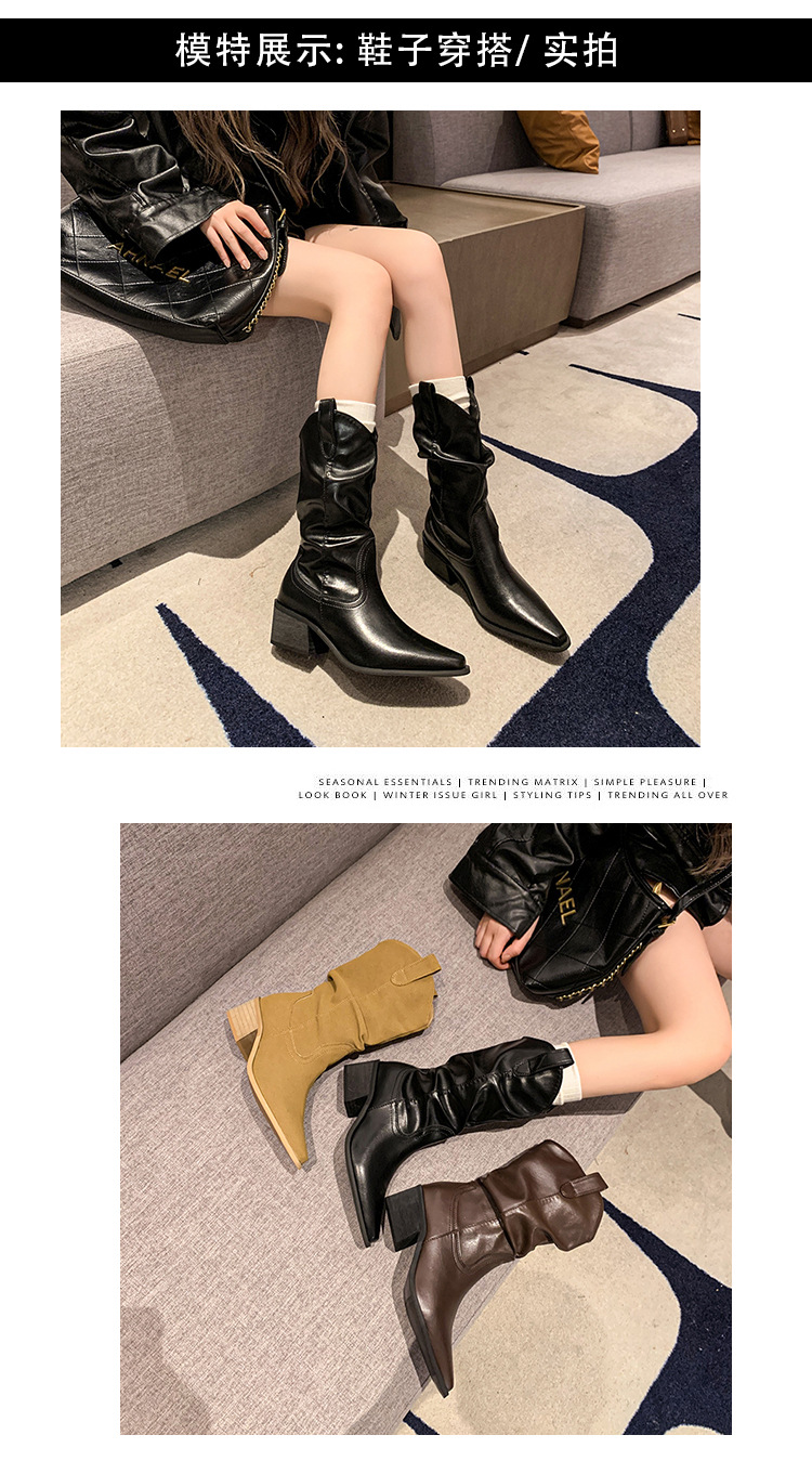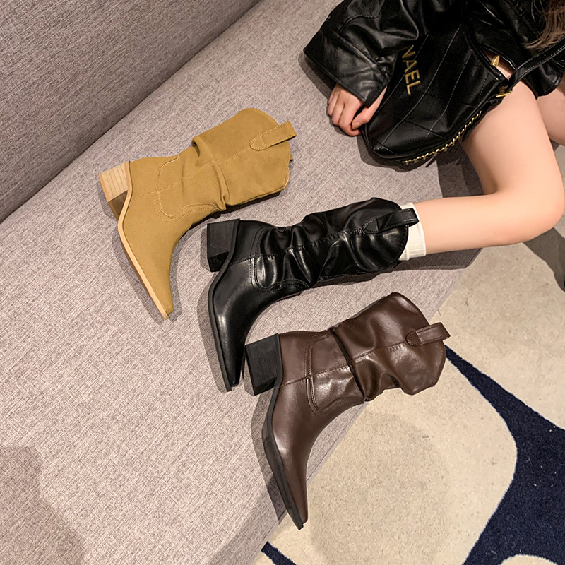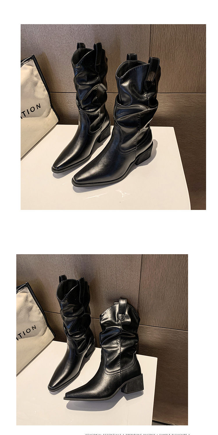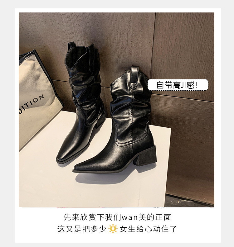 粗跟尖头马丁靴女2024秋冬新款气质褶皱堆堆靴西部短靴堆堆靴子女스토어 가기