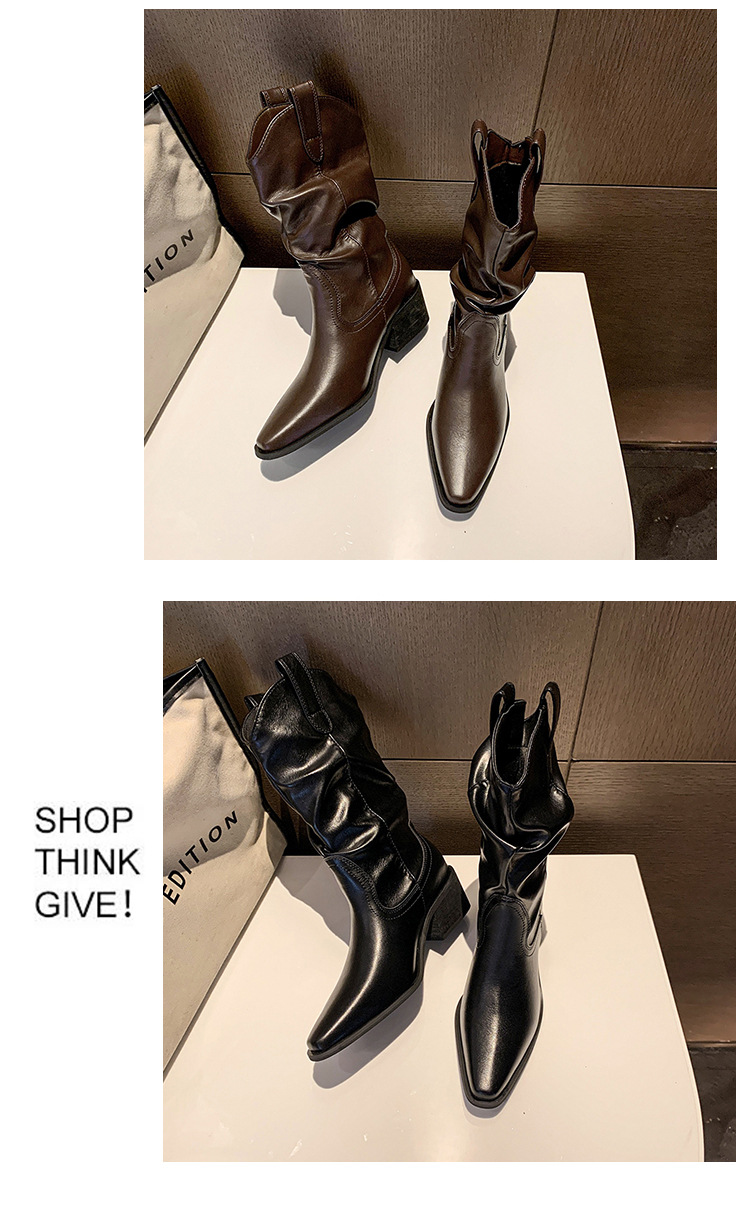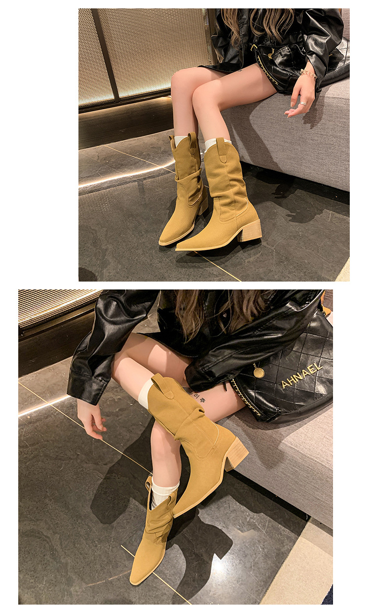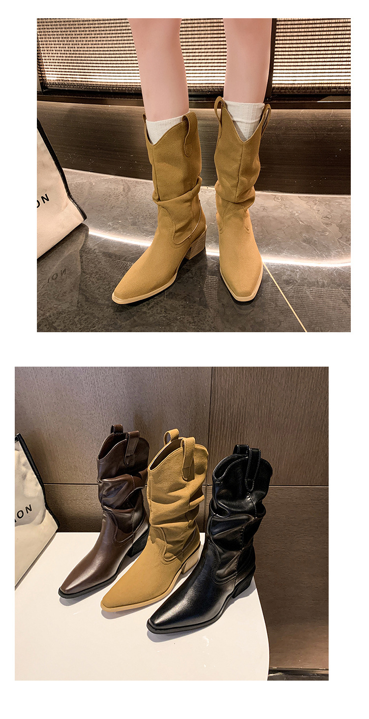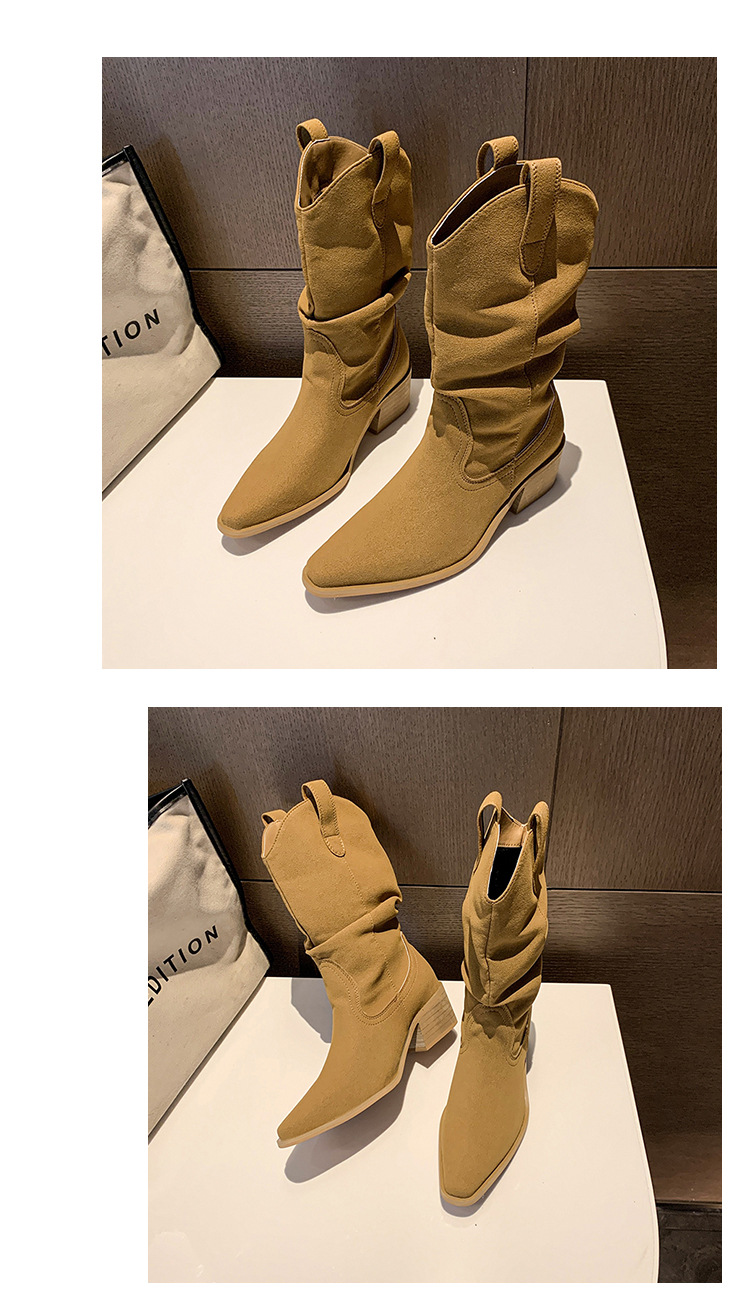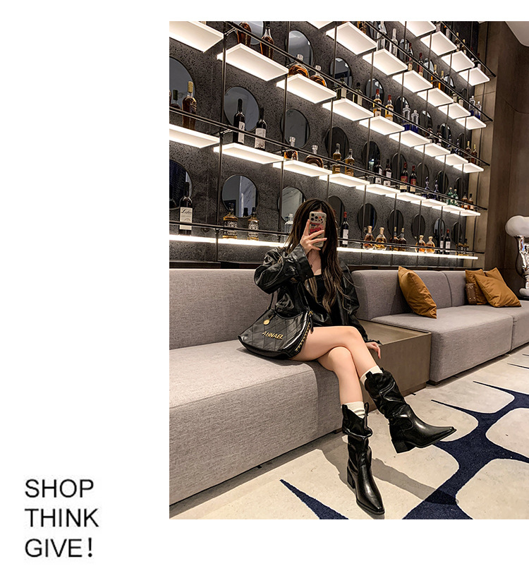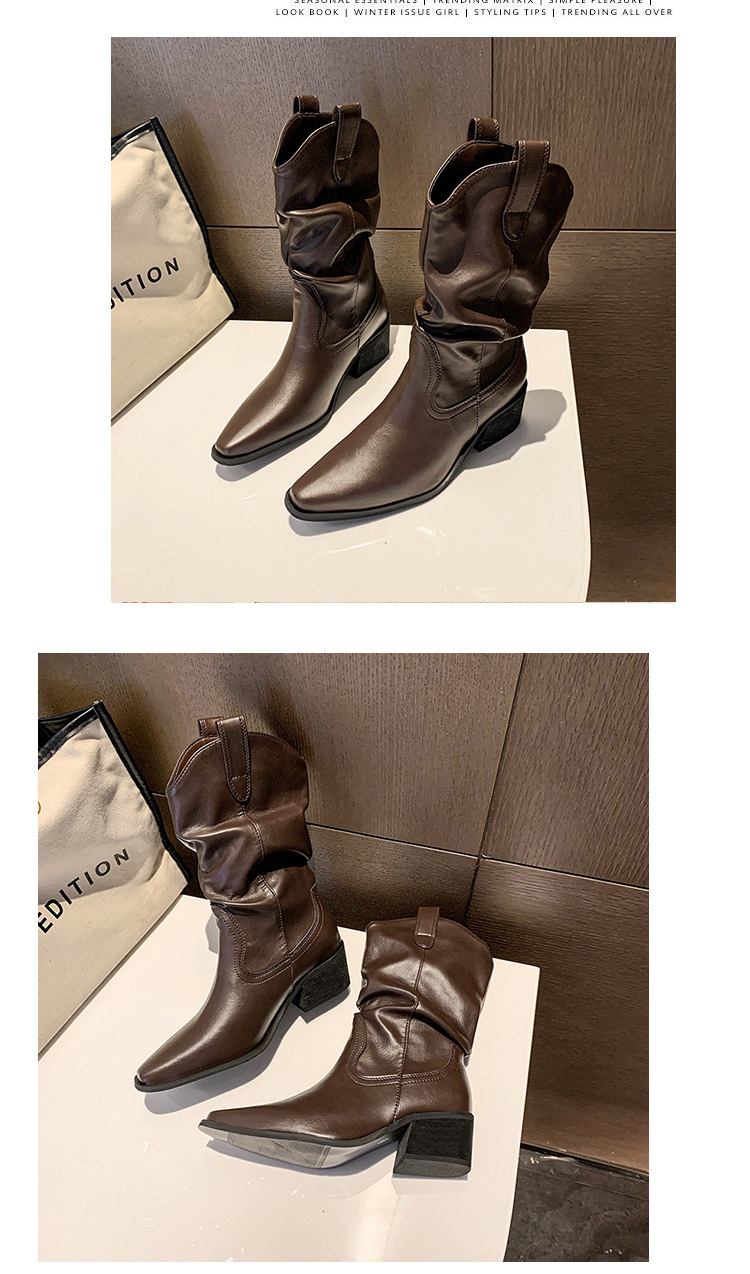 粗跟尖头马丁靴女2024秋冬新款气质褶皱堆堆靴西部短靴堆堆靴子女스토어 가기