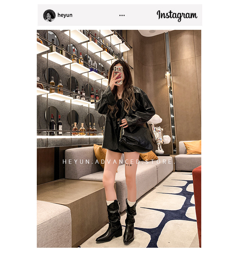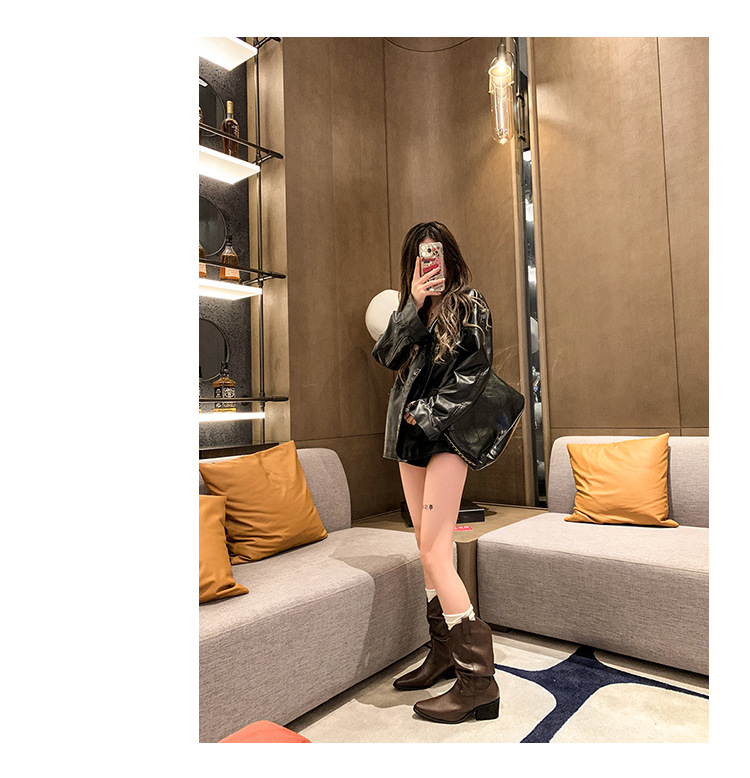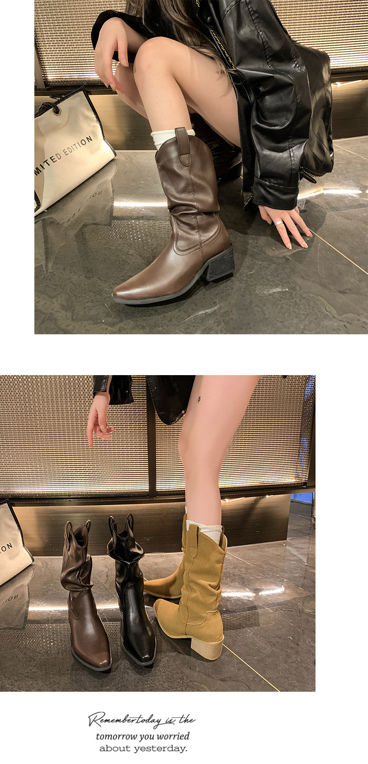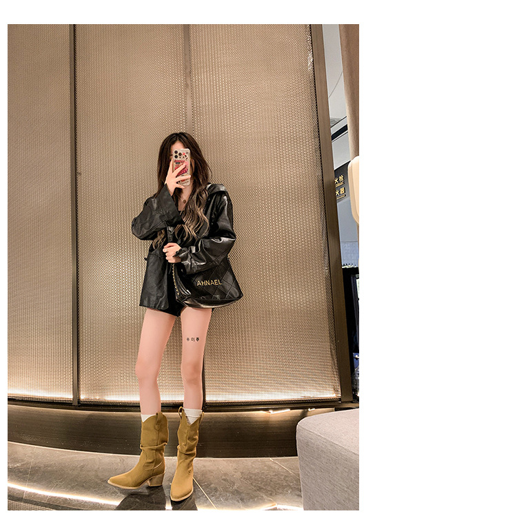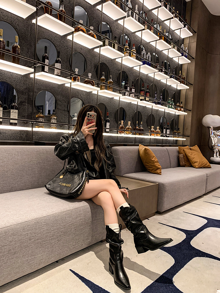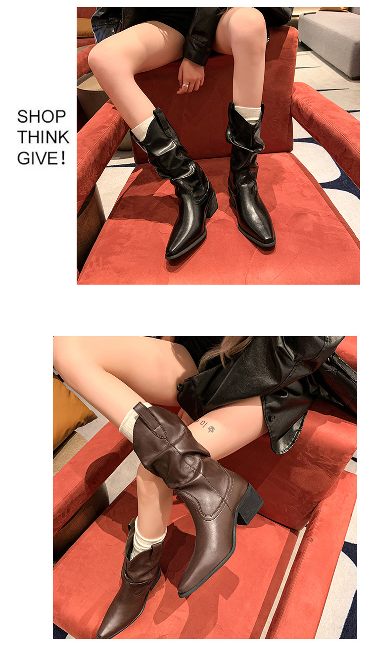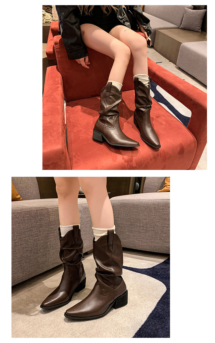 粗跟尖头马丁靴女2024秋冬新款气质褶皱堆堆靴西部短靴堆堆靴子女스토어 가기