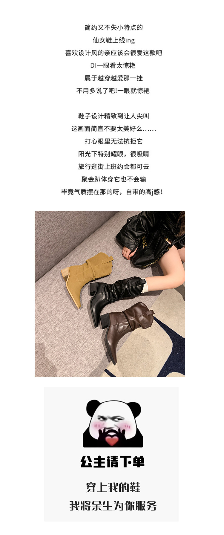 粗跟尖头马丁靴女2024秋冬新款气质褶皱堆堆靴西部短靴堆堆靴子女