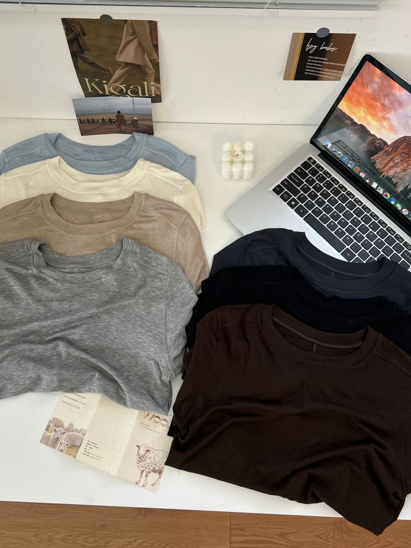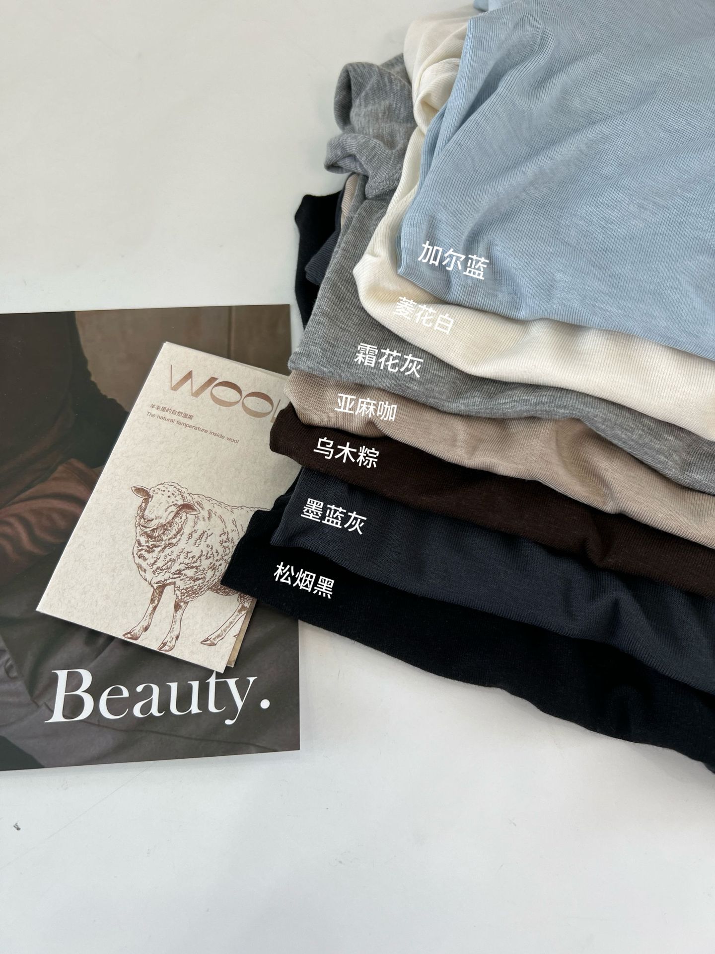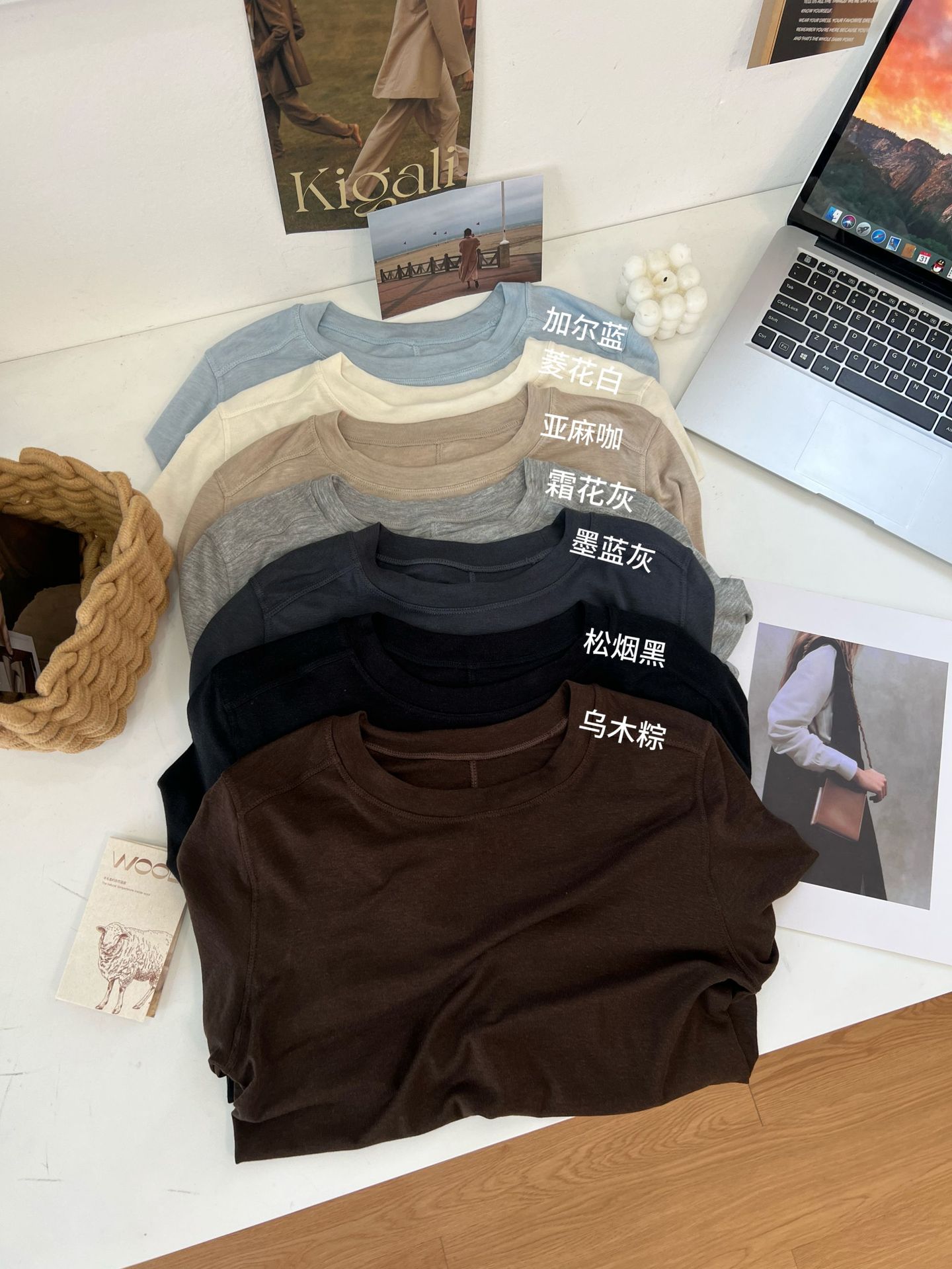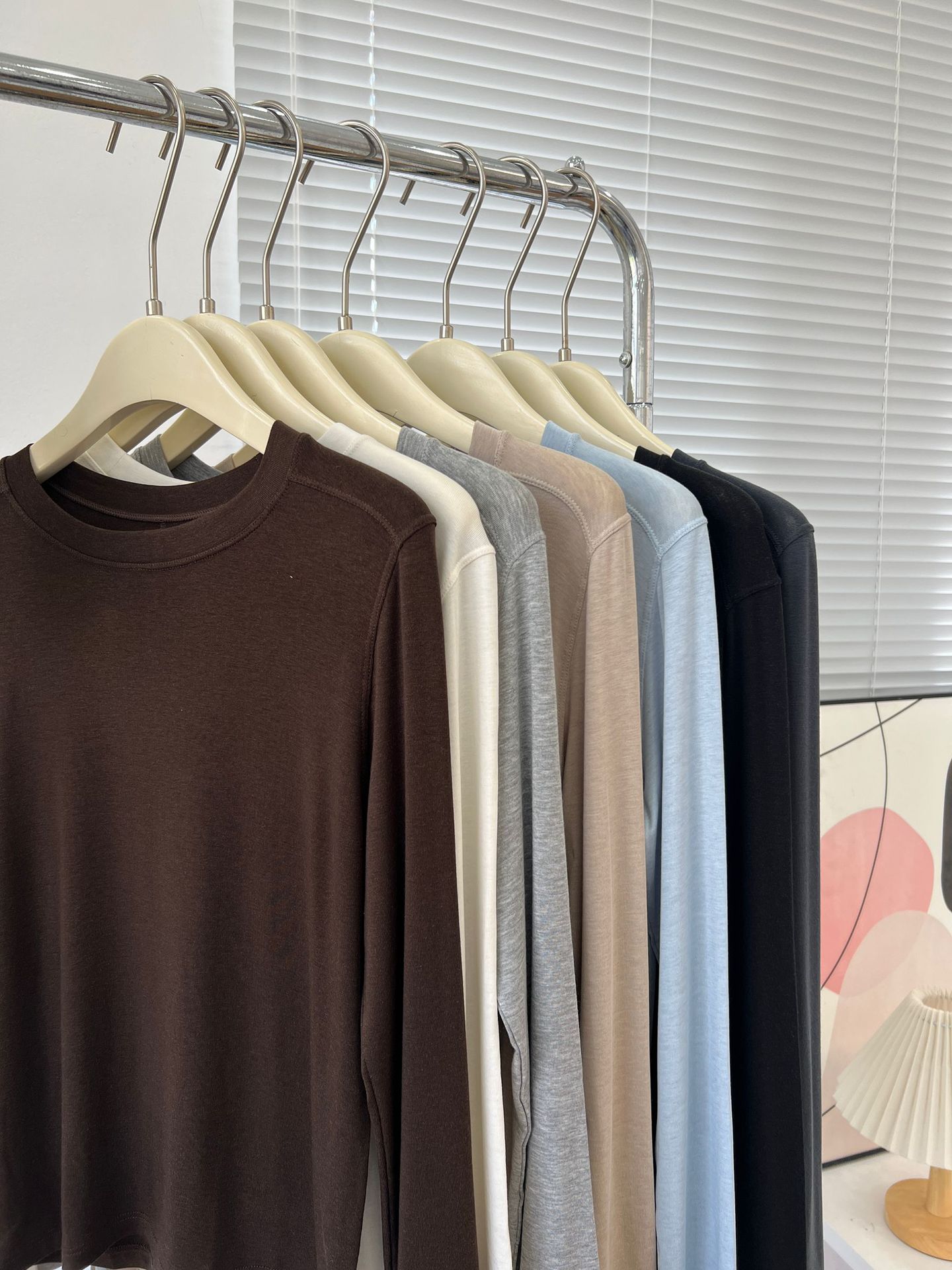 Lyocell 아세테이트 양모 원단베이스 셔츠 작은 둥근 목 긴 소매 여성의 단색 한국 스타일의 내부와 외부 착용 작은 티셔츠스토어 가기