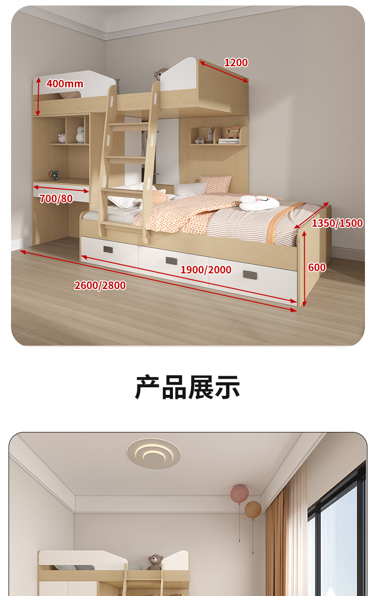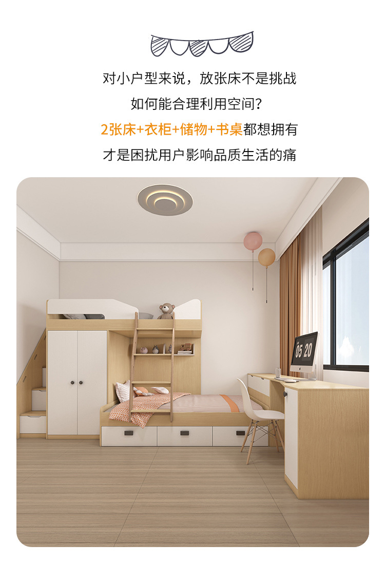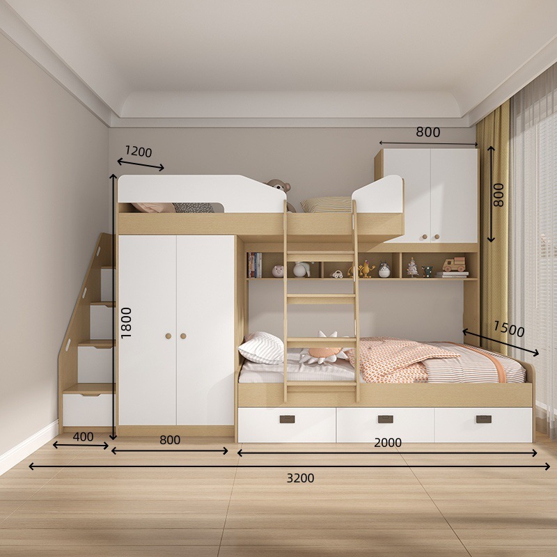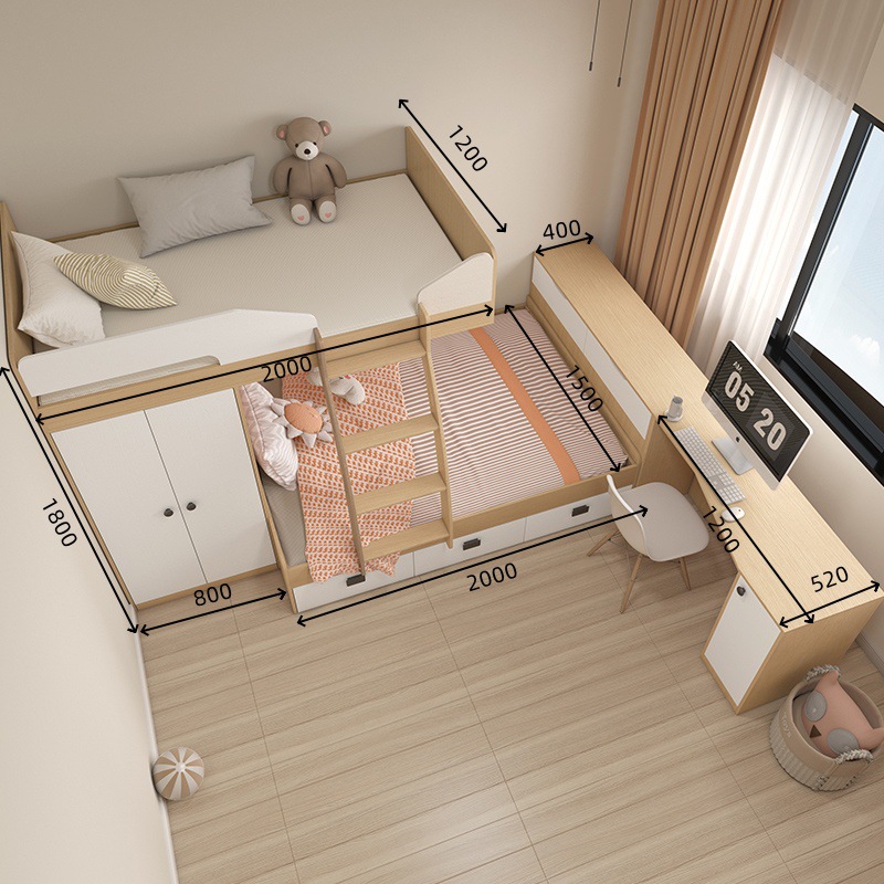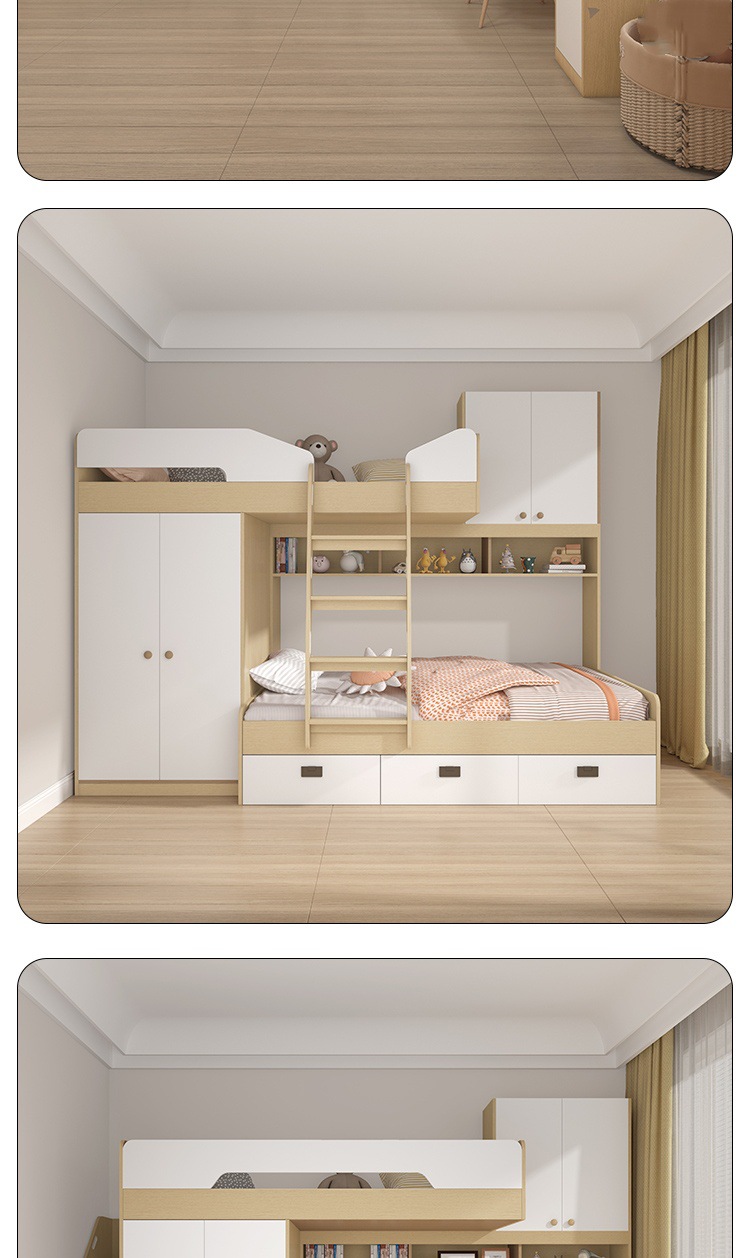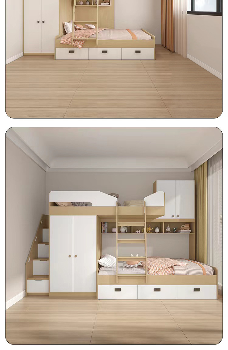 • 상부 및 하부 침대 + 옷장 + 사다리 캐비닛 + 침대 끝 책상