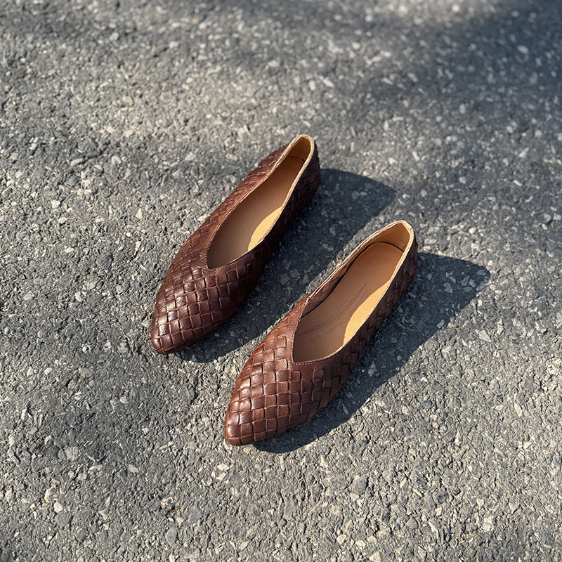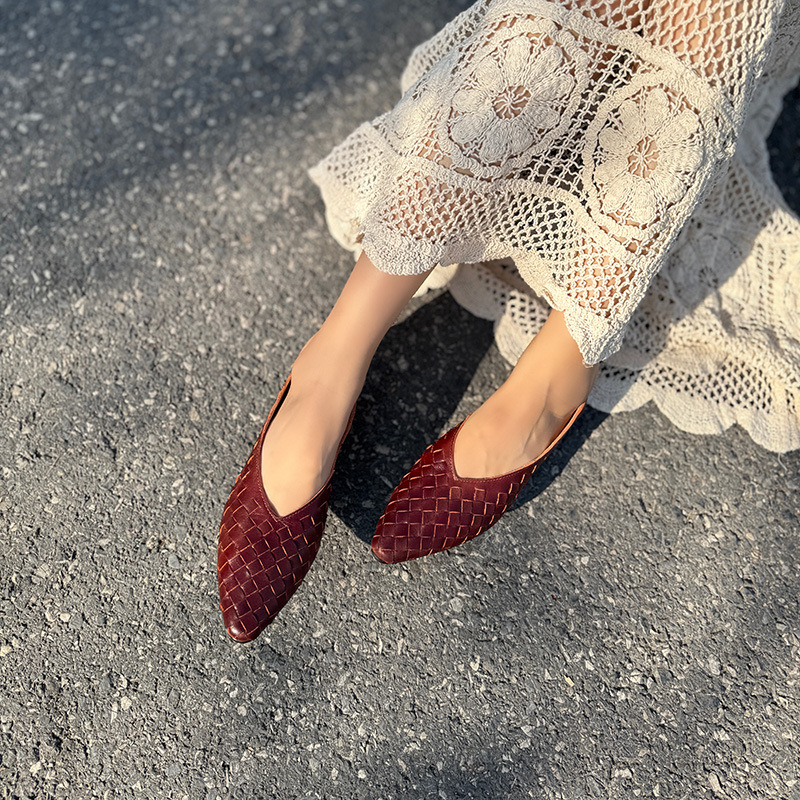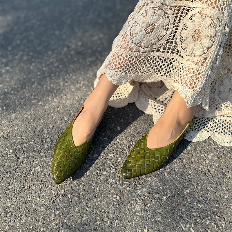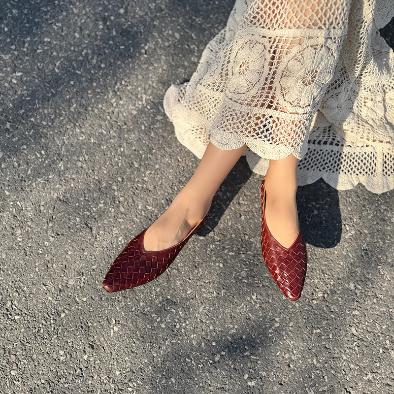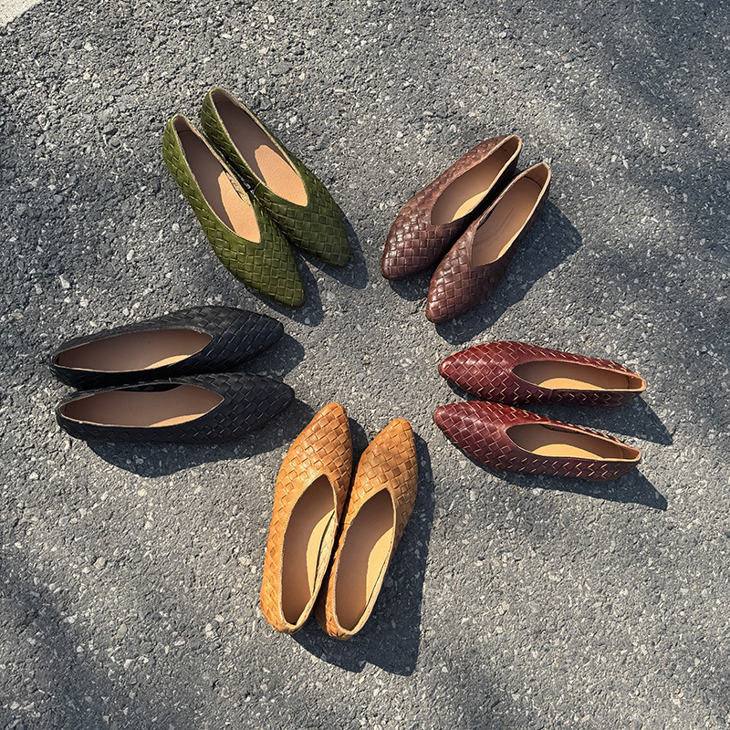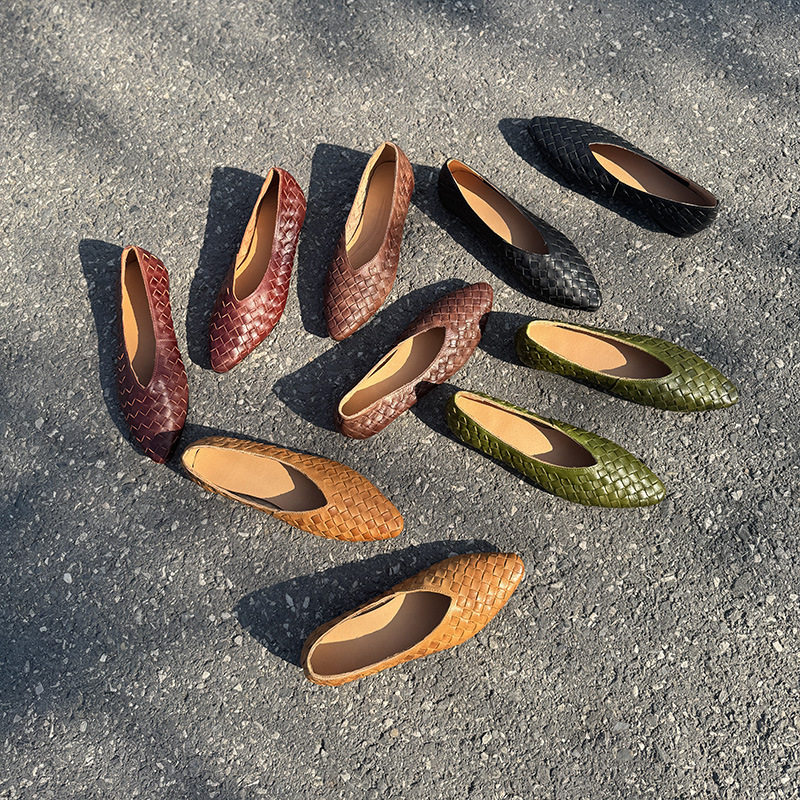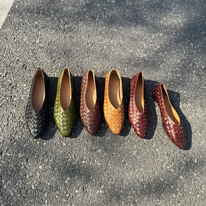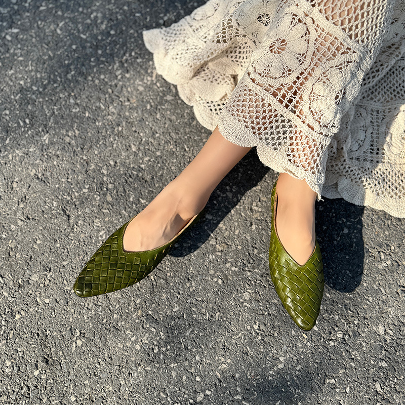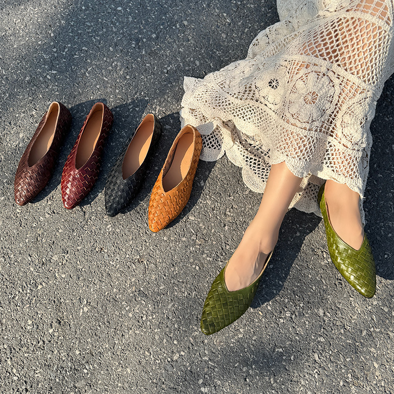 c3118-35 새로운 스타일의 멋진 영국풍 수제 뾰족코 브레이드 V자형 구두, 부드러운 밑창 플랫 슈즈 여성용